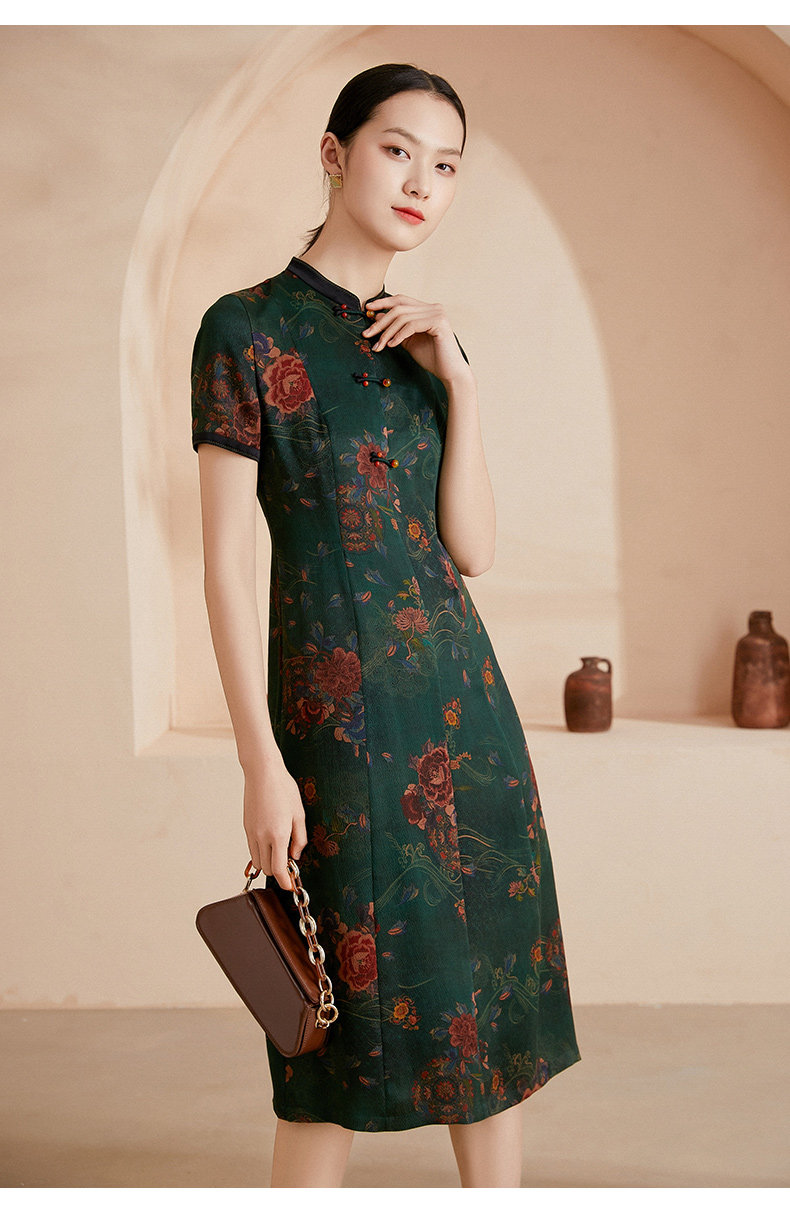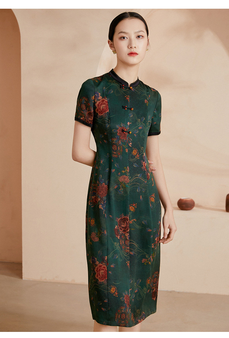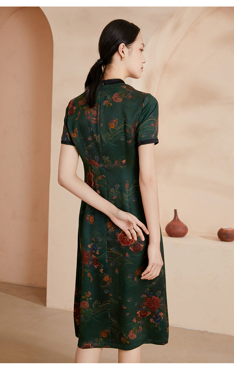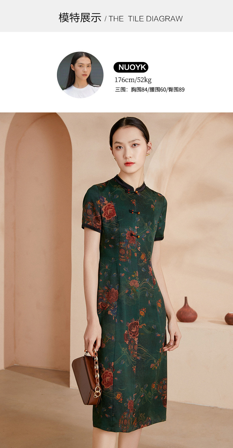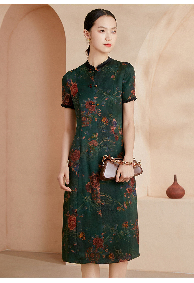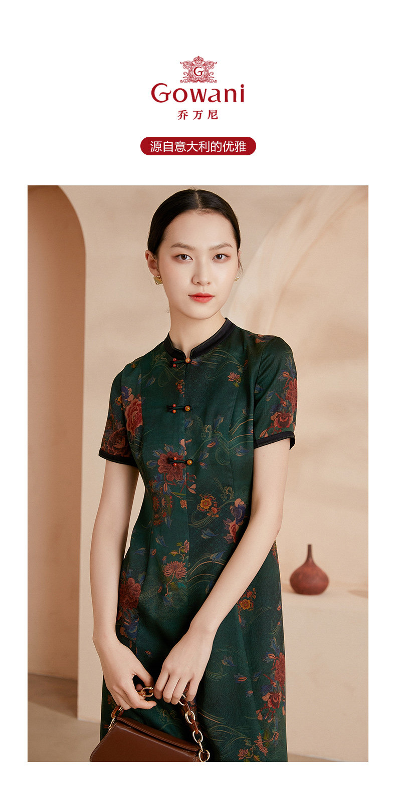 【暗夜花香】【香云纱】乔万尼真丝连衣裙夏季桑蚕丝复古盘扣新款EI2E715