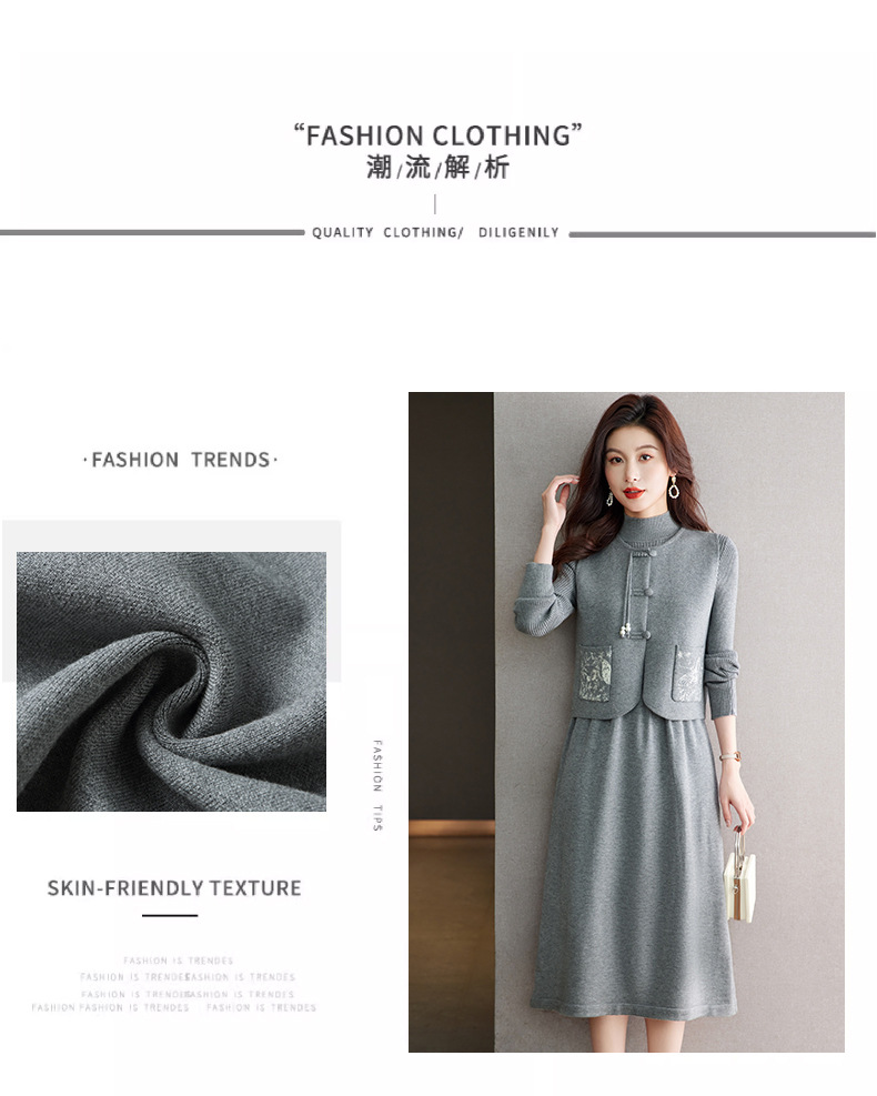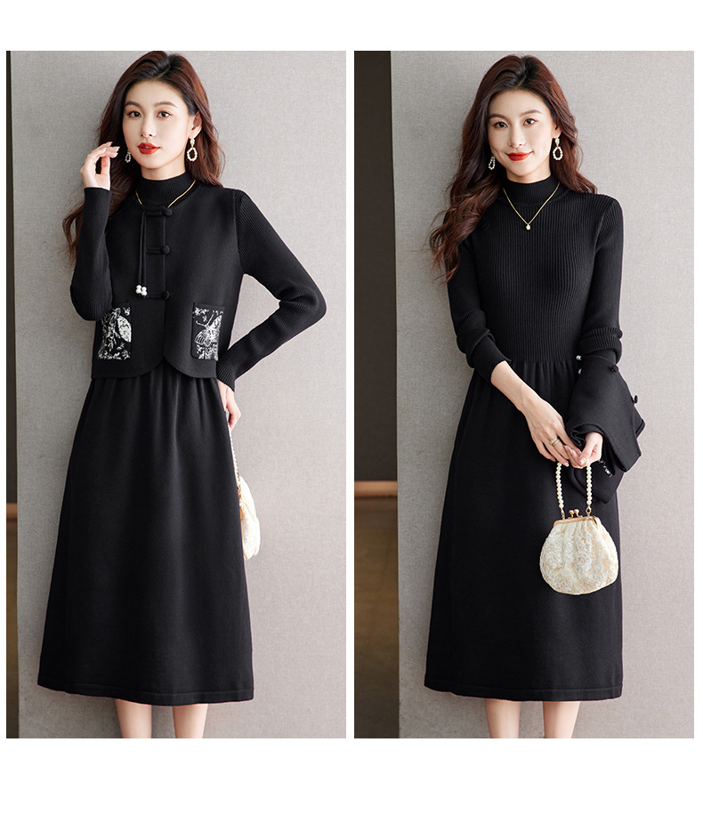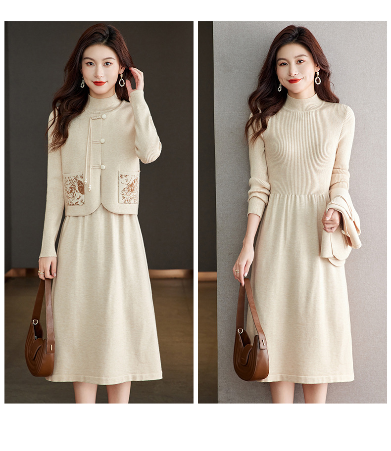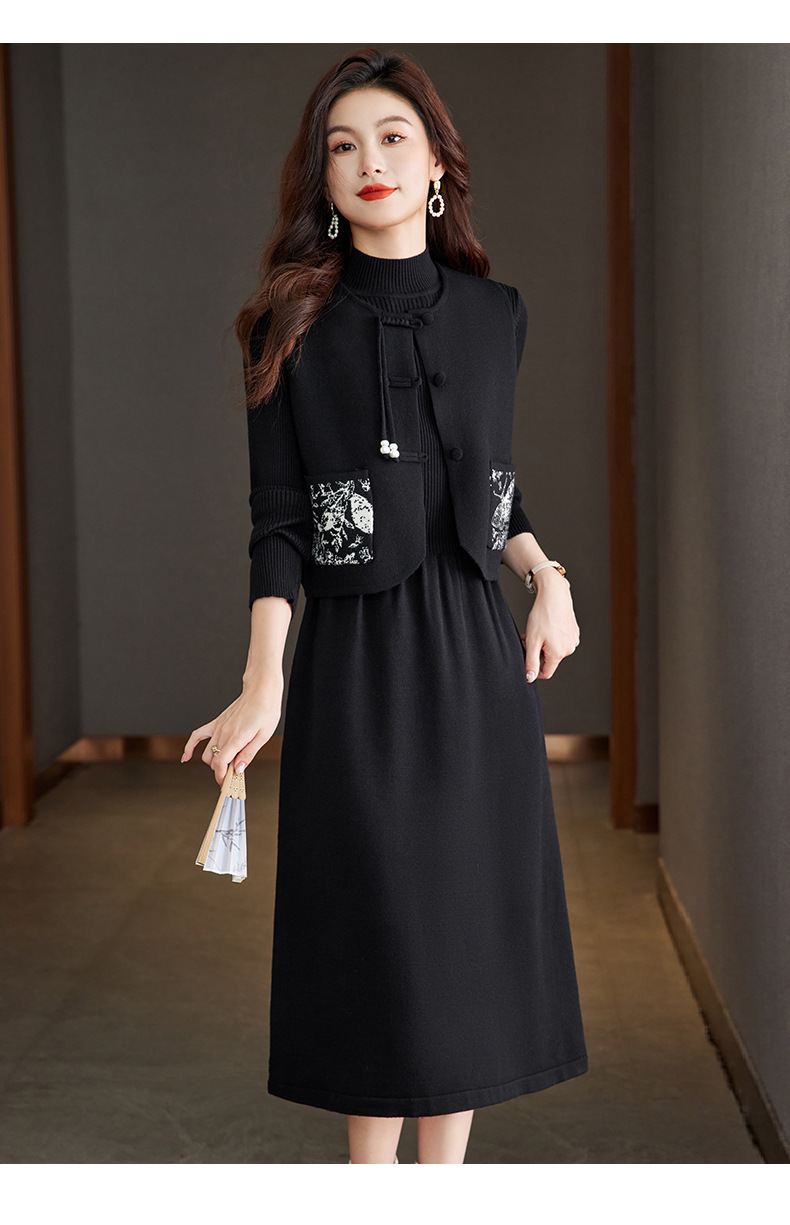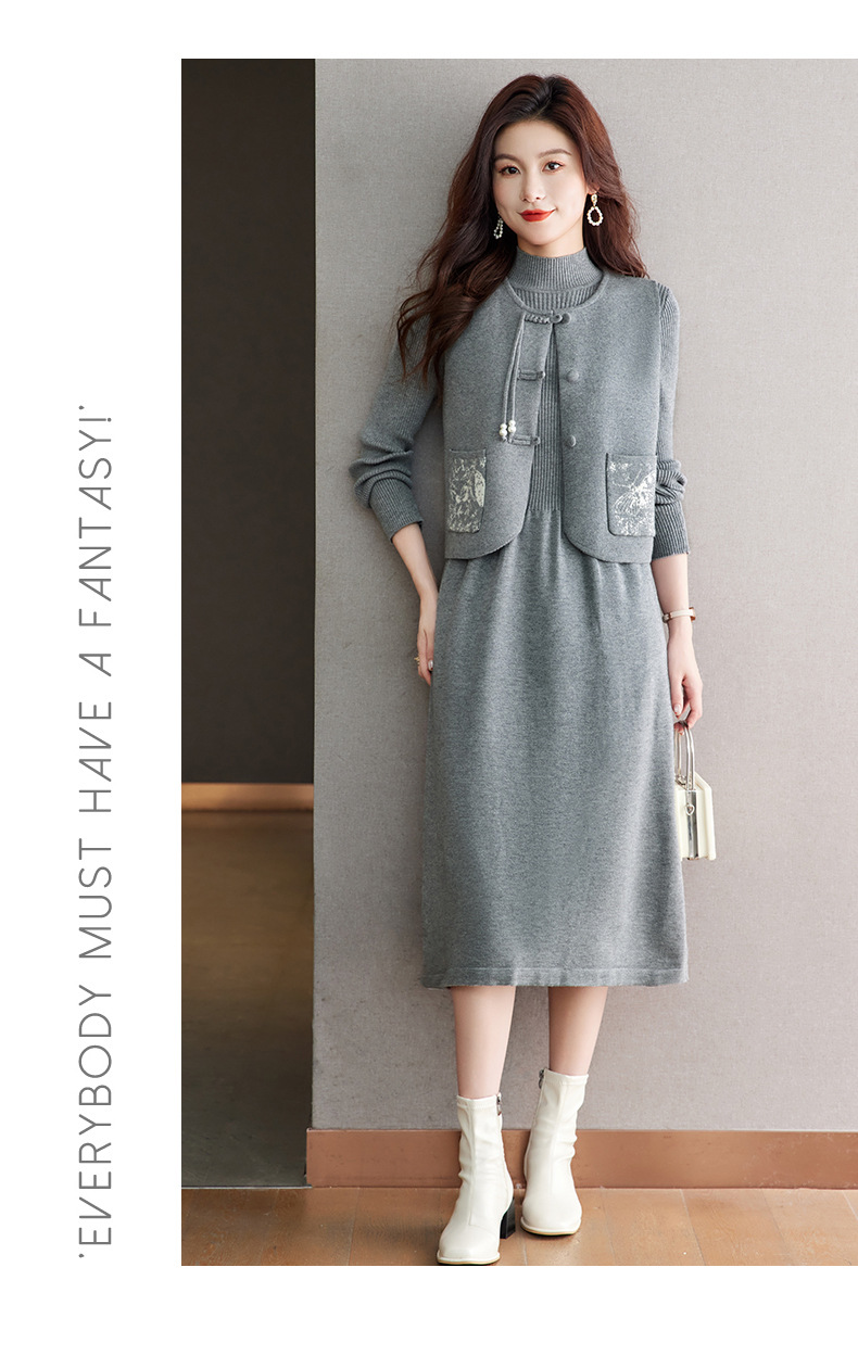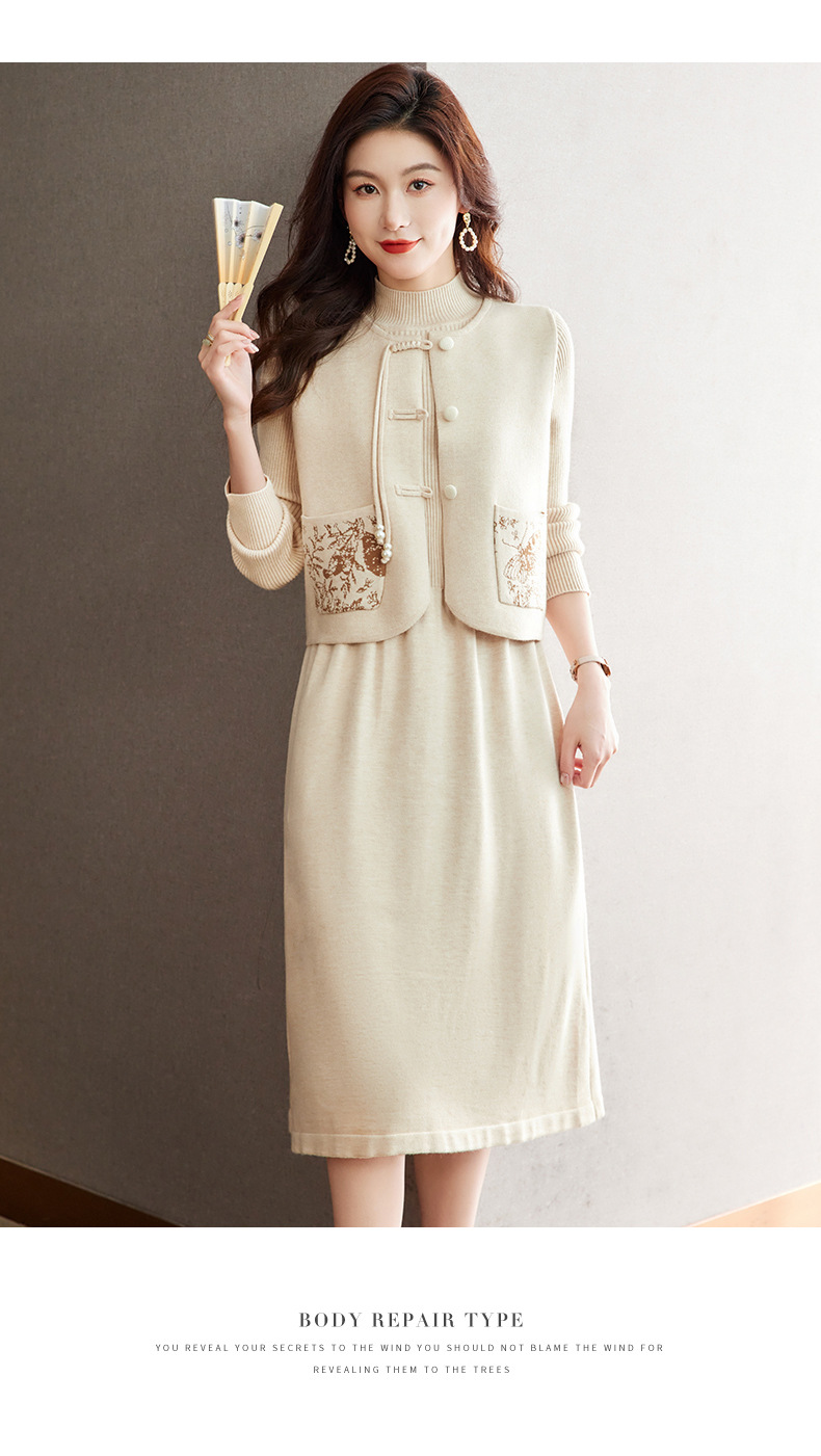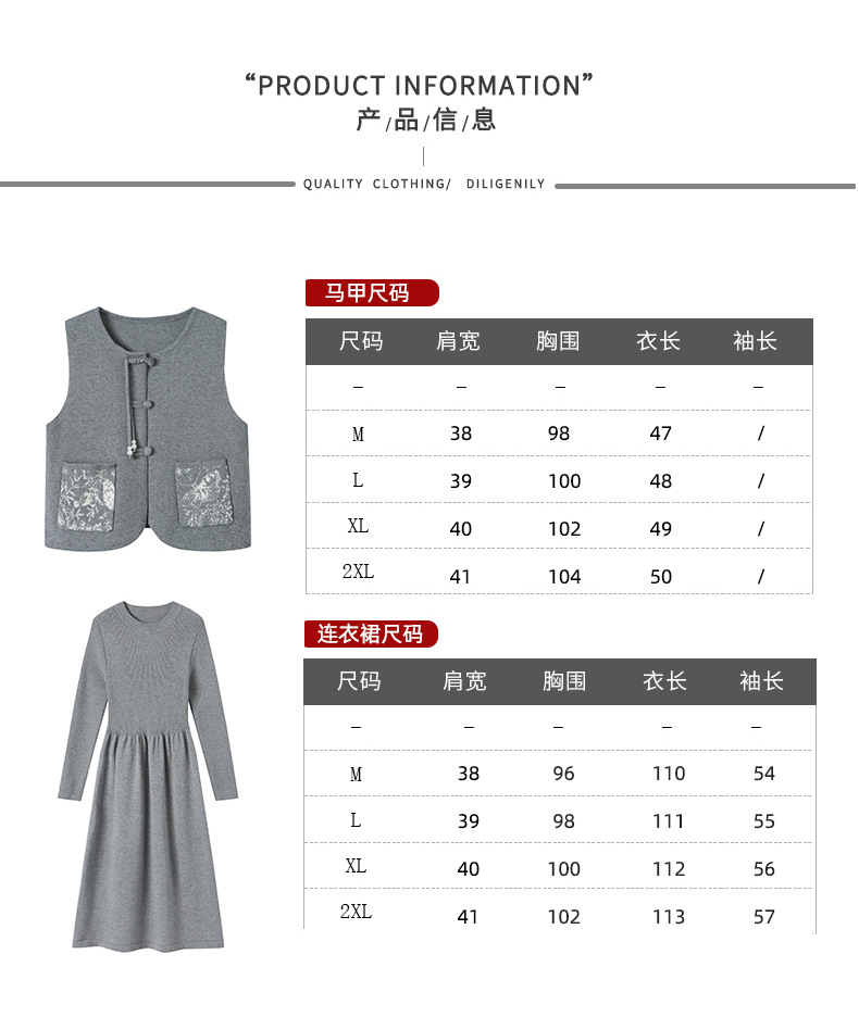秋冬季国风马甲羊毛针织修身连衣裙两件套2024法式中长款套装裙CC&22-1305
