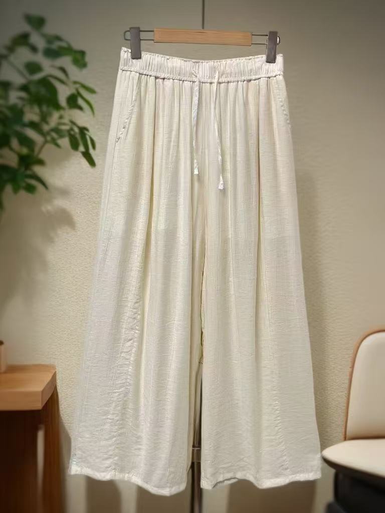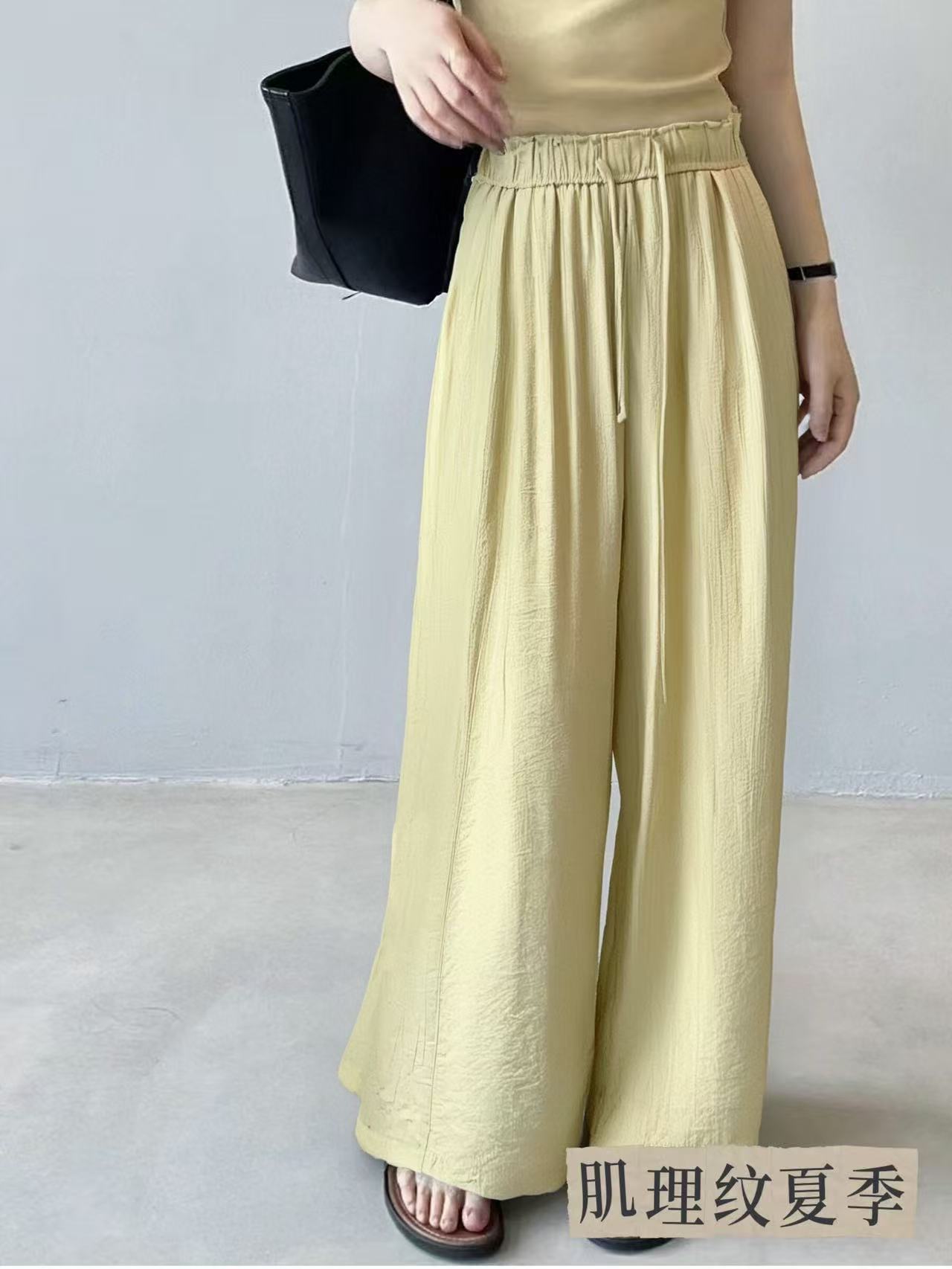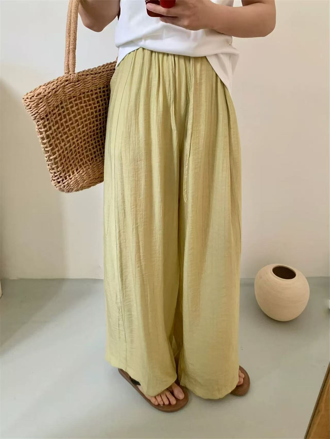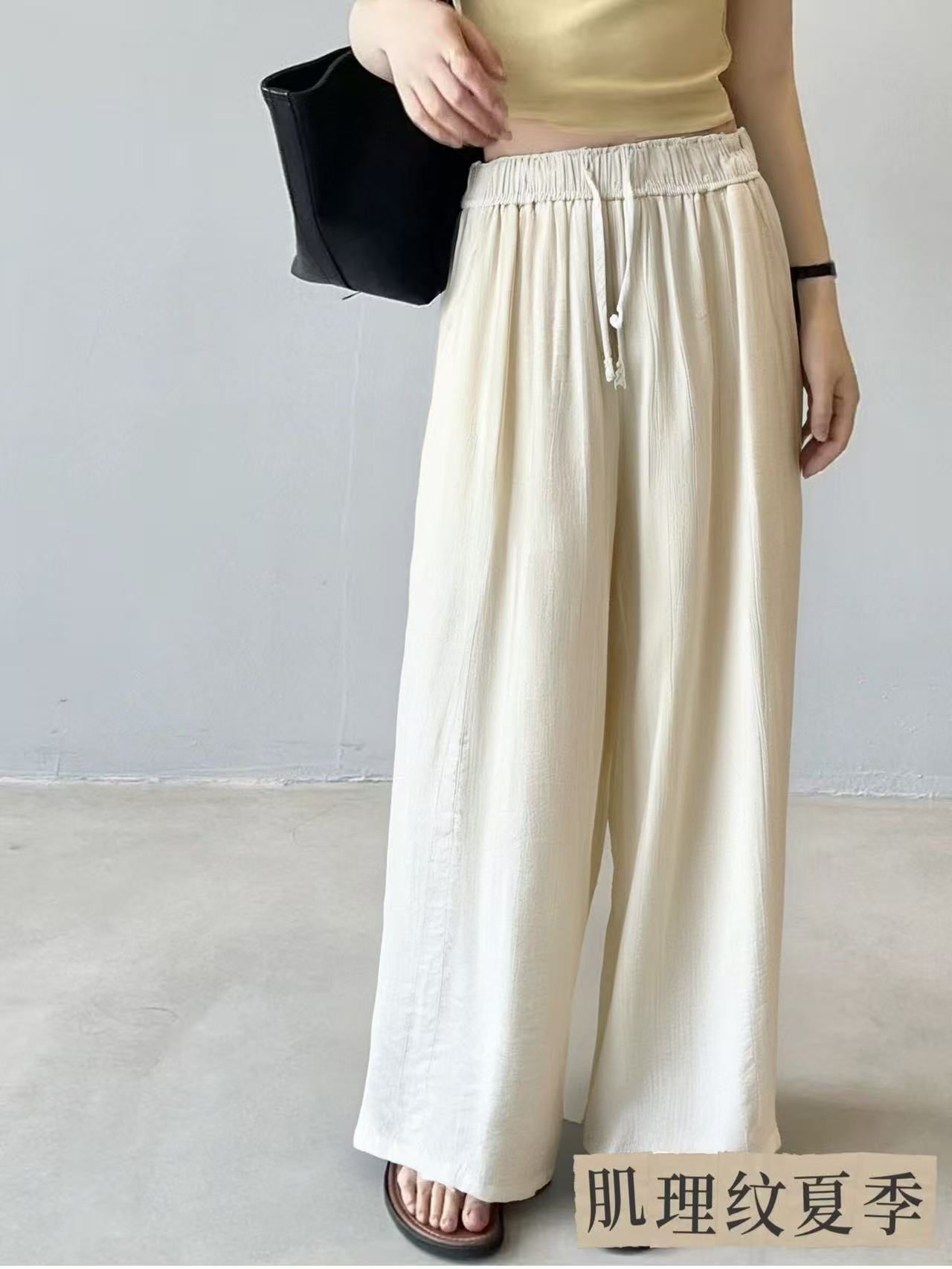 【超值特卖】韩系夏季薄款肌理纹小花苞清爽宽松阔腿裤-喜出