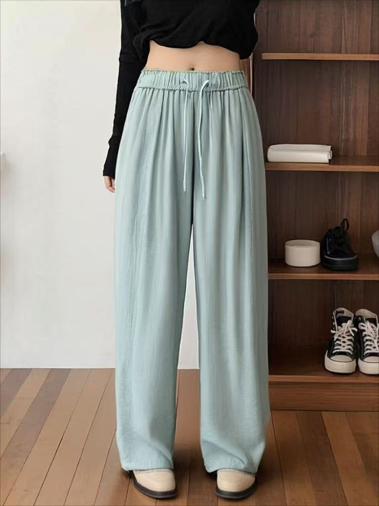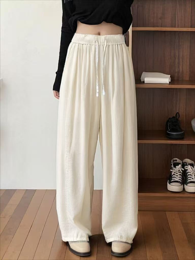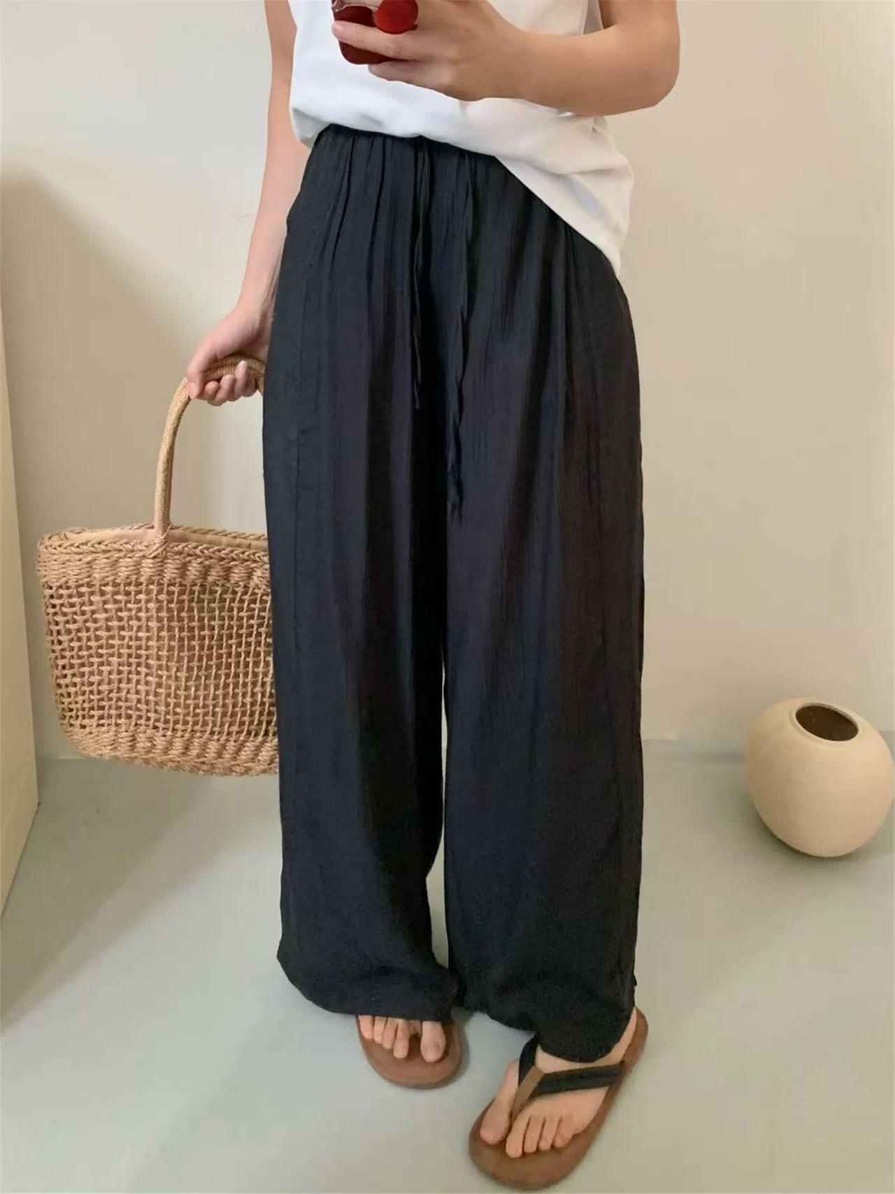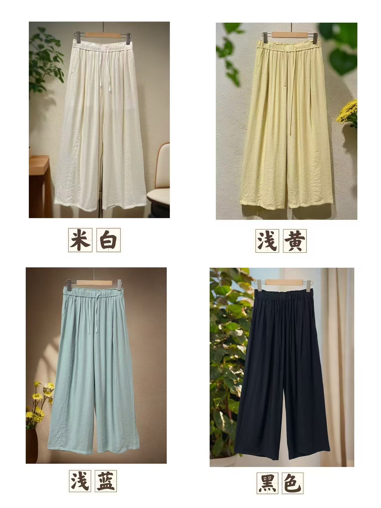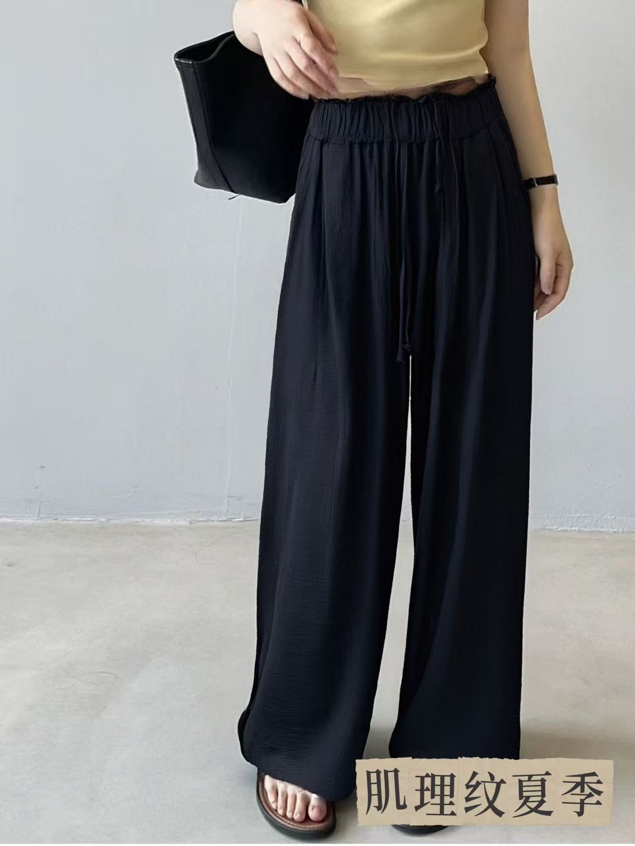 【超值特卖】韩系夏季薄款肌理纹小花苞清爽宽松阔腿裤-喜出