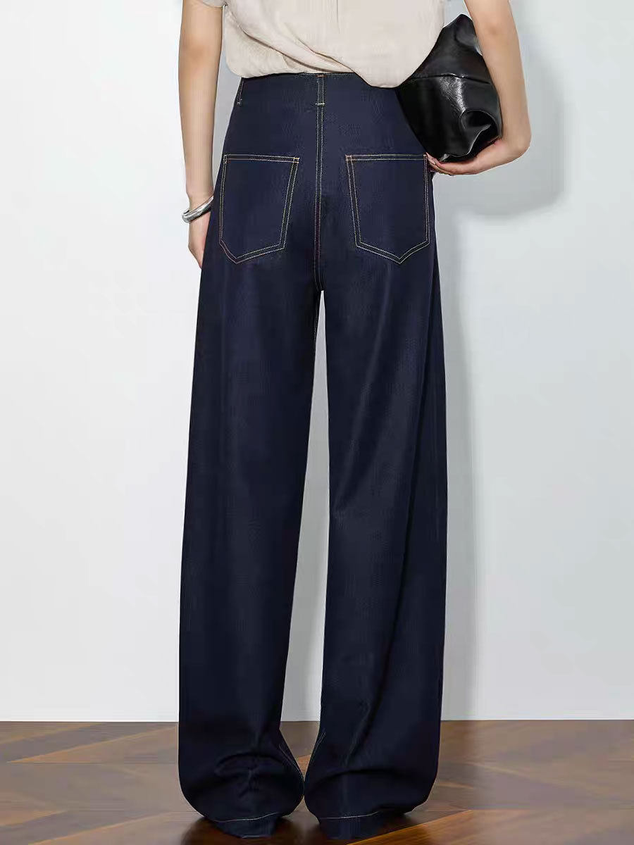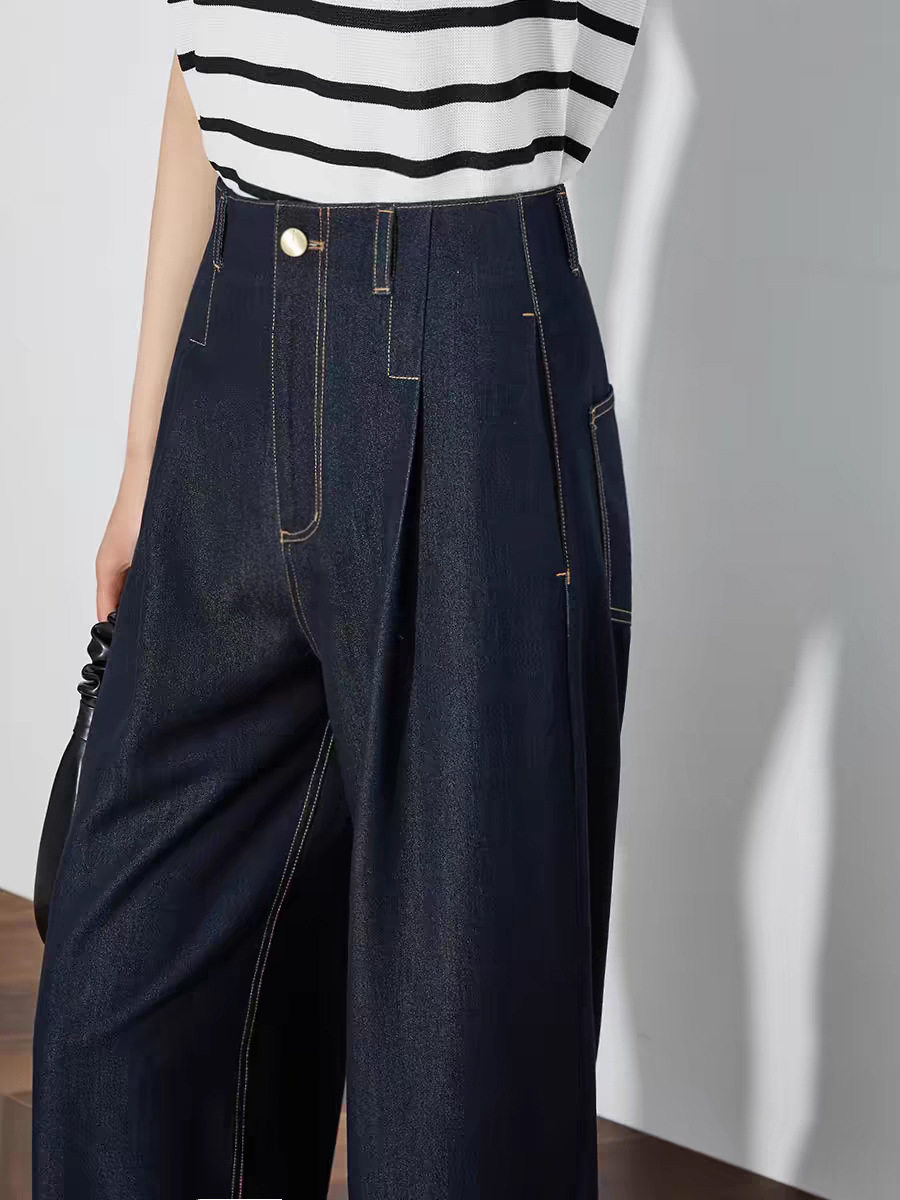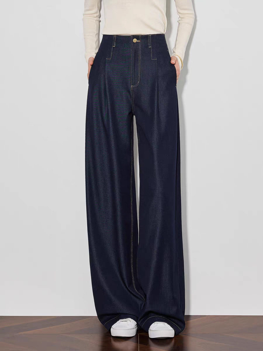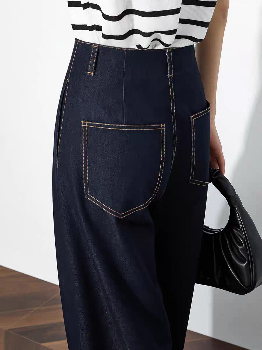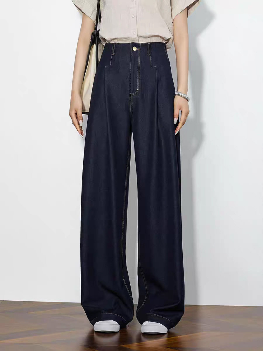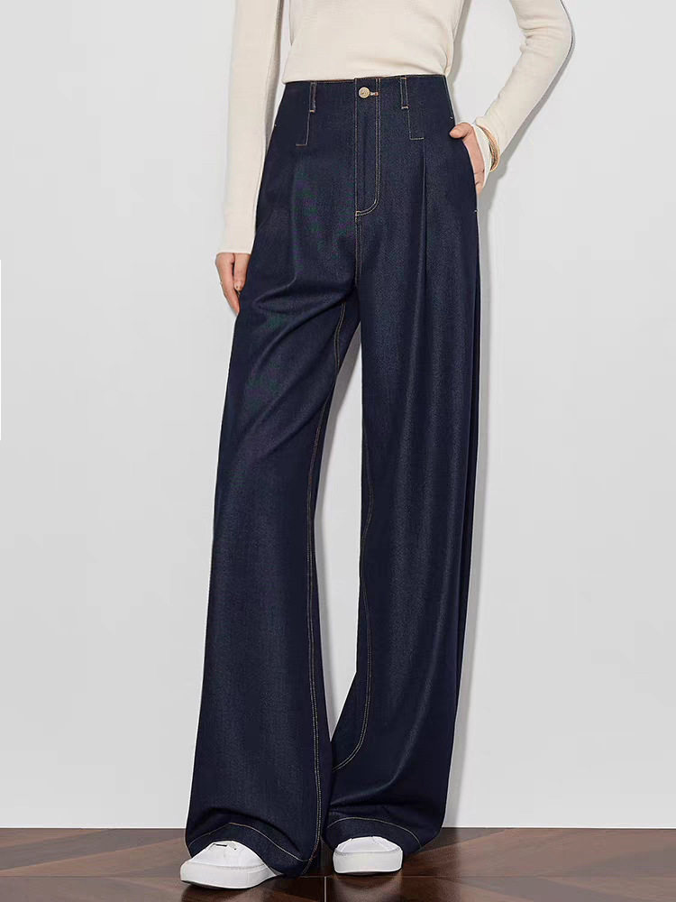 「高货sh」全新升级【铂金会员220/天猫289/差价69】(73942)洛诗琳气质高腰阔腿裤2026春季新款复古丹宁蓝显瘦直筒裤