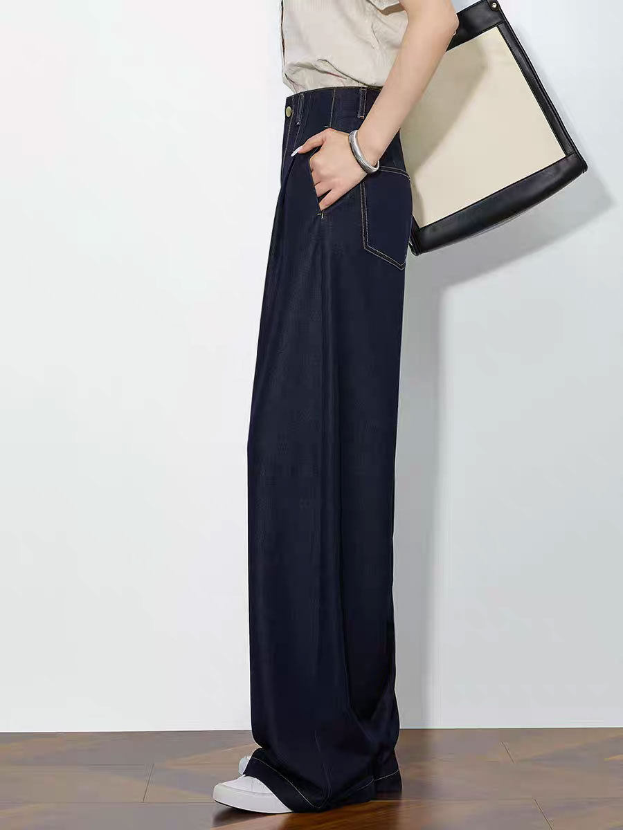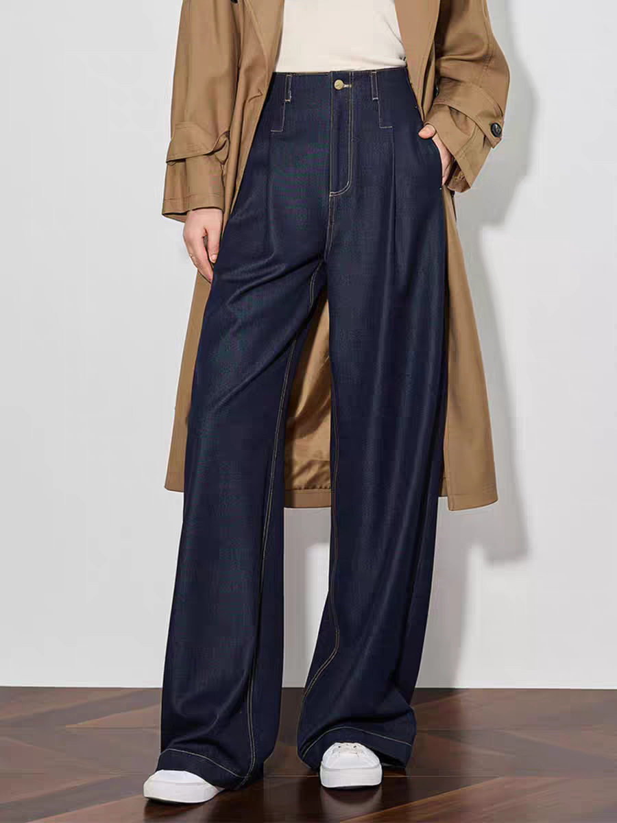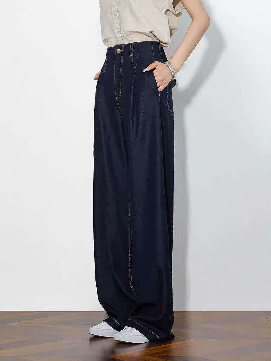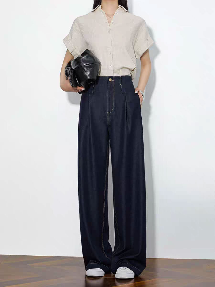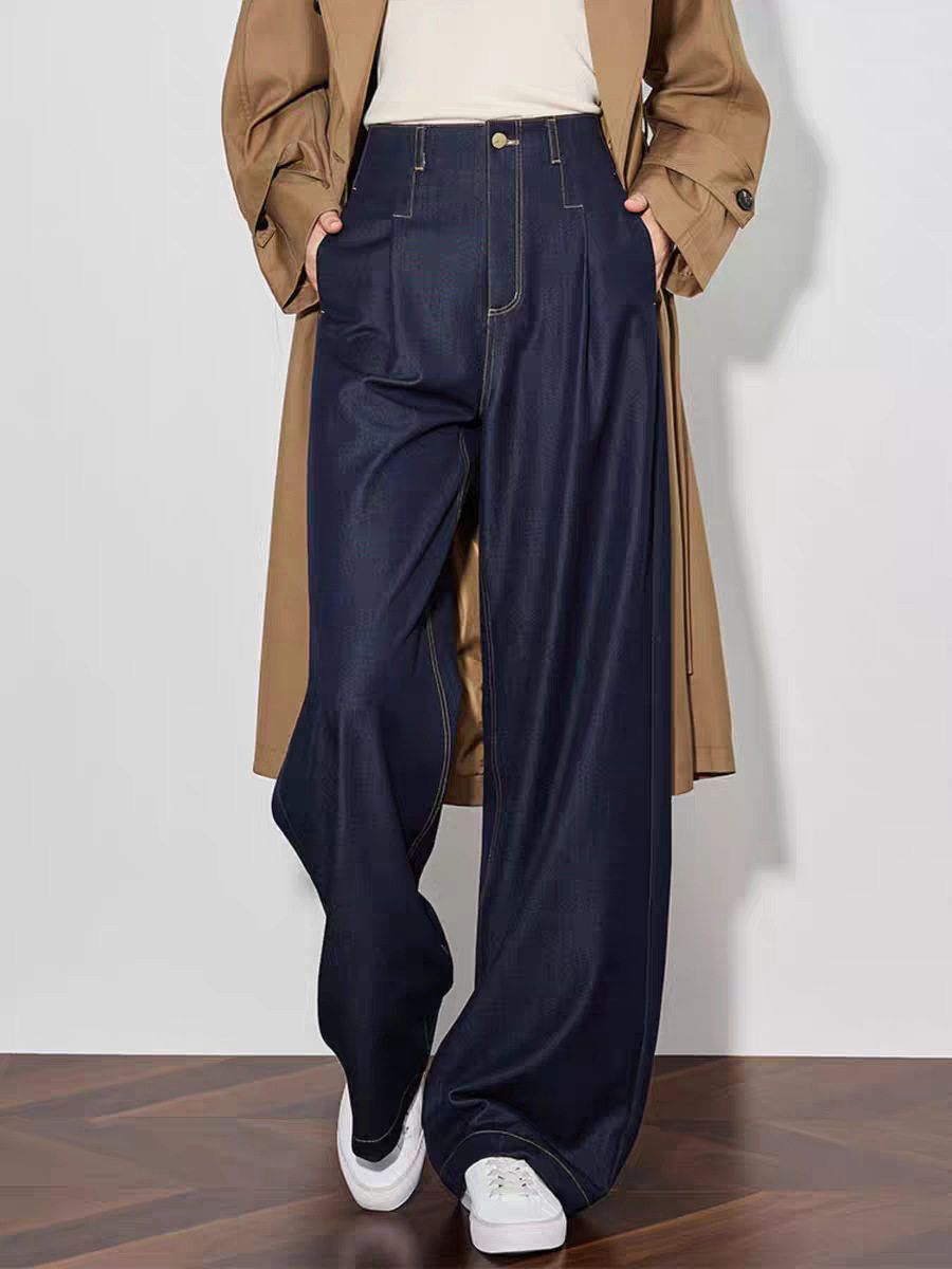「高货sh」全新升级【铂金会员220/天猫289/差价69】(73942)洛诗琳气质高腰阔腿裤2026春季新款复古丹宁蓝显瘦直筒裤