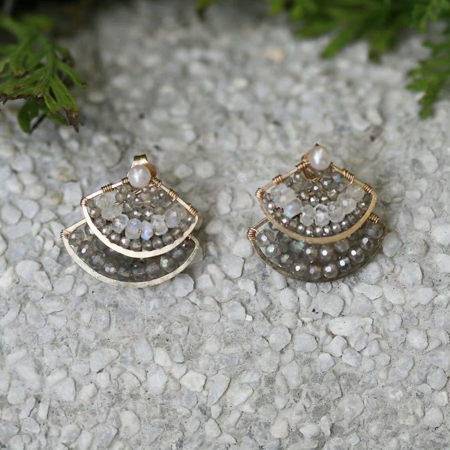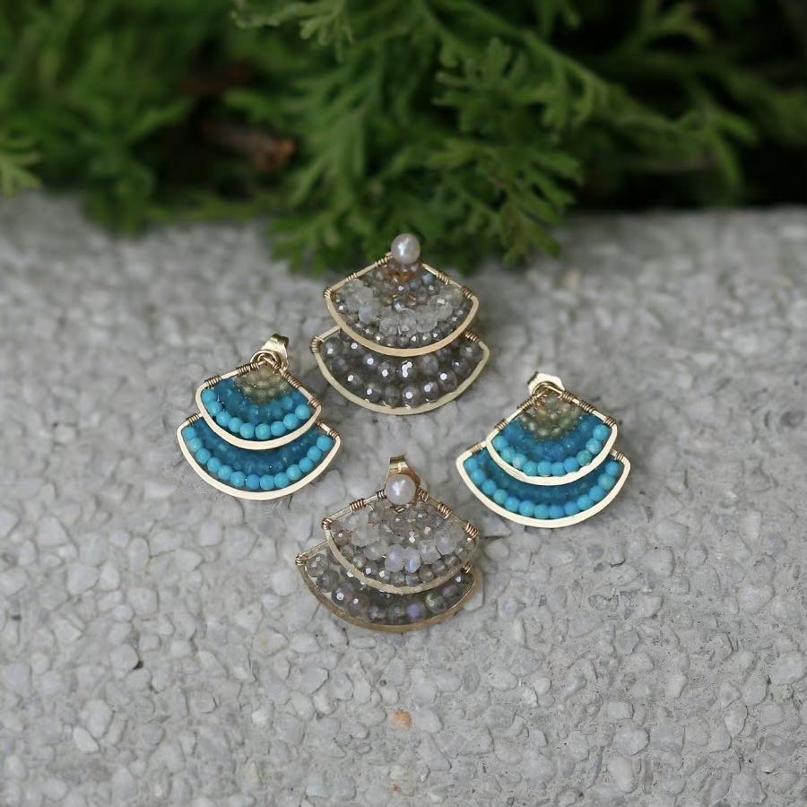 SpoiledBrat Jewelry扇形系列 | 绿松石 斜长石前后百搭叠戴耳钉