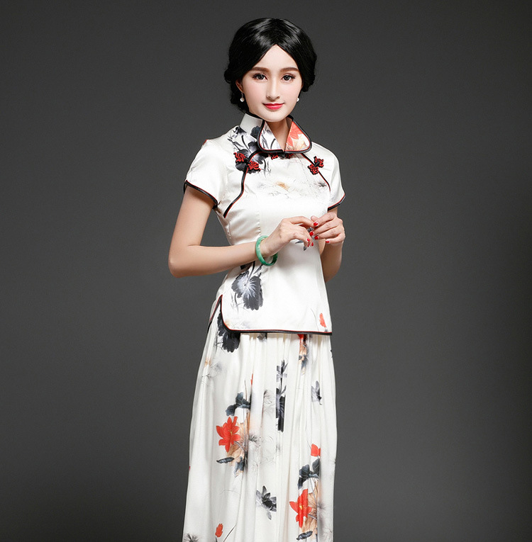 ZA1133中式改良旗袍连衣裙盘扣立领文艺复古双层蕾丝