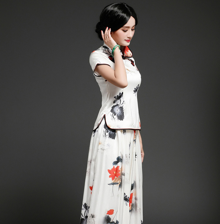 ZA1130高档重磅真丝香云纱双层长款长袖旗袍裙