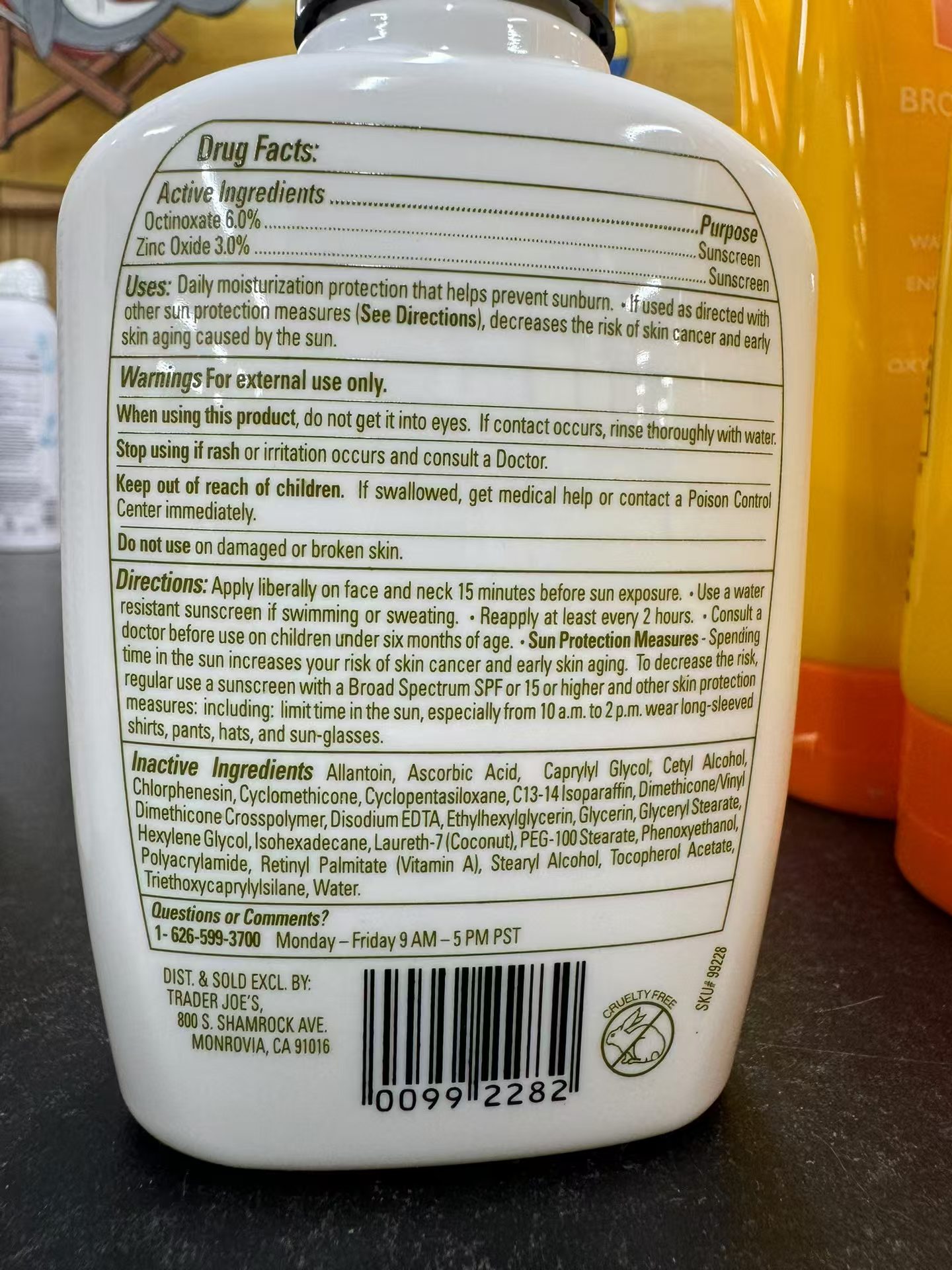 到手价115元/瓶 非常好用 强烈推荐 有机Trader Joe‘s 缺德舅滋润无香SPF15防晒霜118ml 美国代购,无中文标签,介意慎拍