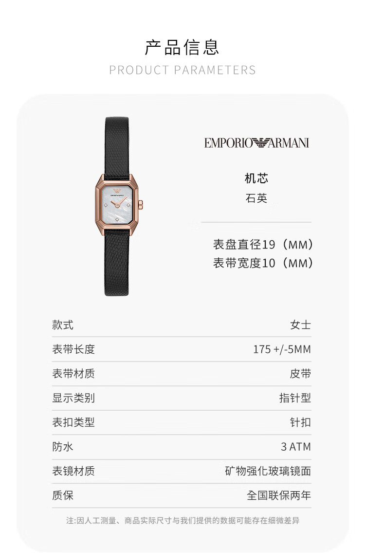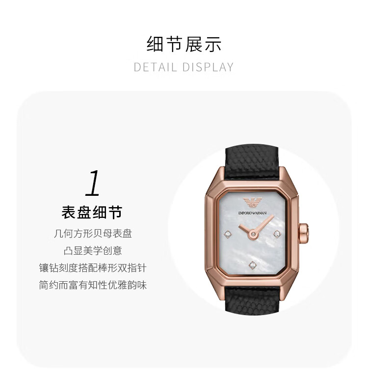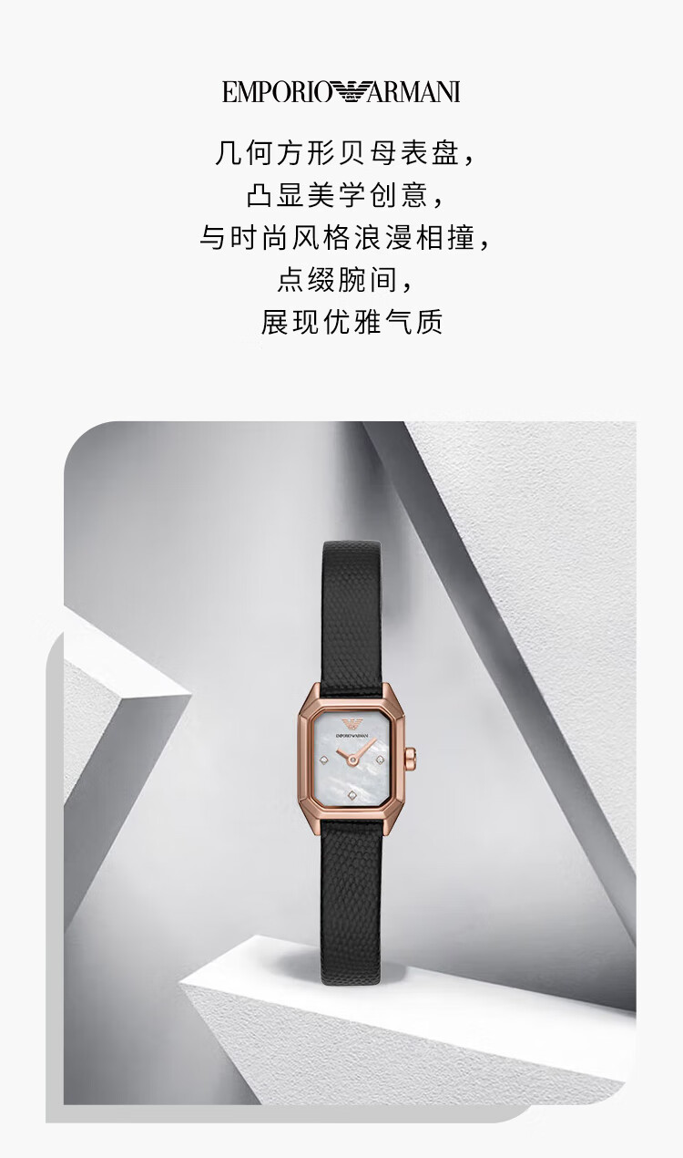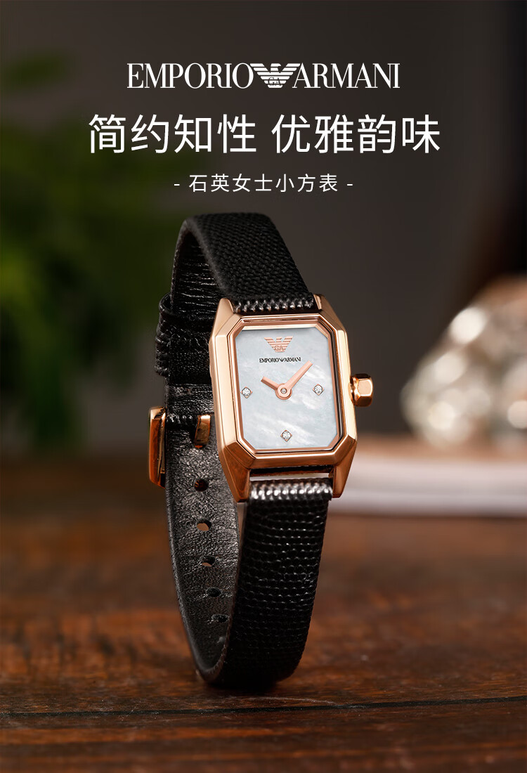 【时计廊】阿玛尼(Armani)手表女 镶钻方形表盘皮带石英时尚女士腕表生日礼物送女友AR11248