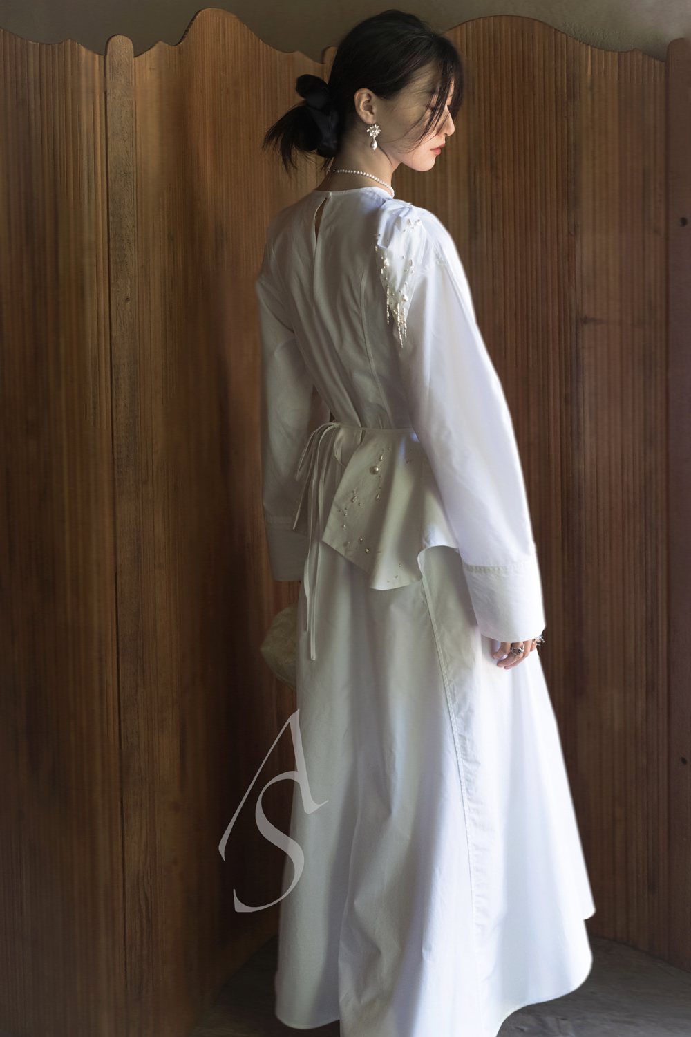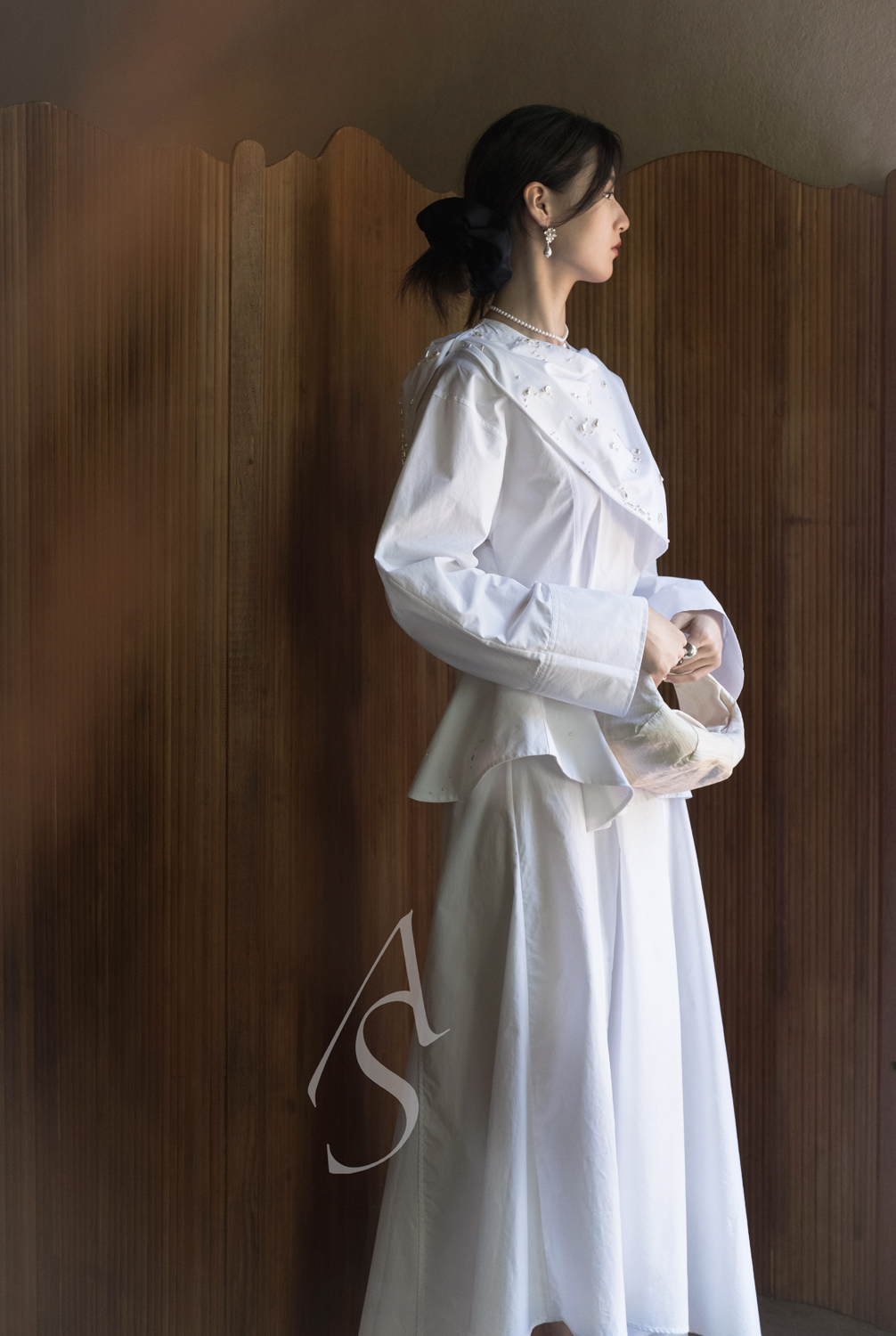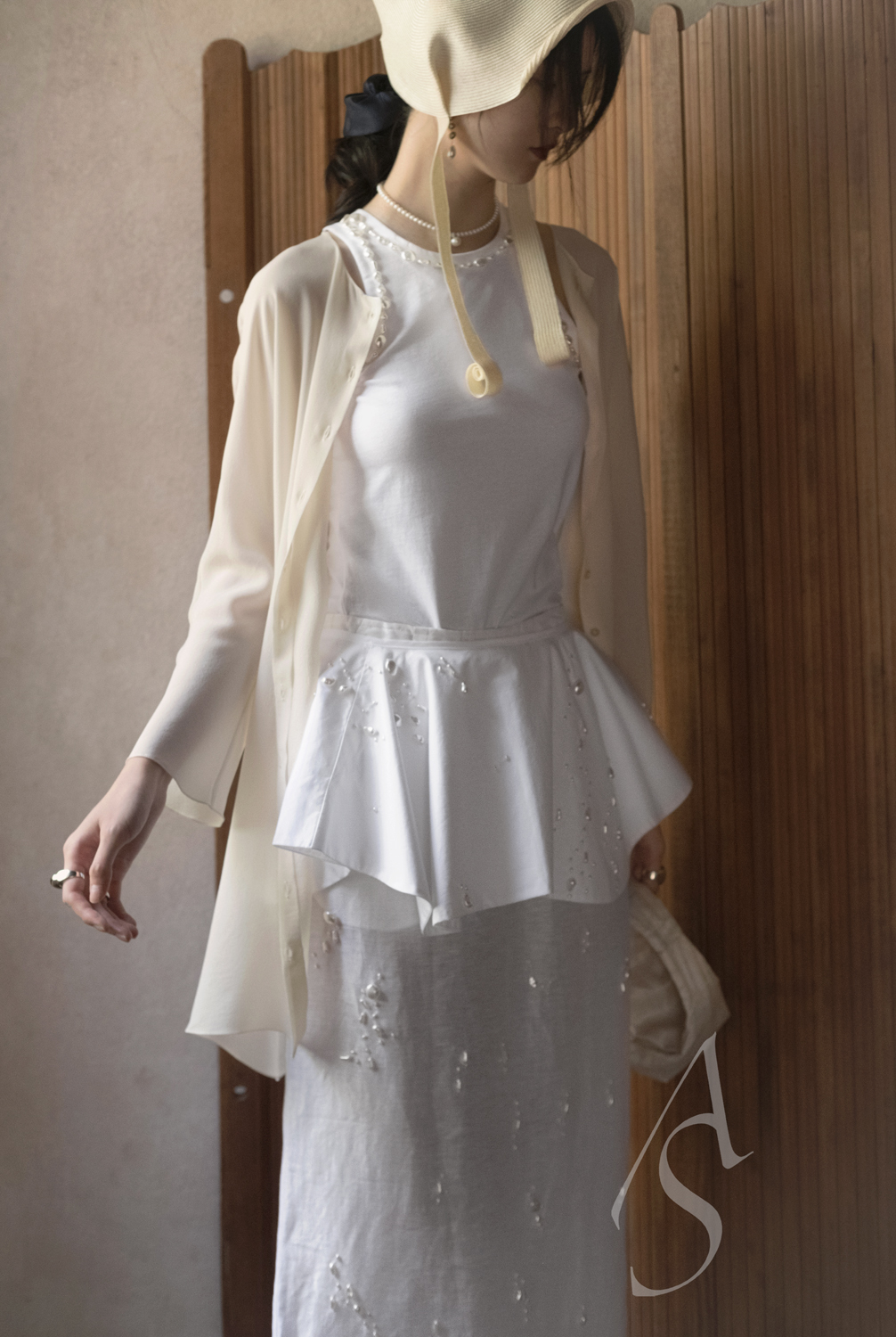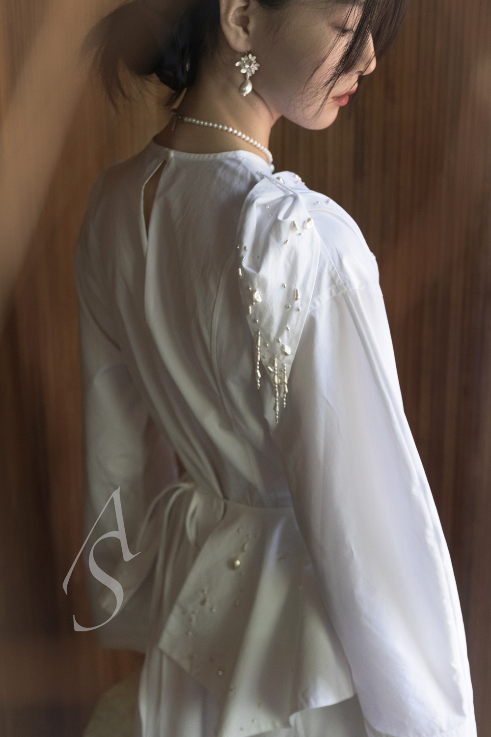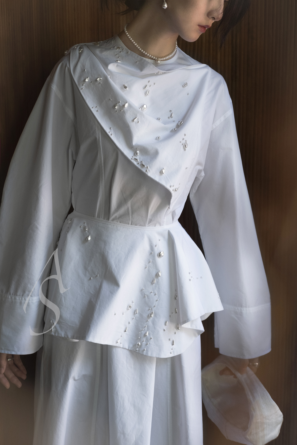 白色缀珍珠:100%棉 施华洛世奇珍珠