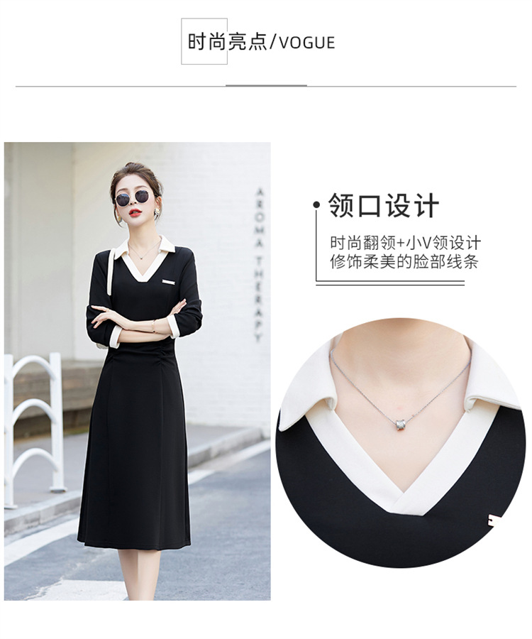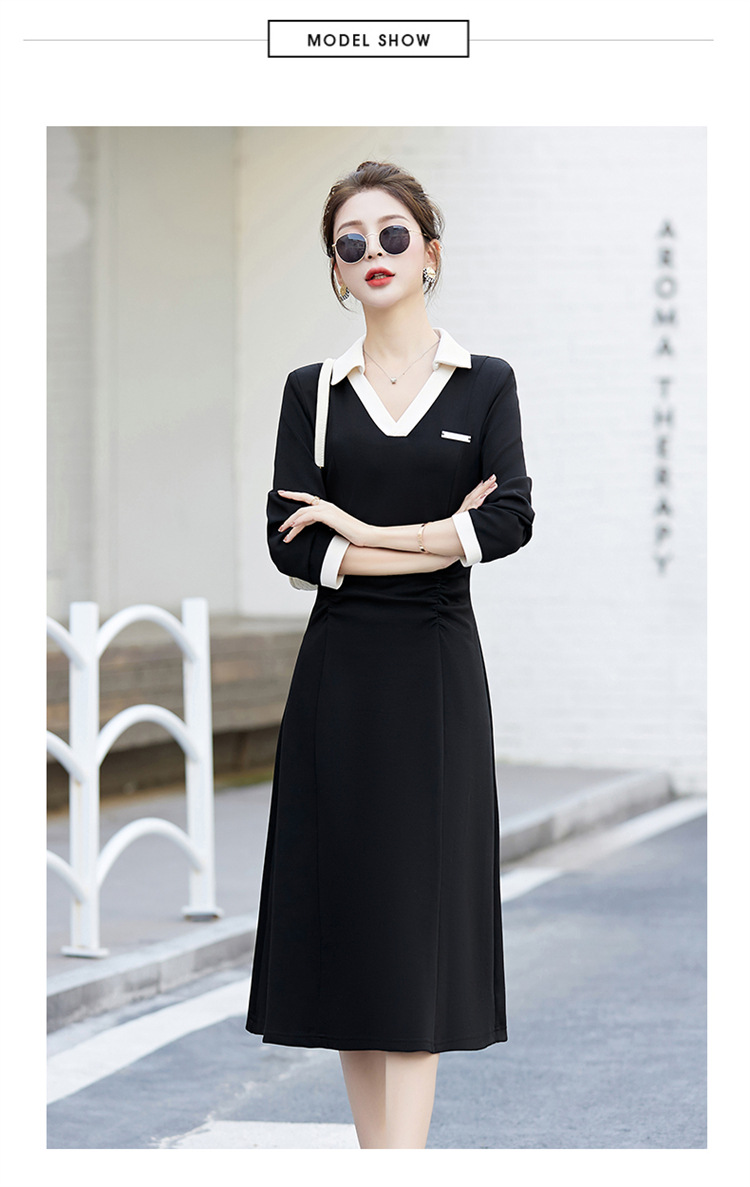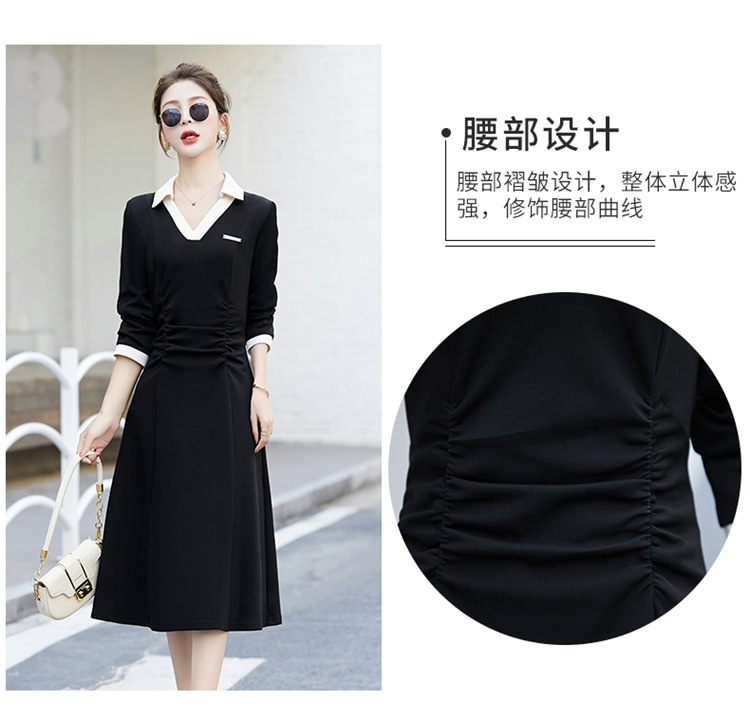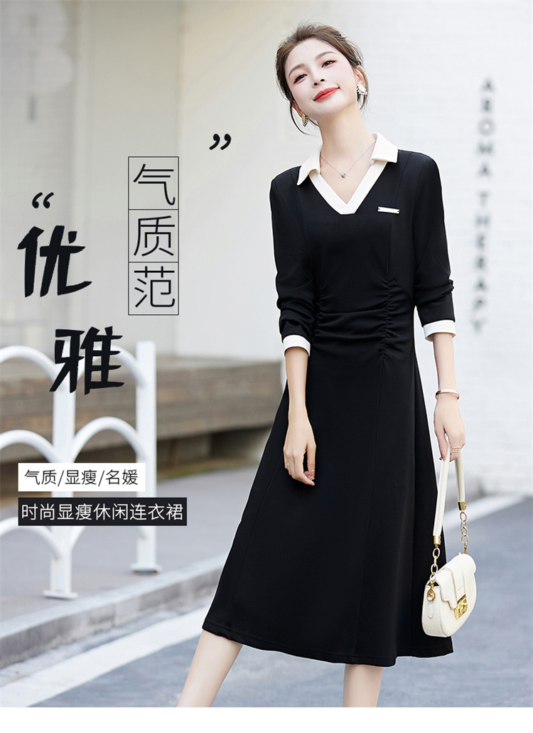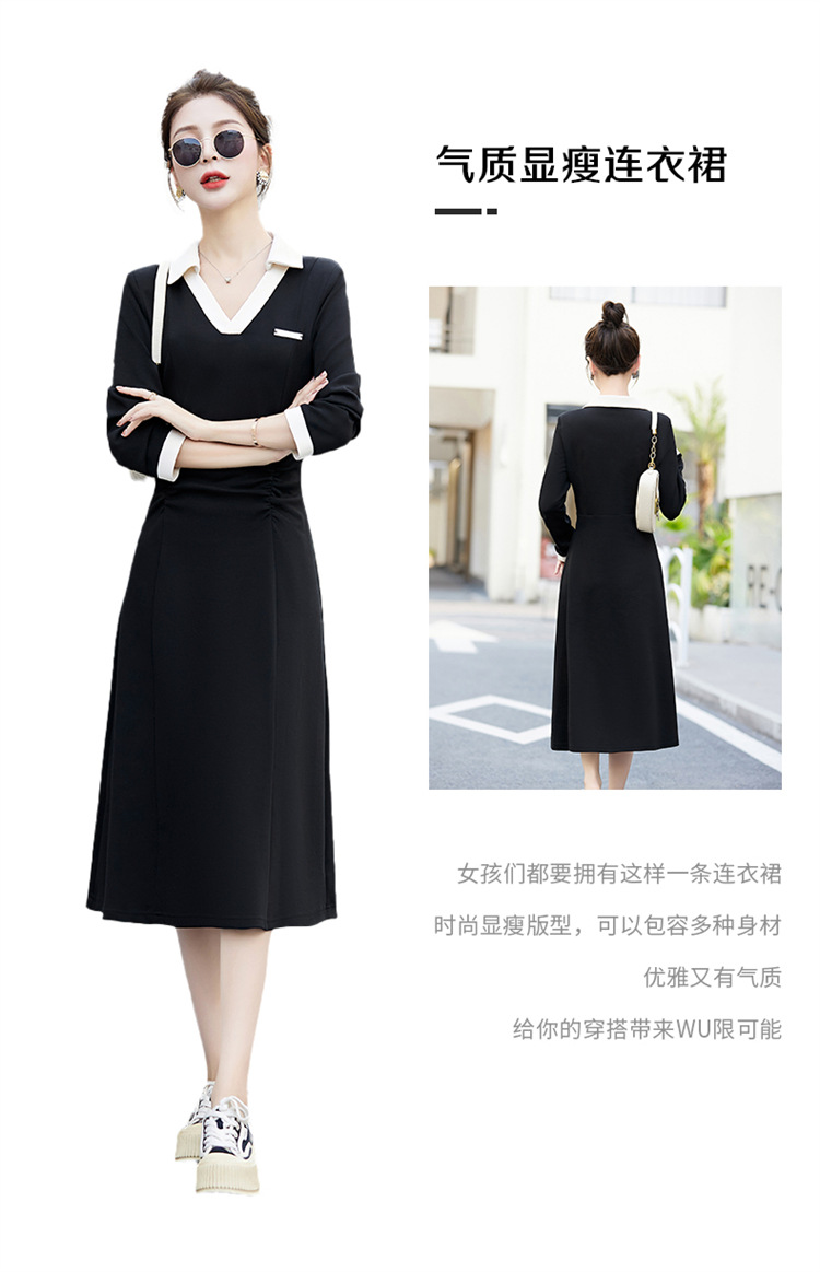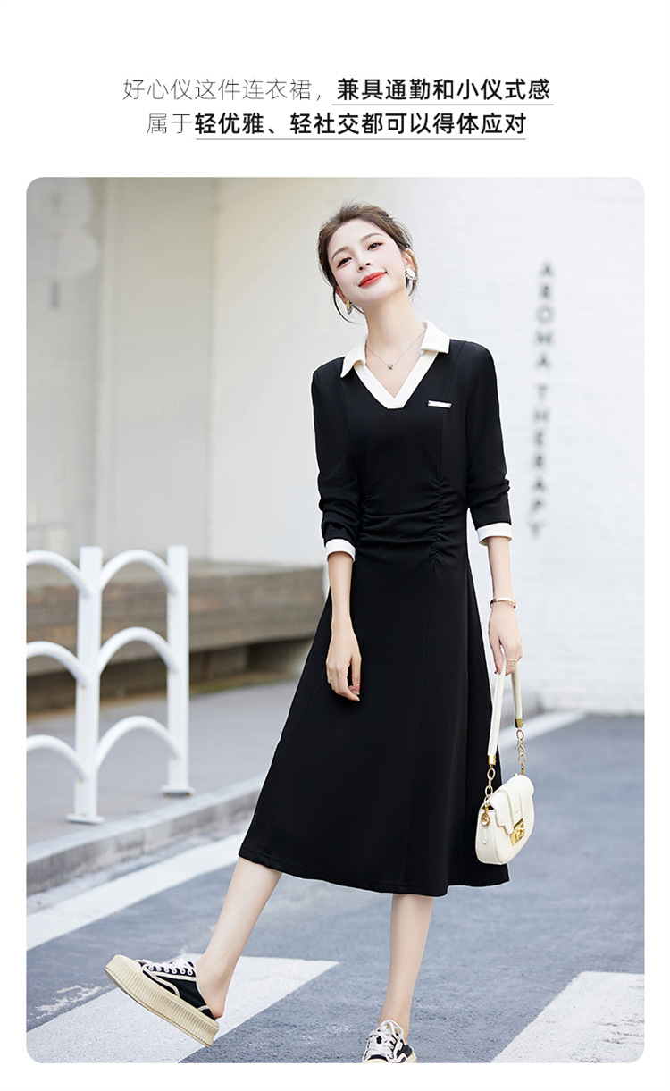 HR-YIXG8855拼色小众设计感衬衫POLO领收腰显高小黑裙2025新款收腰气质连衣裙