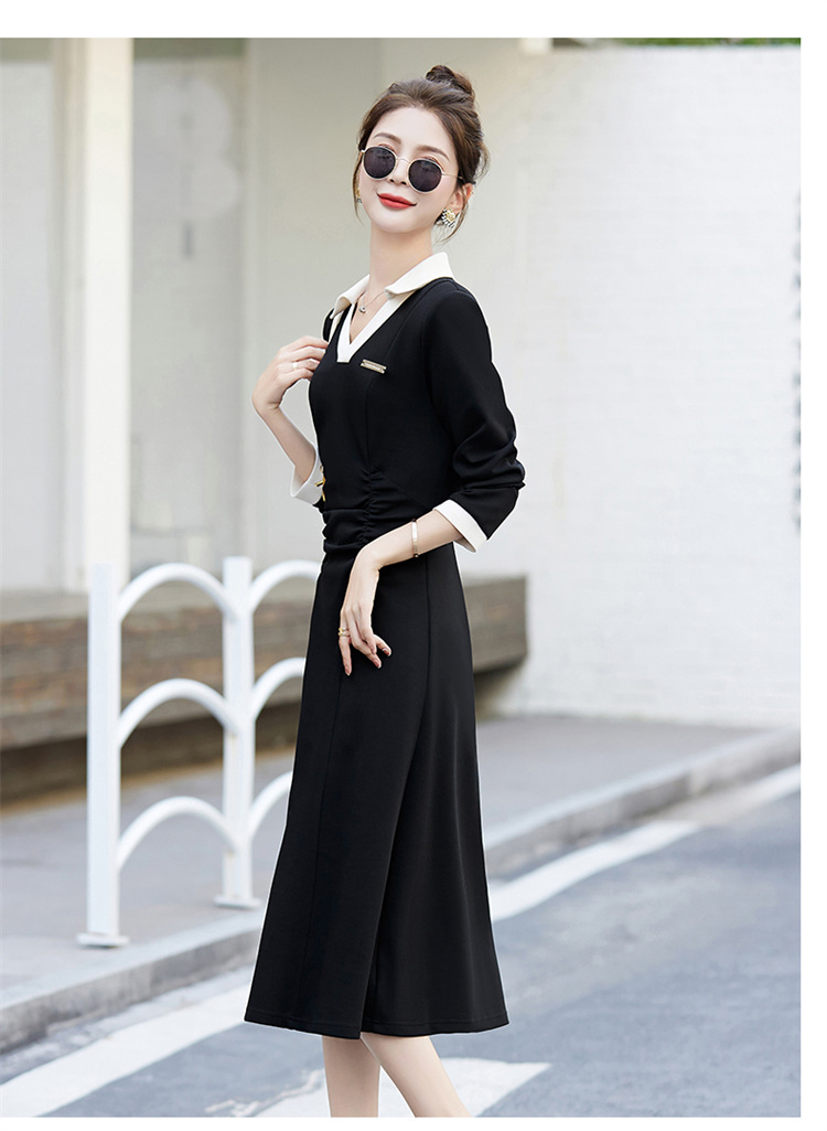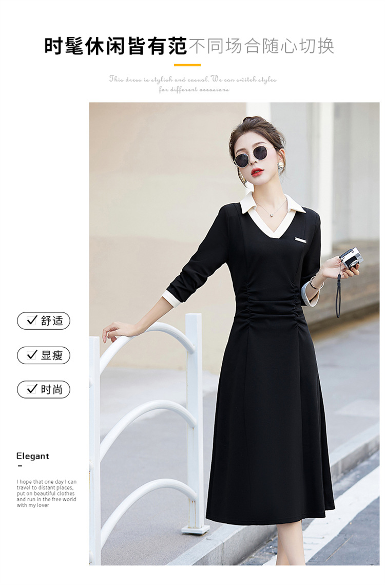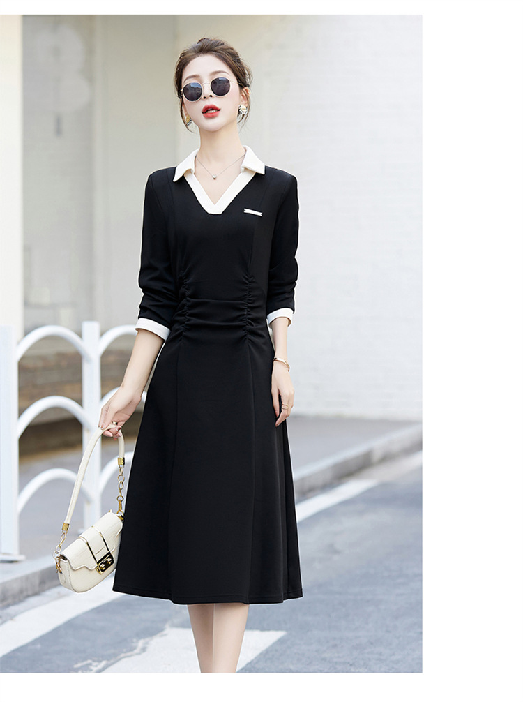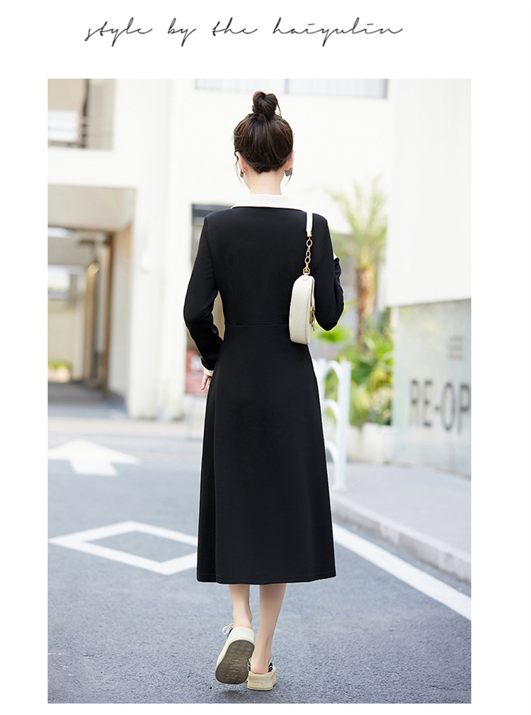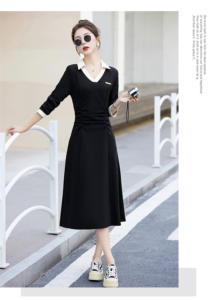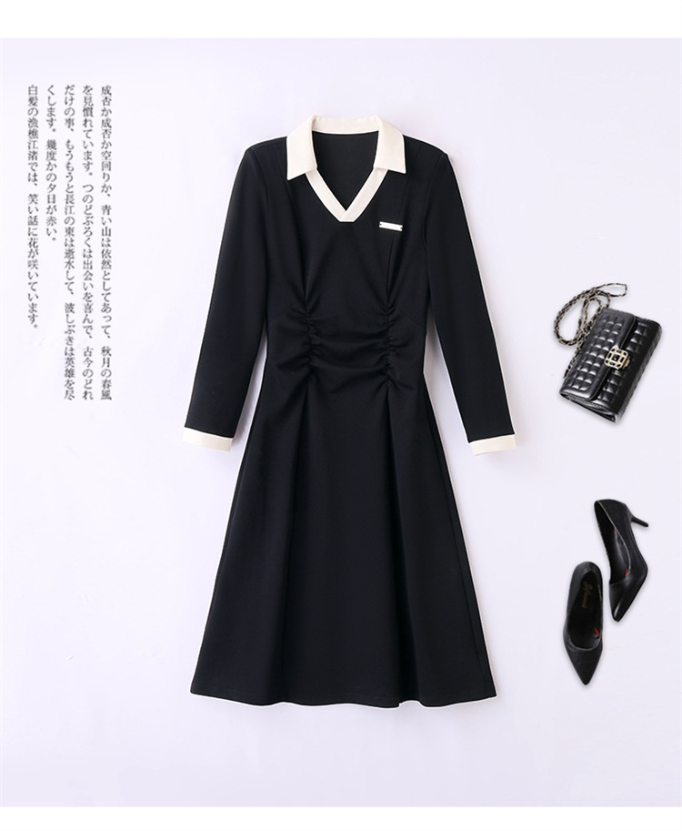HR-YIXG8855拼色小众设计感衬衫POLO领收腰显高小黑裙2025新款收腰气质连衣裙