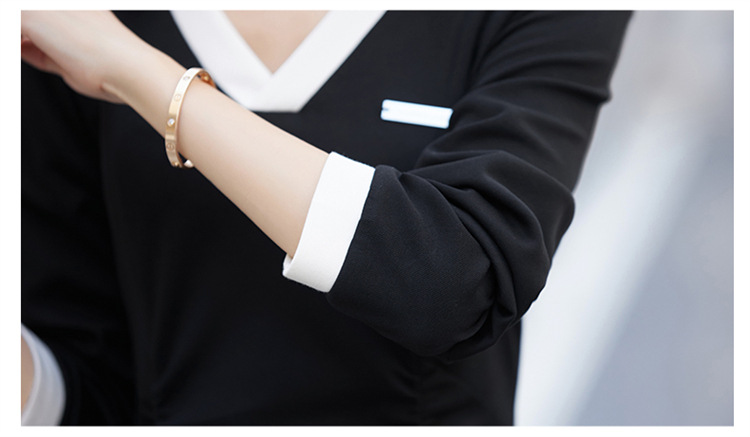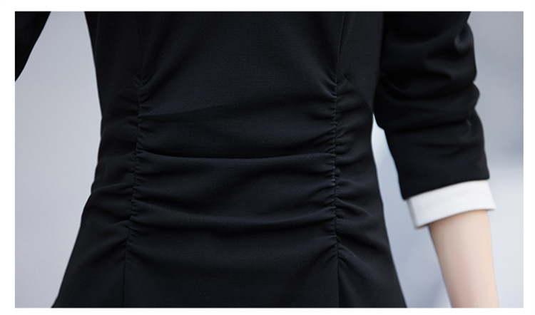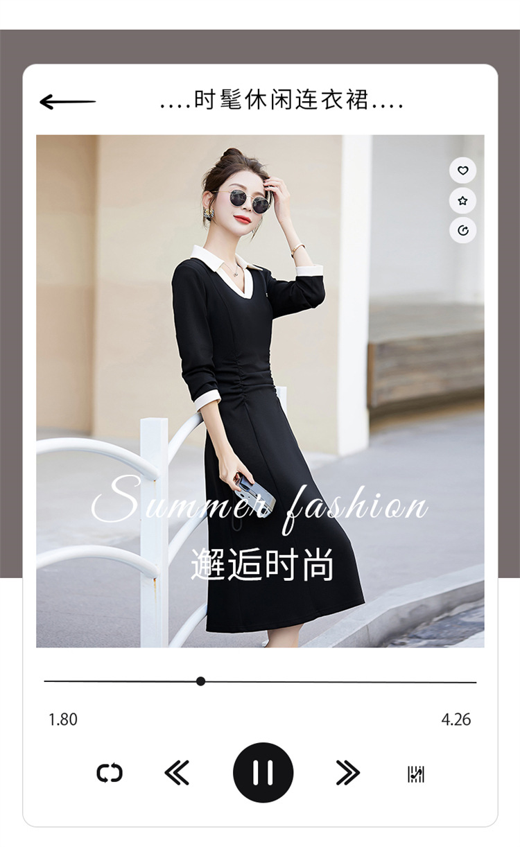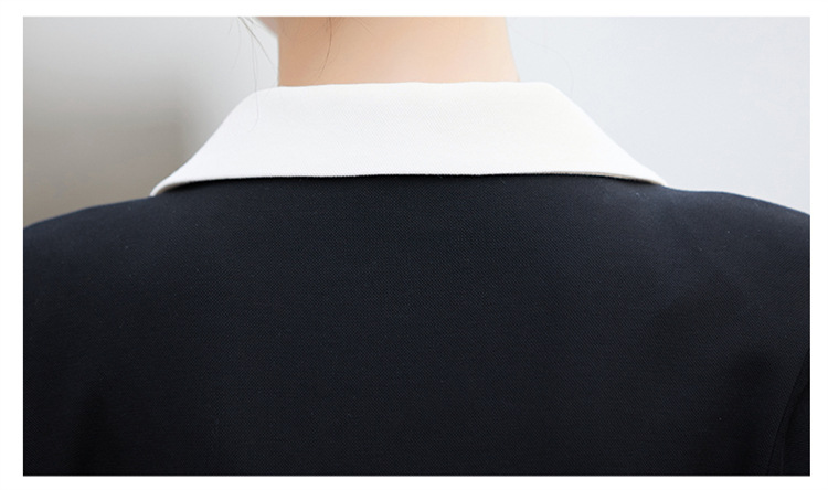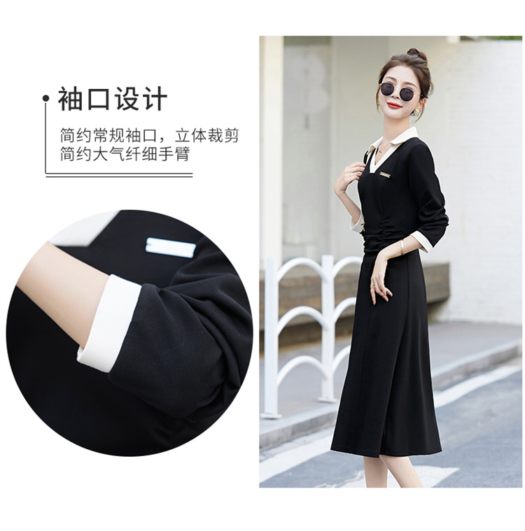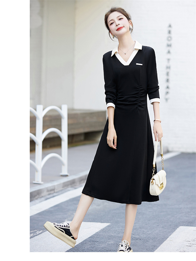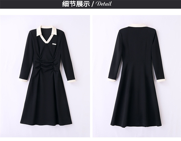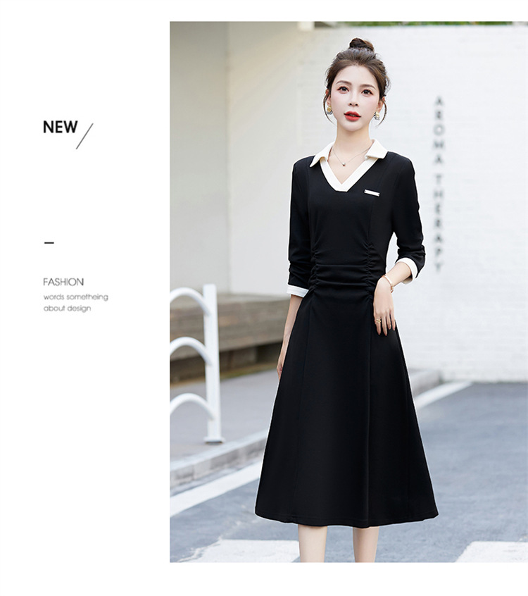 HR-YIXG8855拼色小众设计感衬衫POLO领收腰显高小黑裙2025新款收腰气质连衣裙