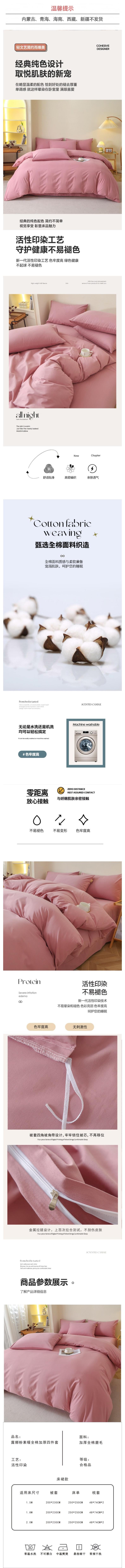 彼加曼 “露娜粉”素暖全棉加厚四件套200*230cm BGM-T2527