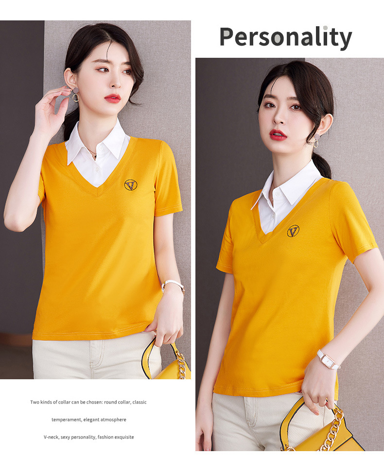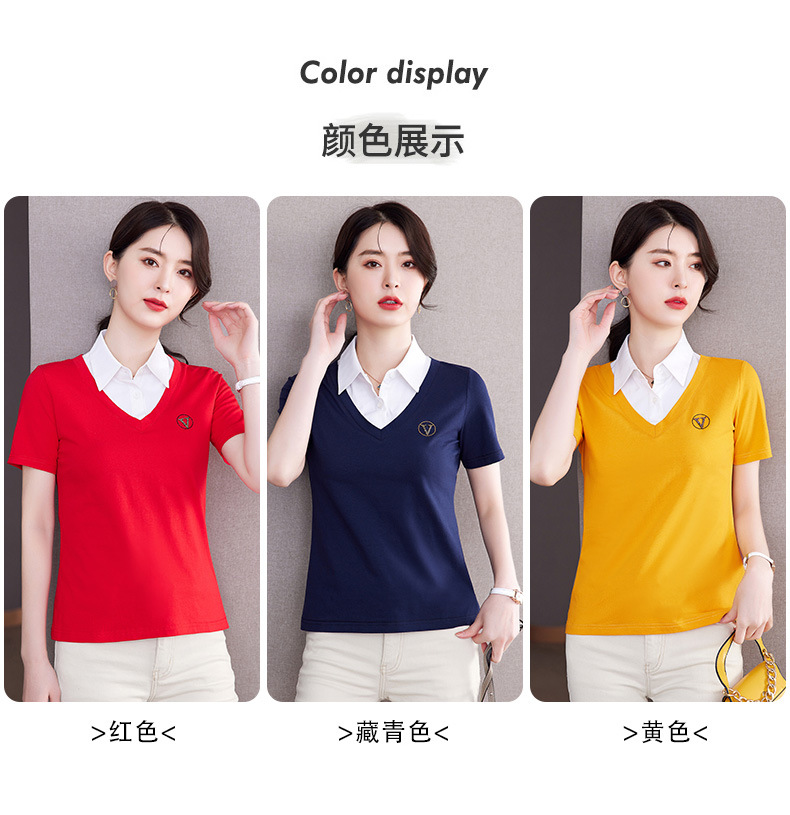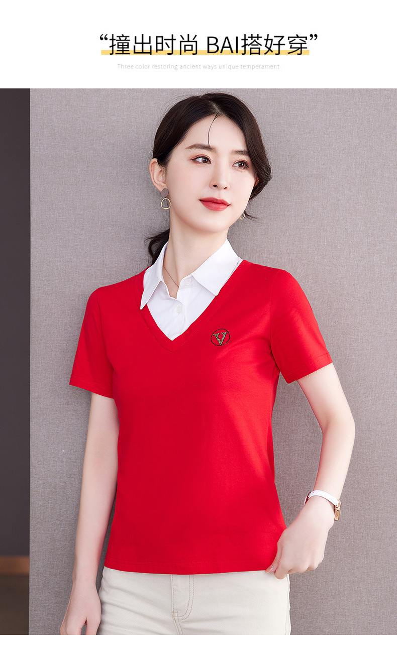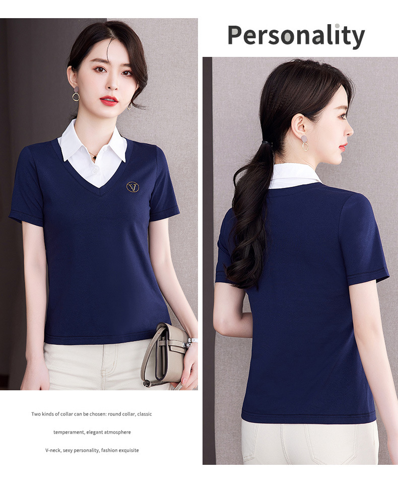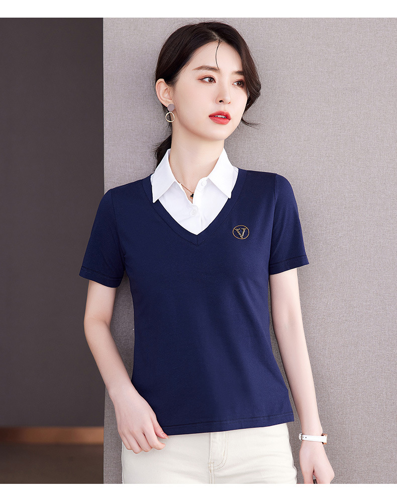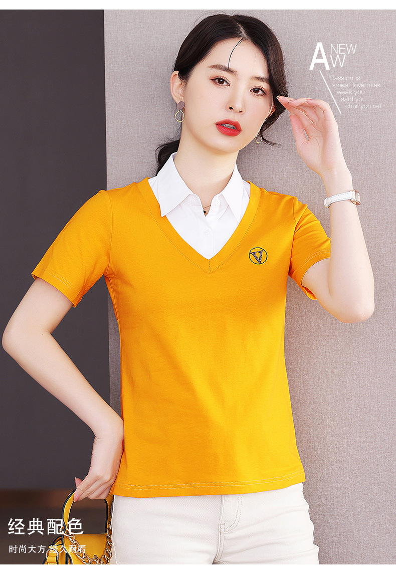 棉质假两件T恤,新款时尚百搭休闲上衣QB-LL89037