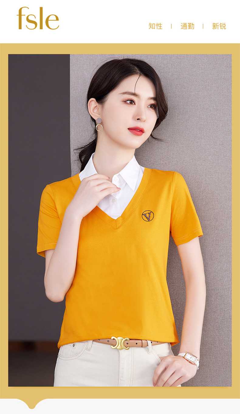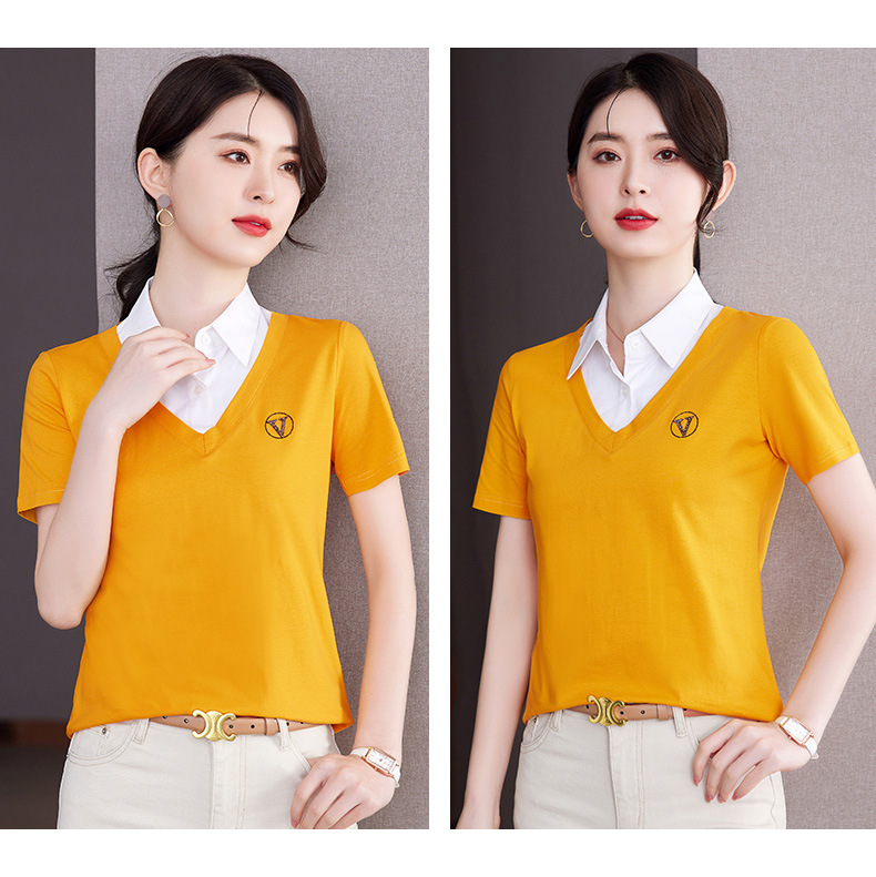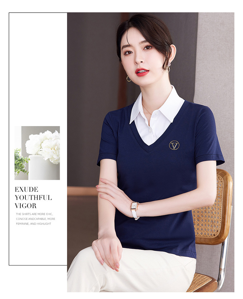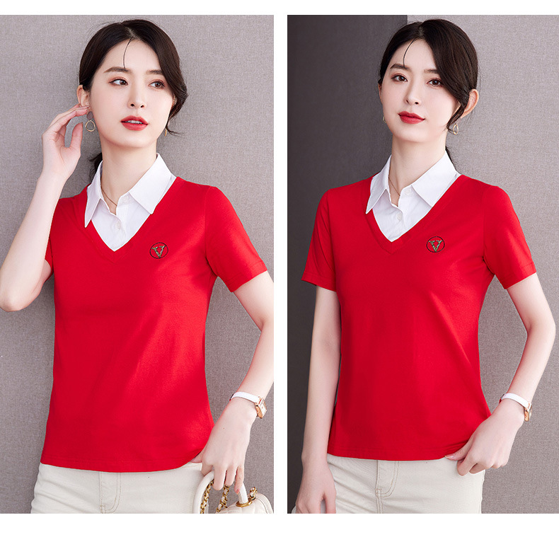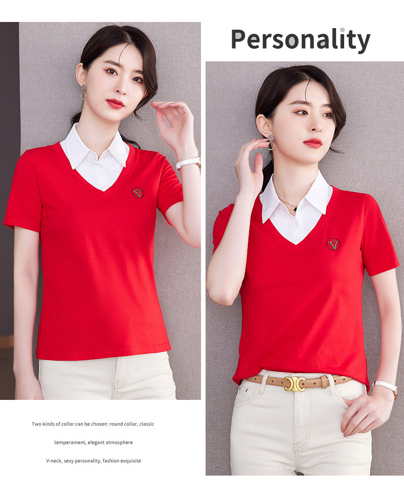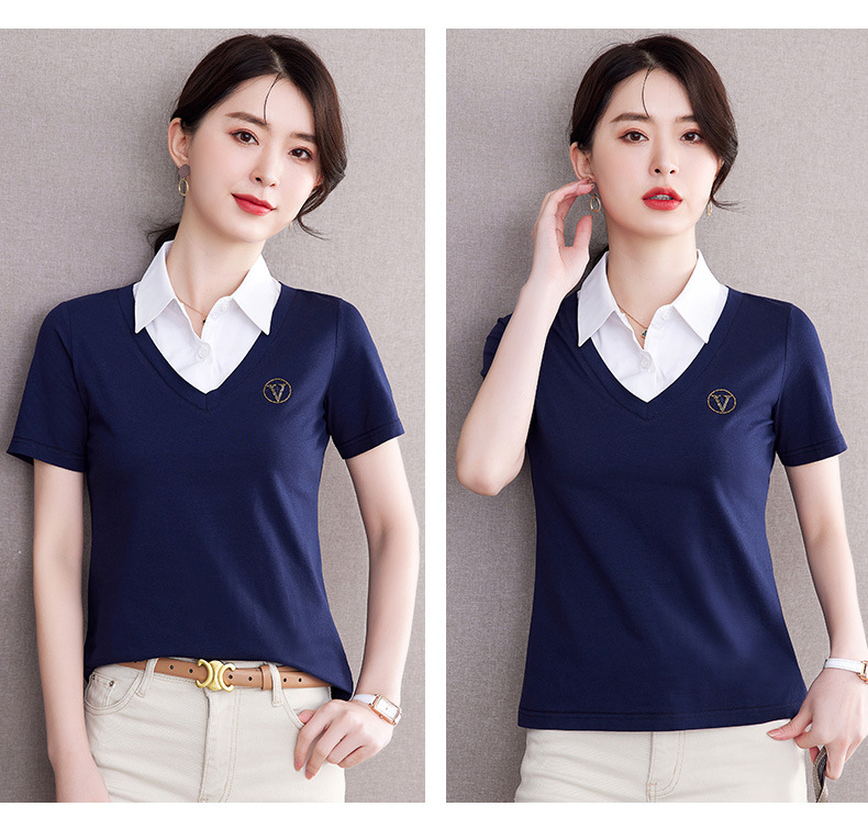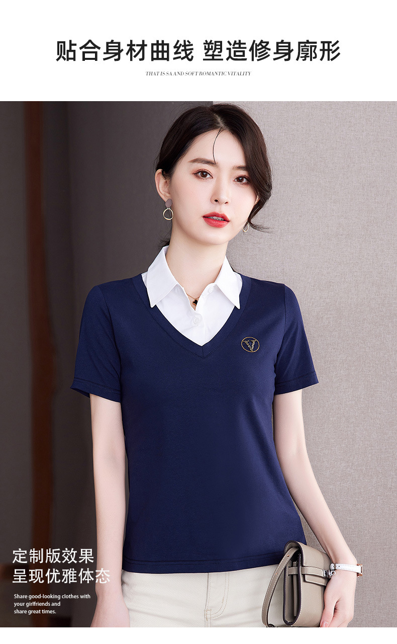 棉质假两件T恤,新款时尚百搭休闲上衣QB-LL89037