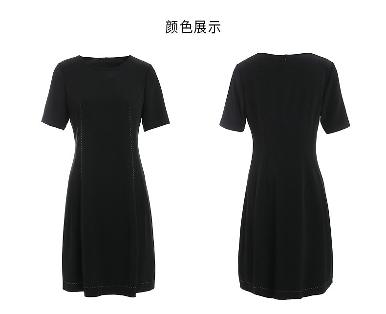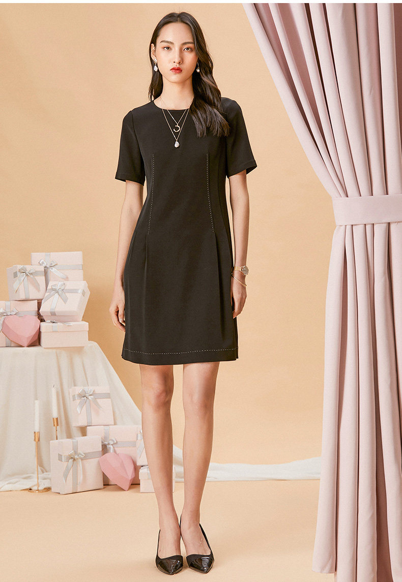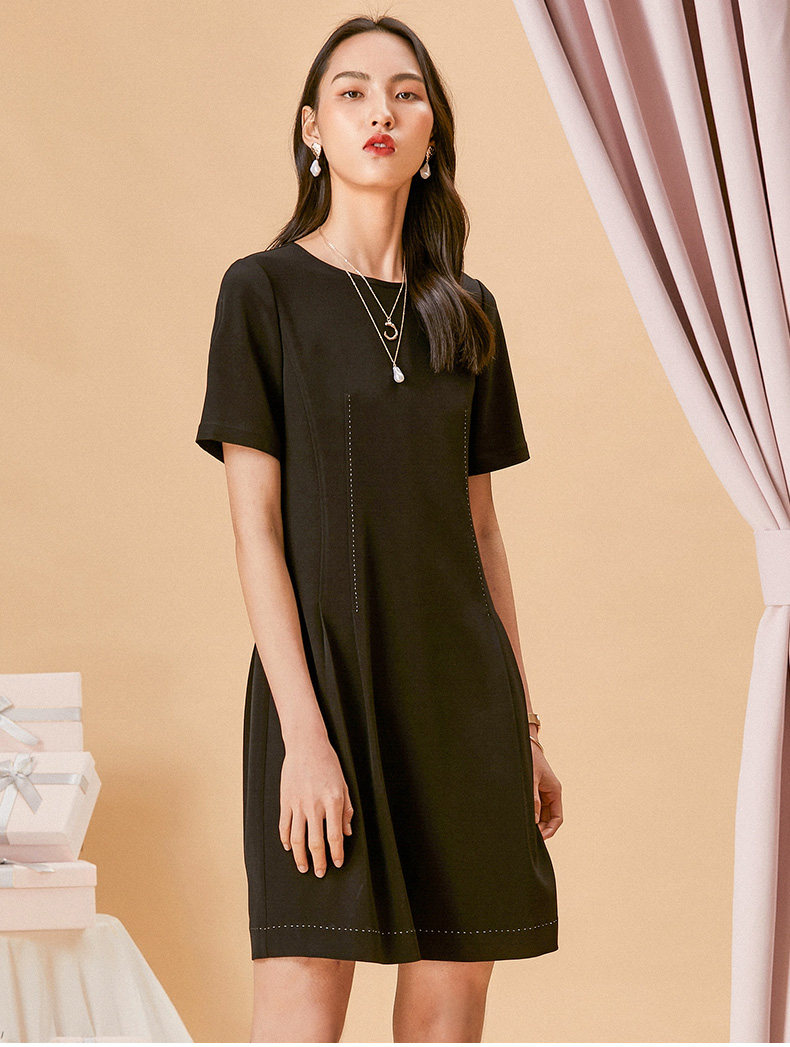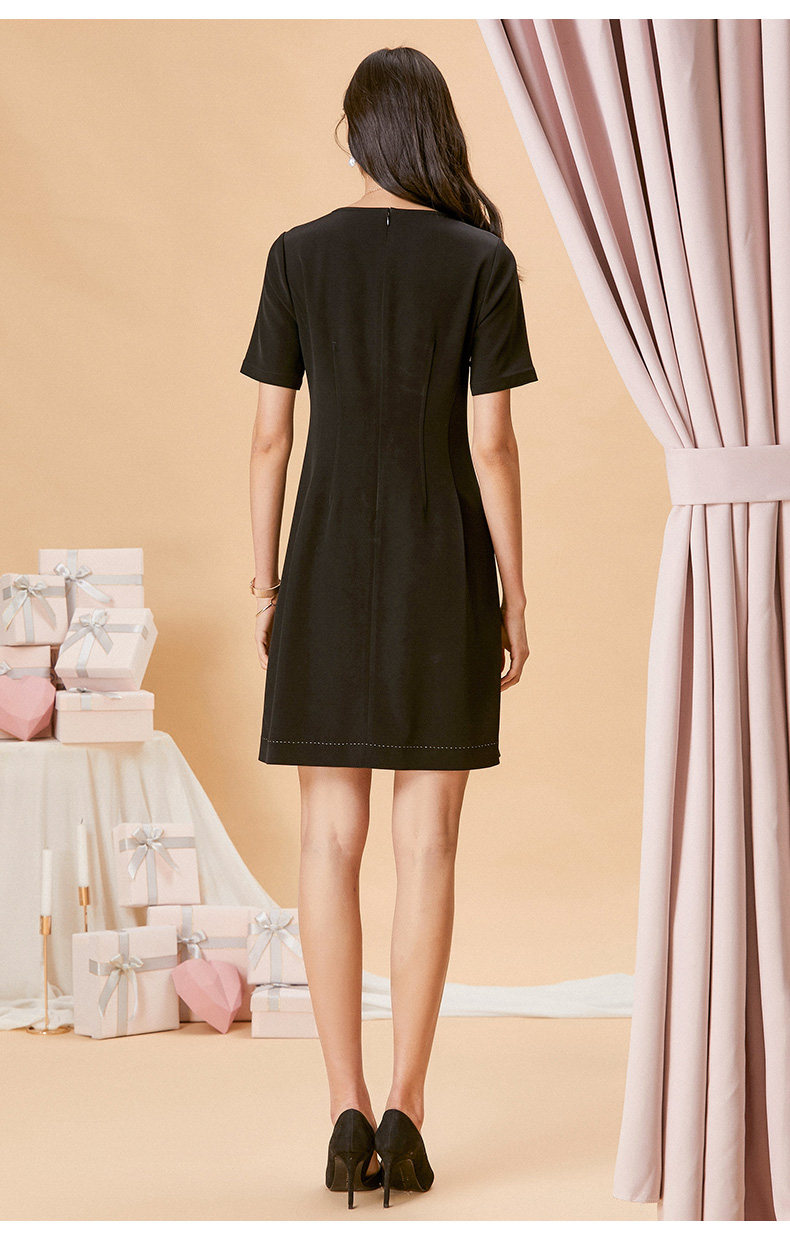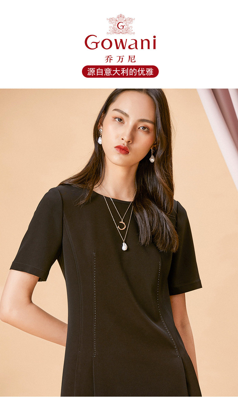 乔万尼春季新款短袖连衣裙女简约大气气质修身百搭小黑裙中长ES1E016