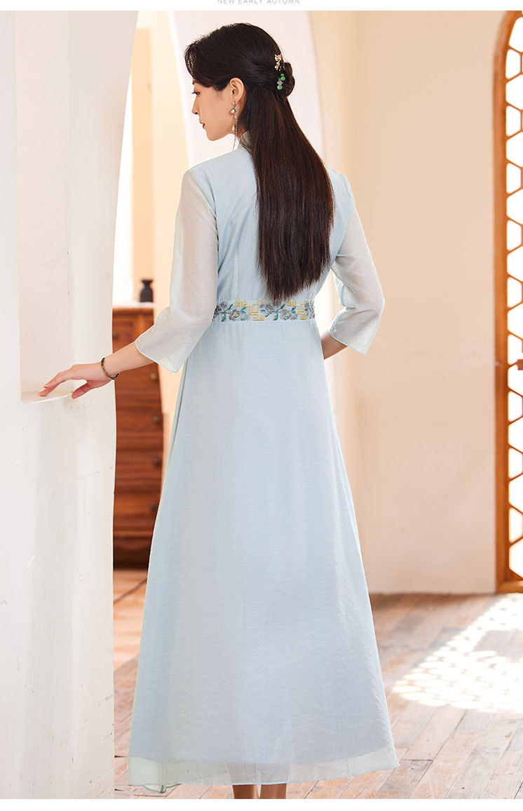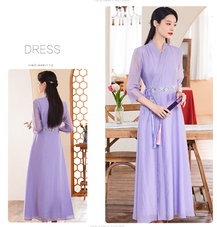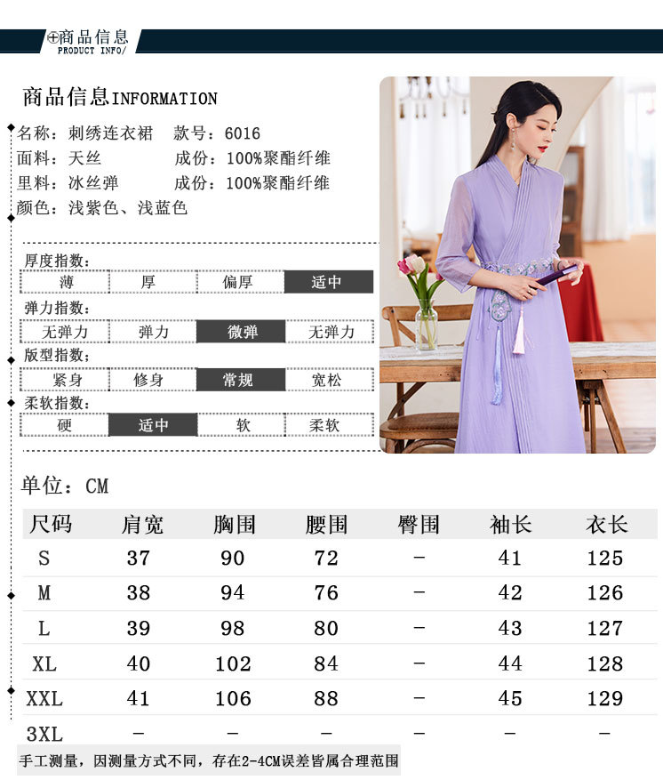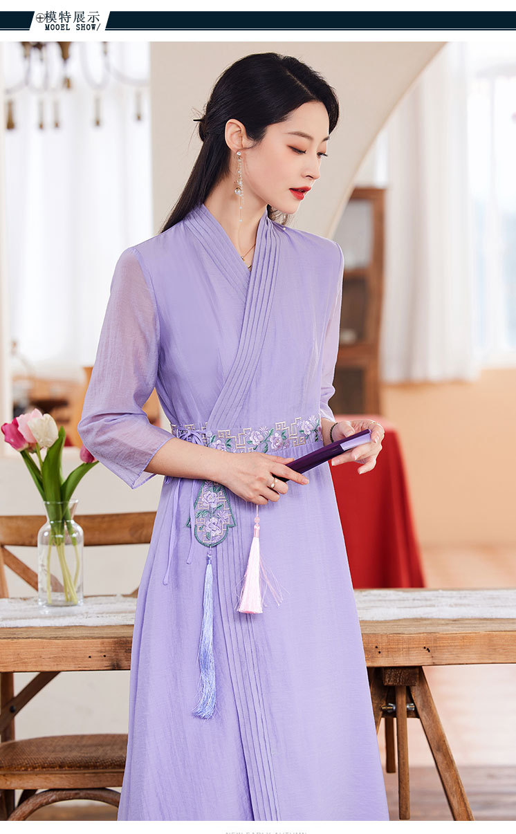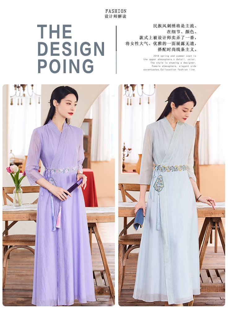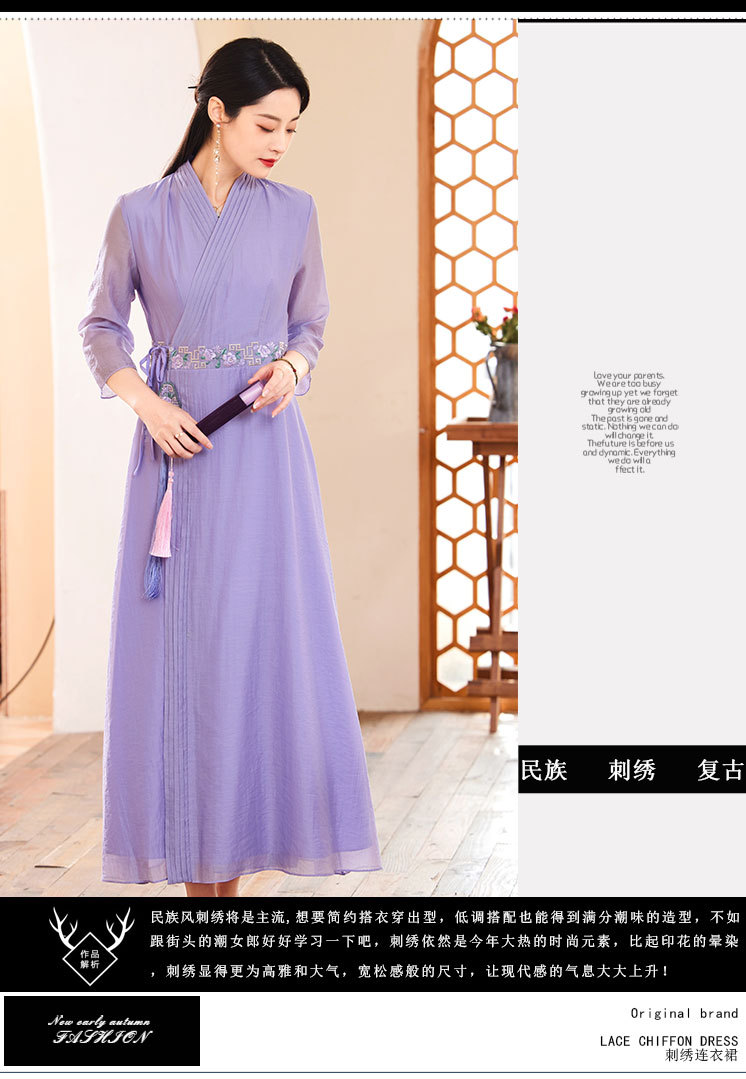 中式复古民族风,绣花禅意服大码连衣裙OG-6016