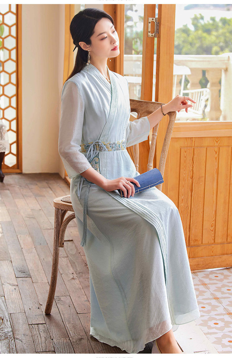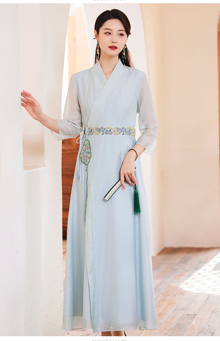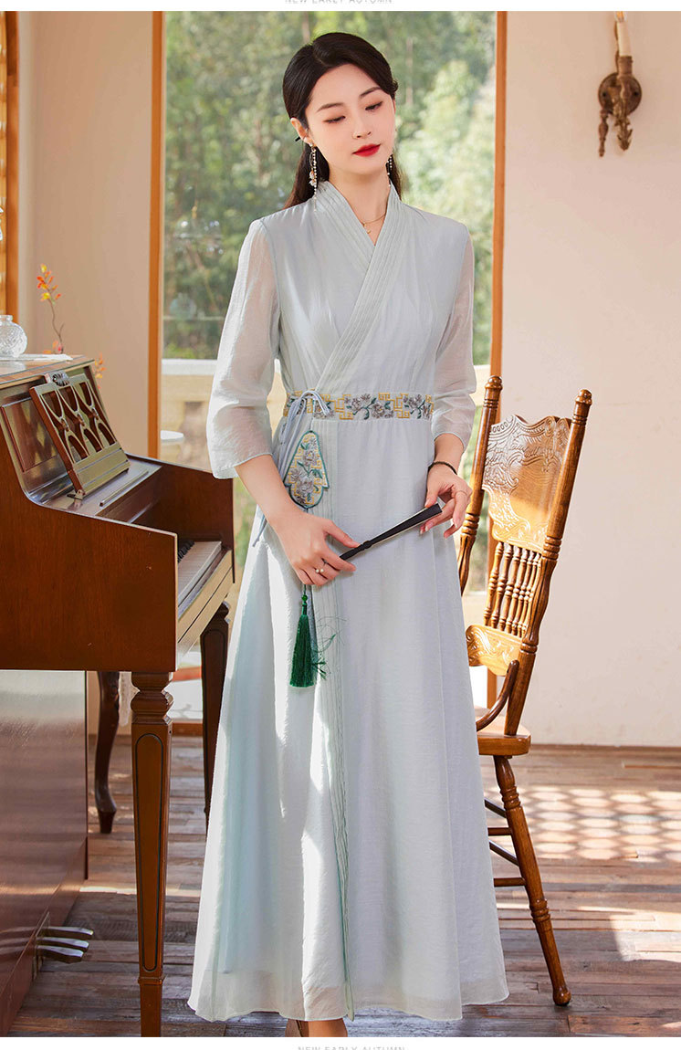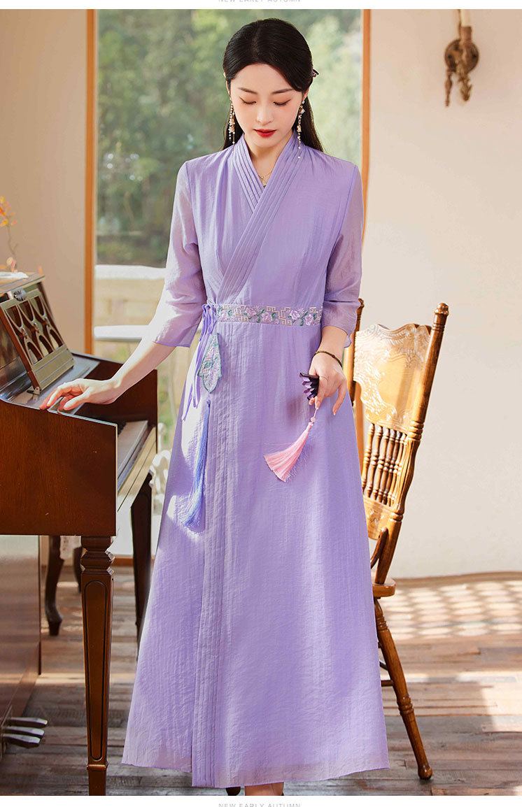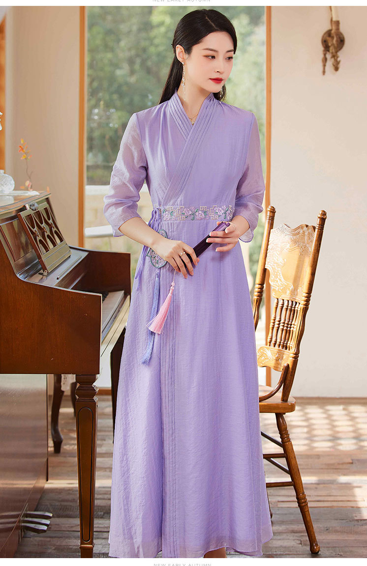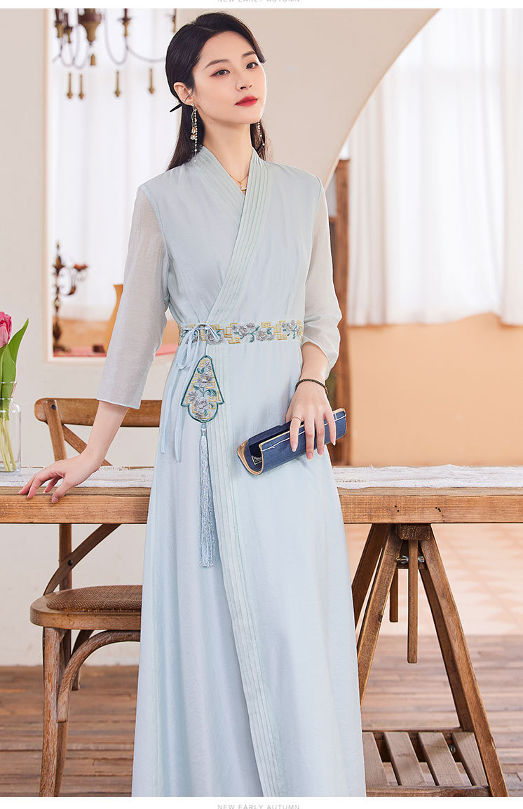 中式复古民族风,绣花禅意服大码连衣裙OG-6016