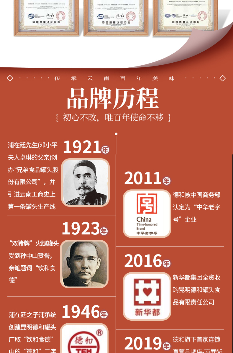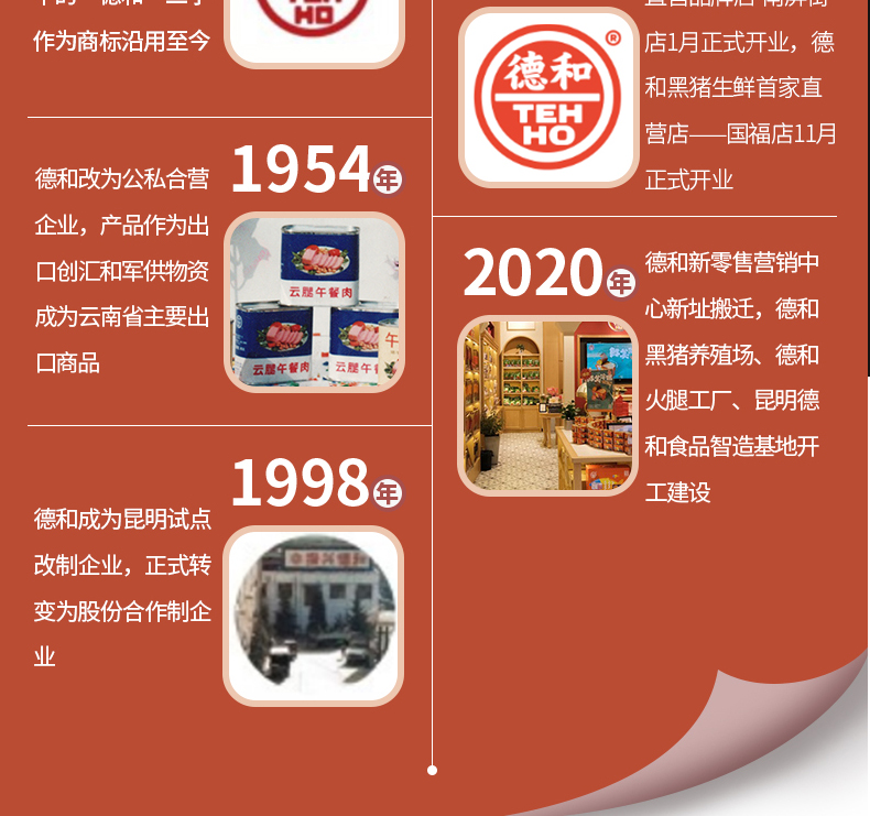 昆明德和罐头厂是中国最早开始生产制造罐头的企业之一,至今已有九十八年的悠久历史,现已形成以罐头食品为主,腌腊制品、糕点月饼等为辅的云南省规模最大和最具影响力综合食品制造企业,奠定了云南罐头行业的基石。