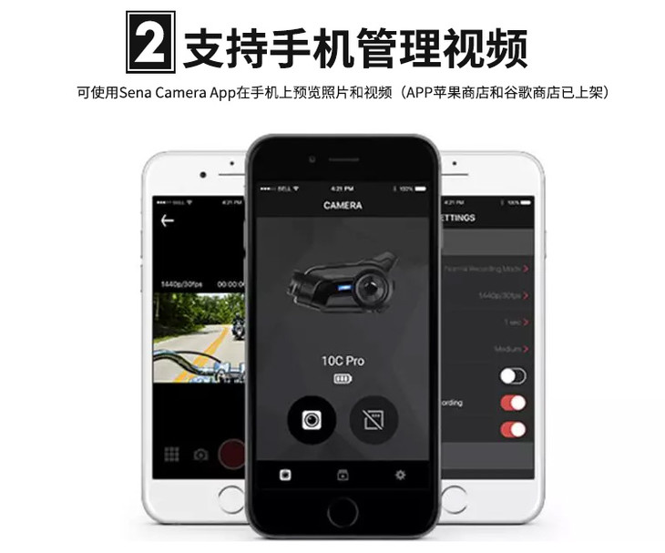 新款美国SENA塞纳10C PRO摩托车头盔蓝牙耳机行车记录仪防水