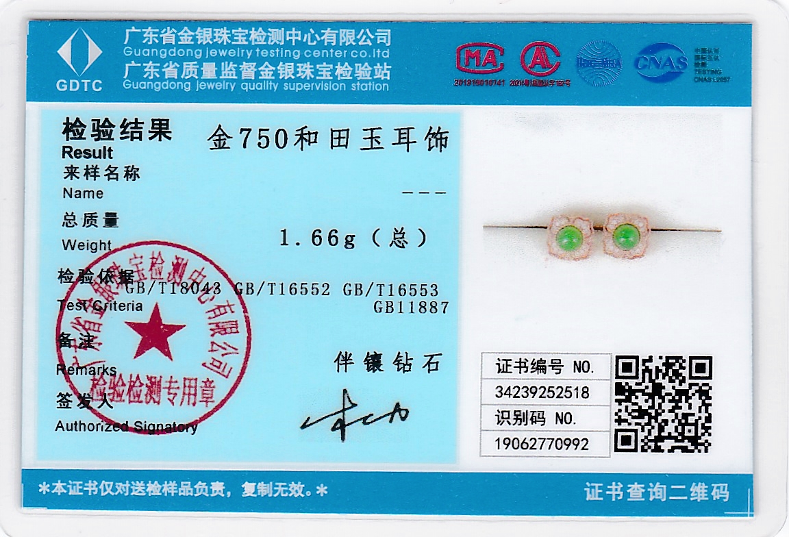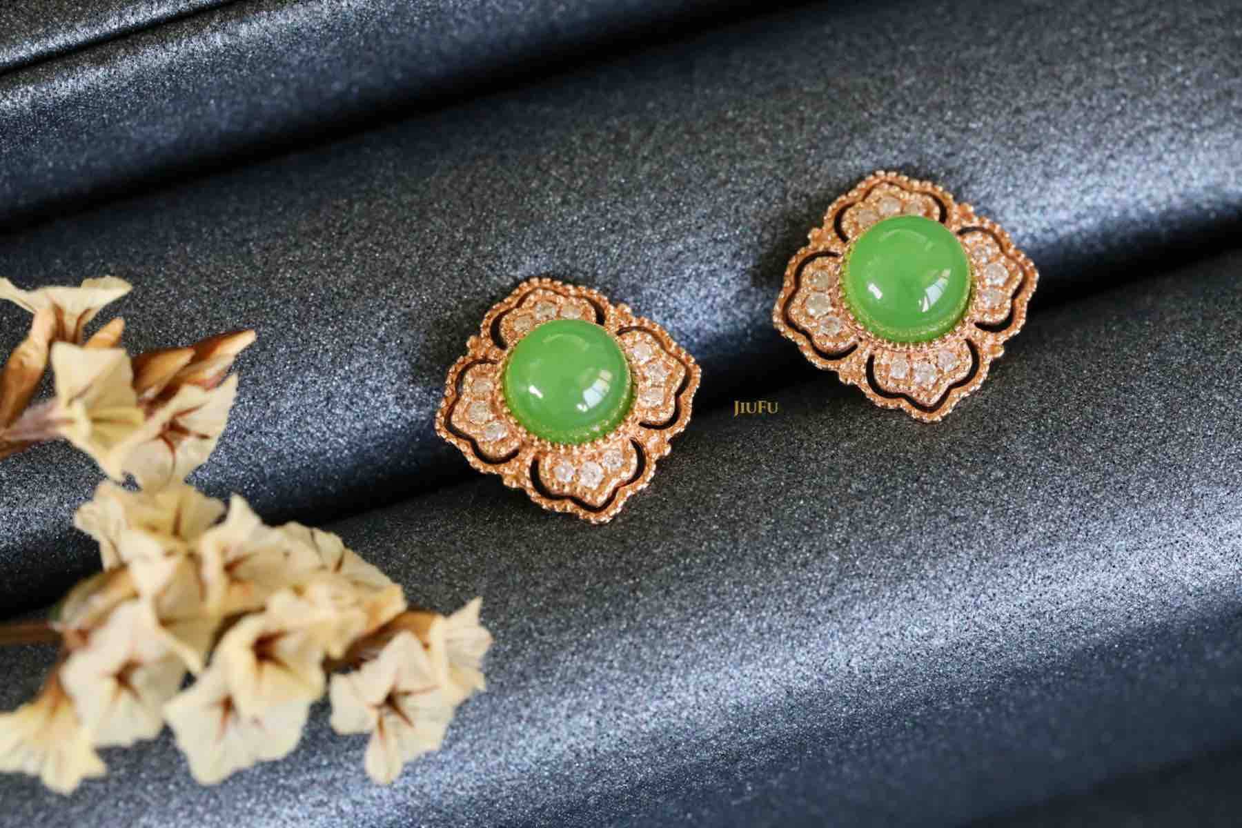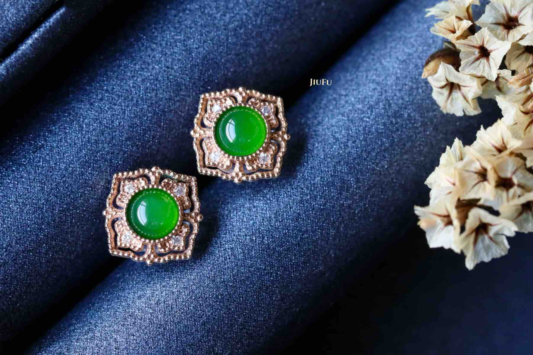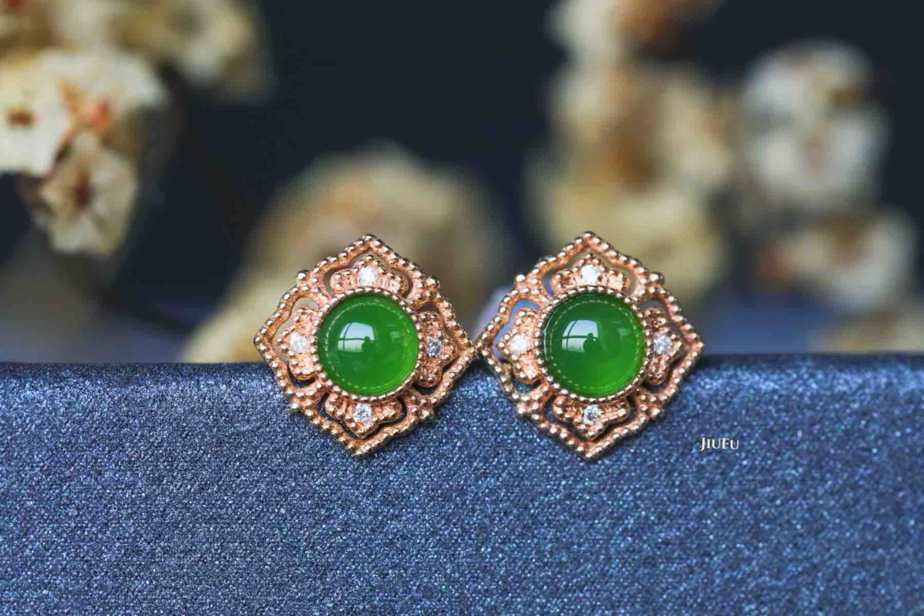 18K玫瑰金和田玉(碧玉)耳饰