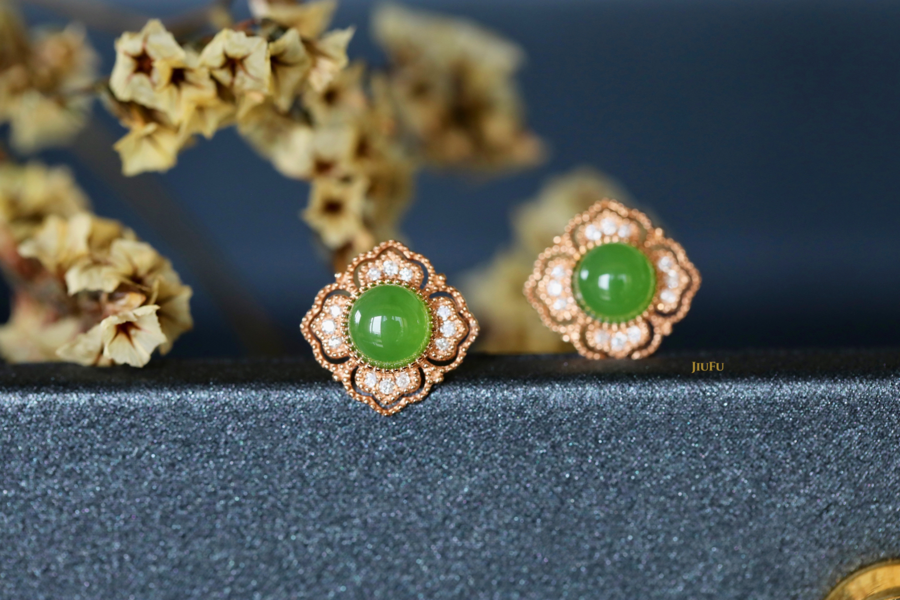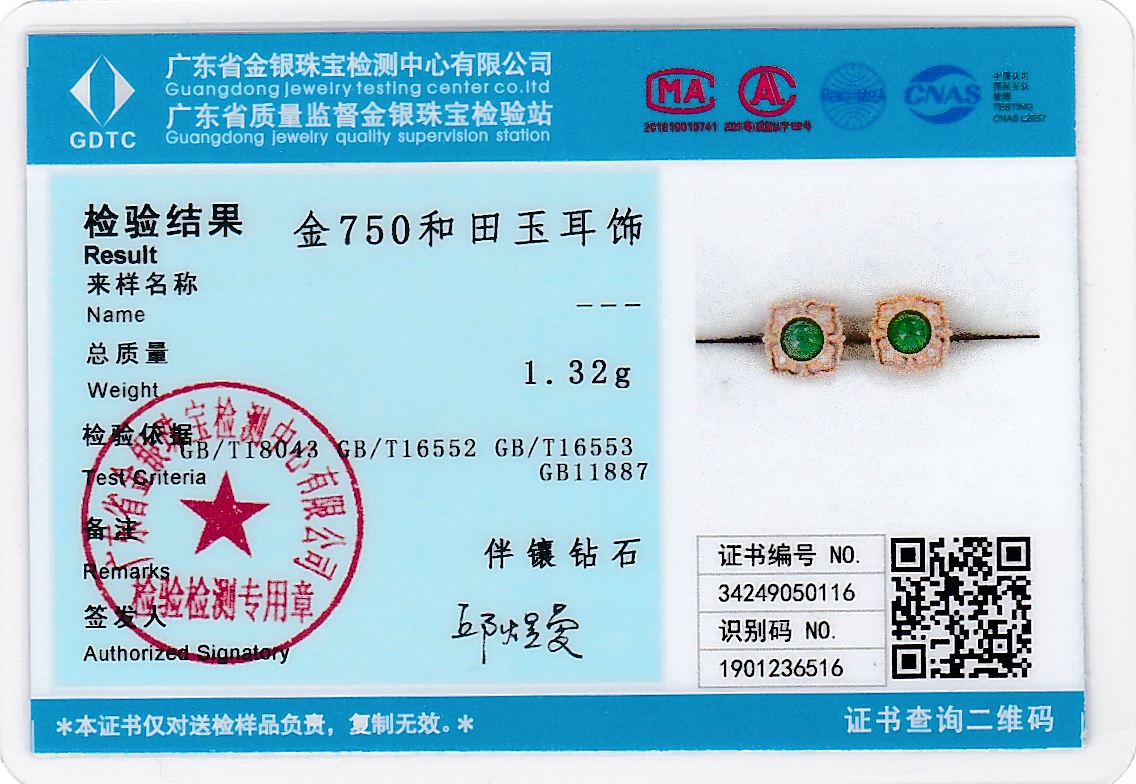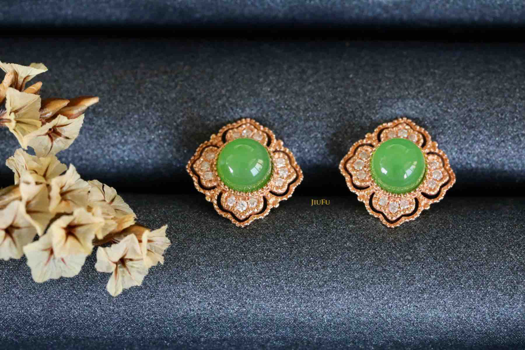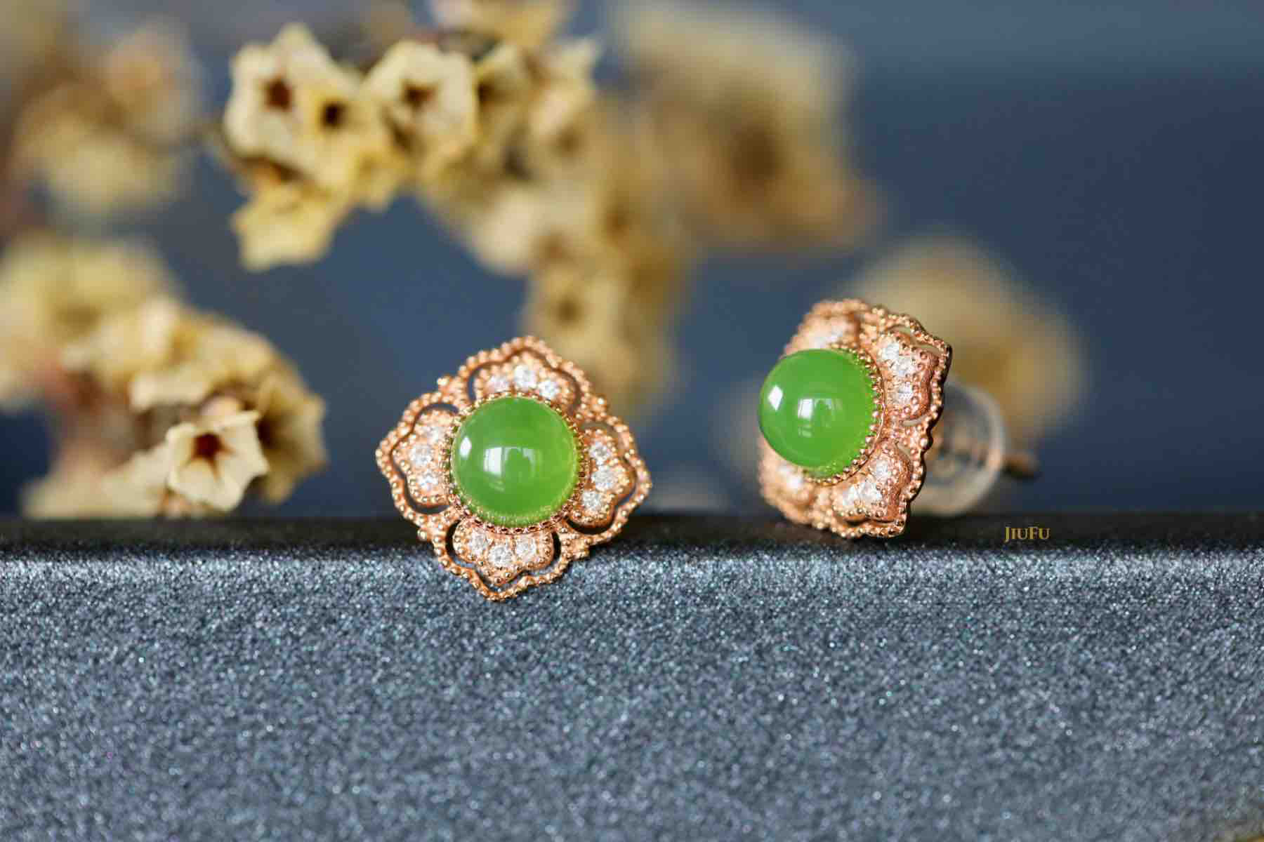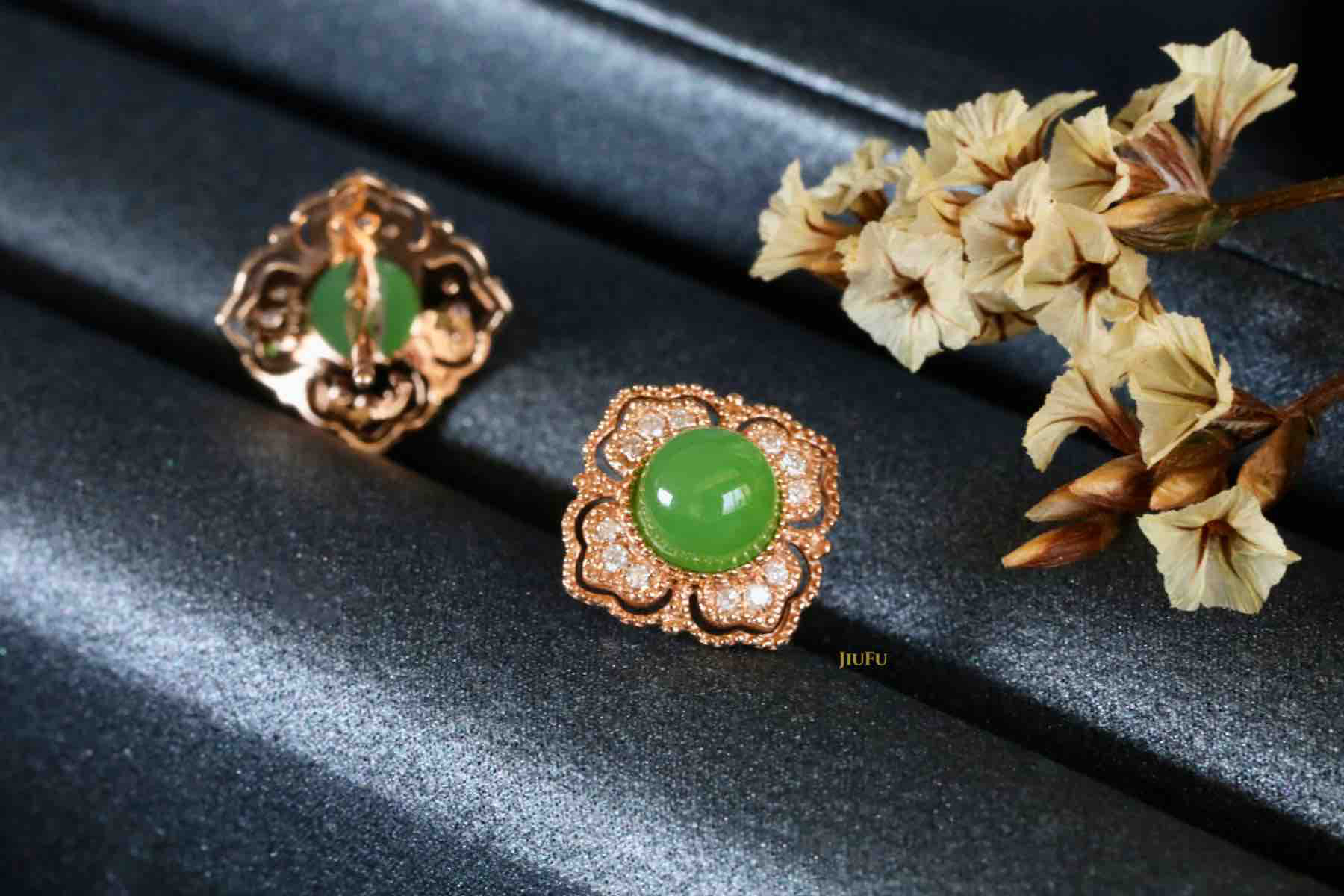 18K玫瑰金和田玉(碧玉)耳饰