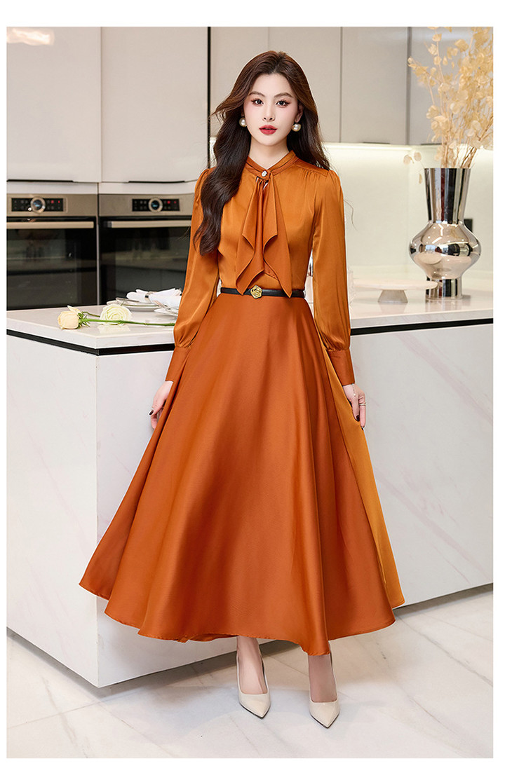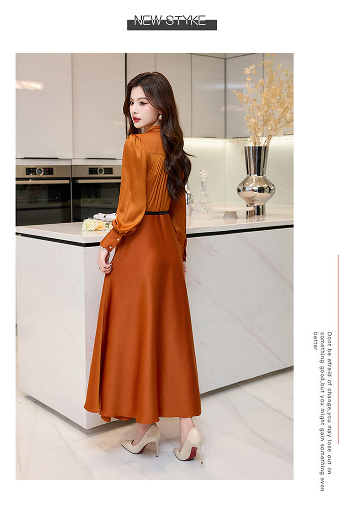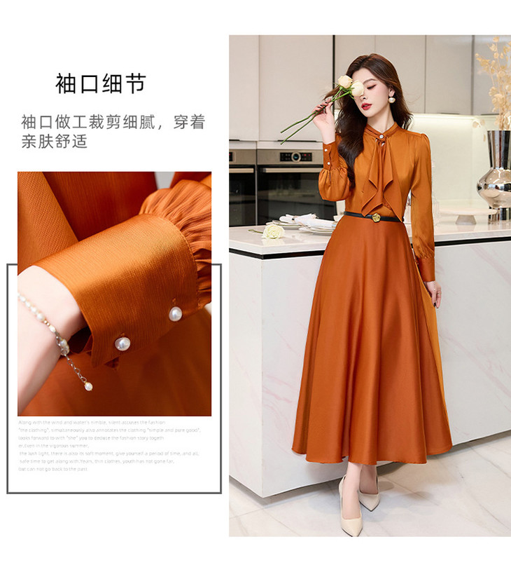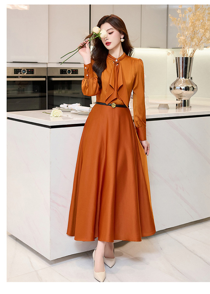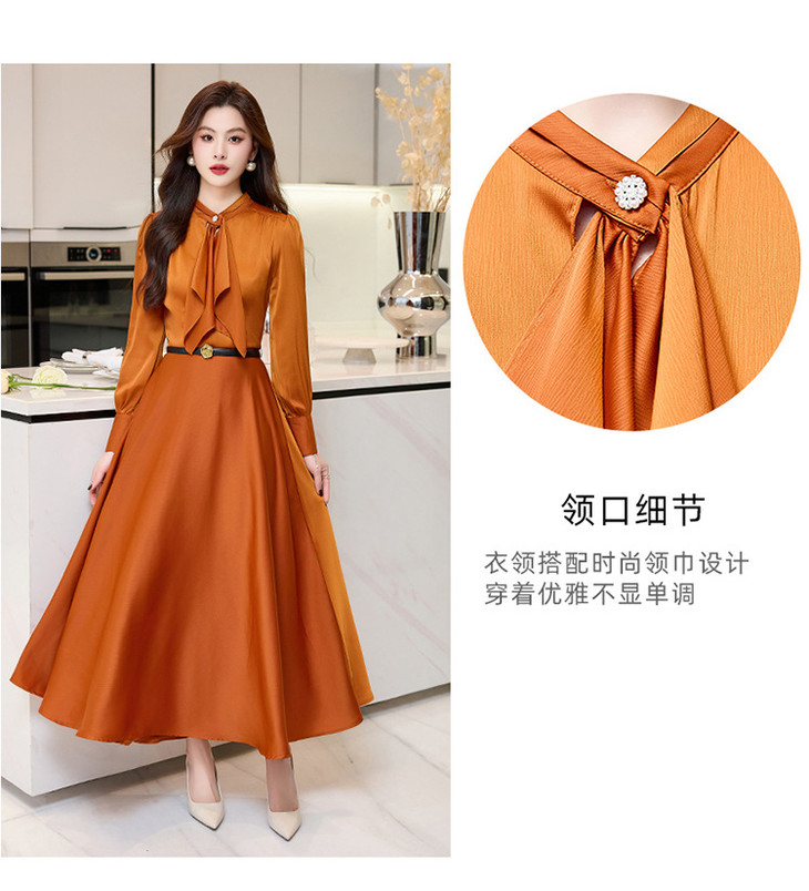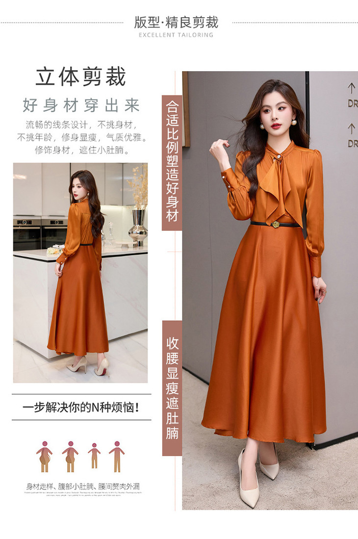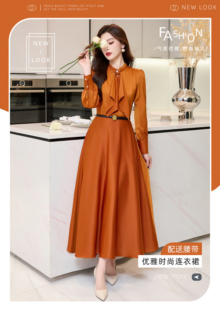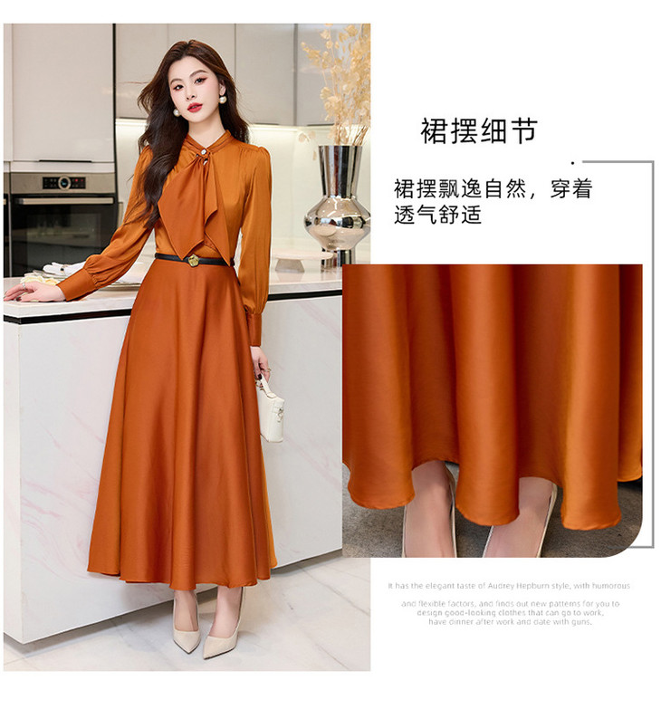 秋款气质洋气百搭收腰显瘦透气长款纯色连衣裙【配腰带】SNX2907