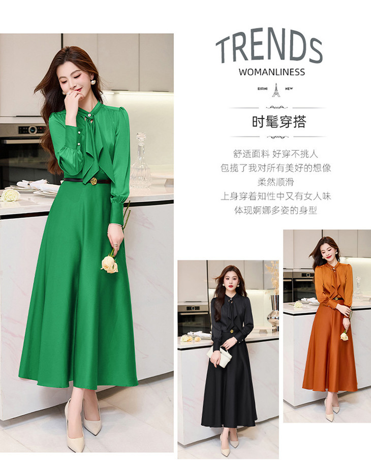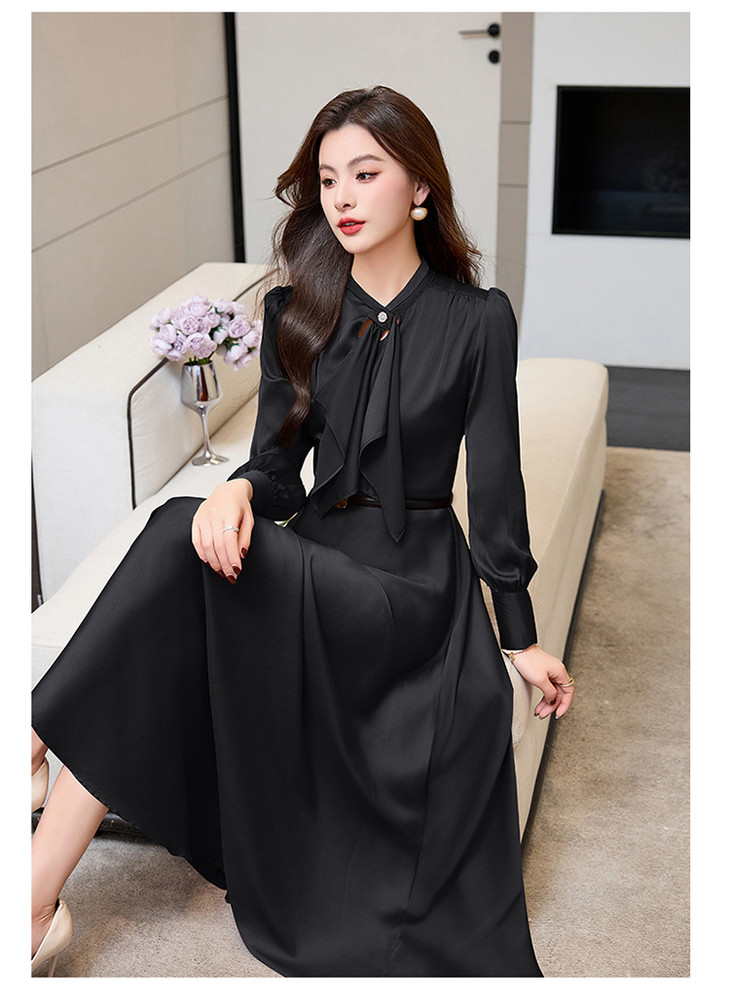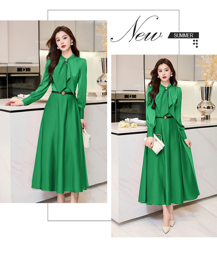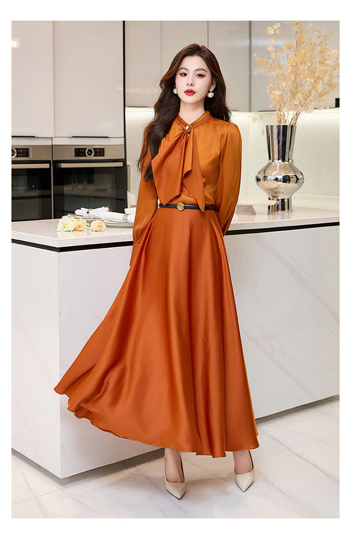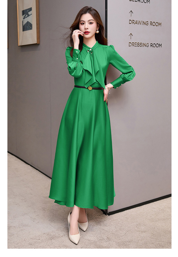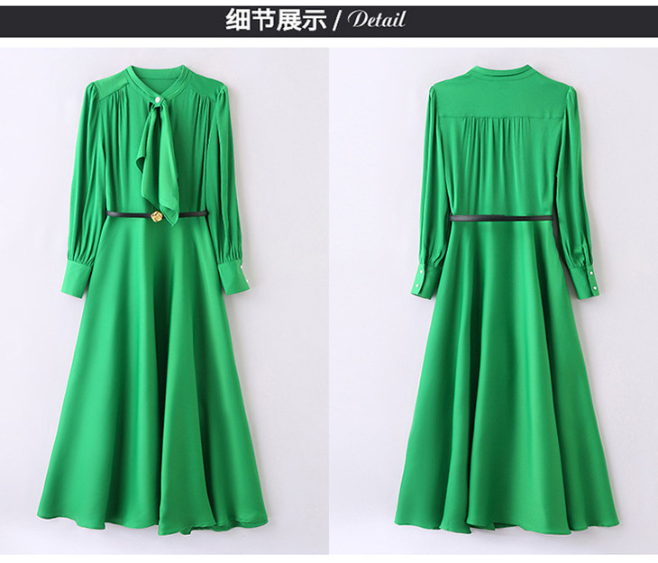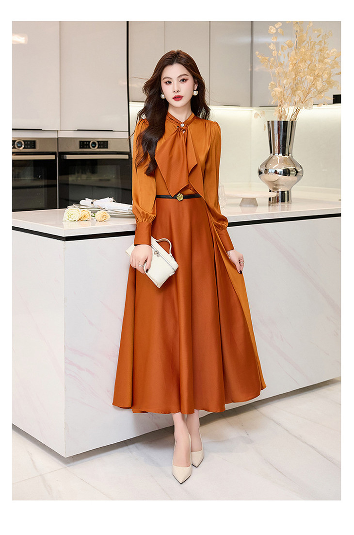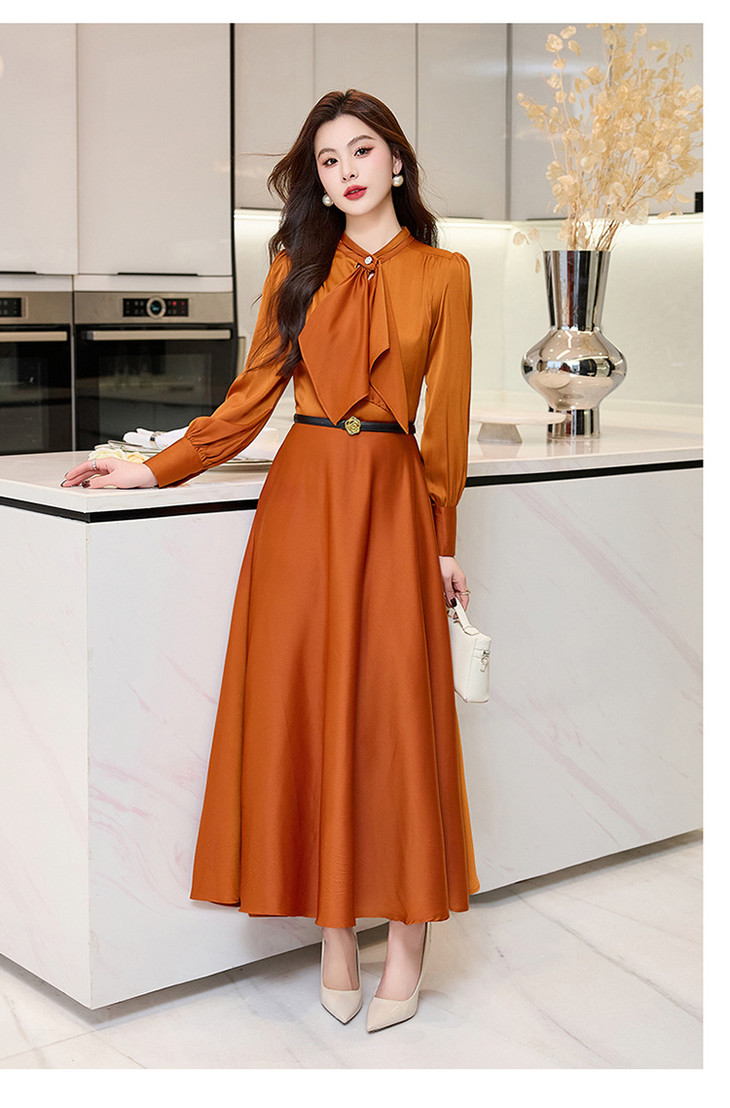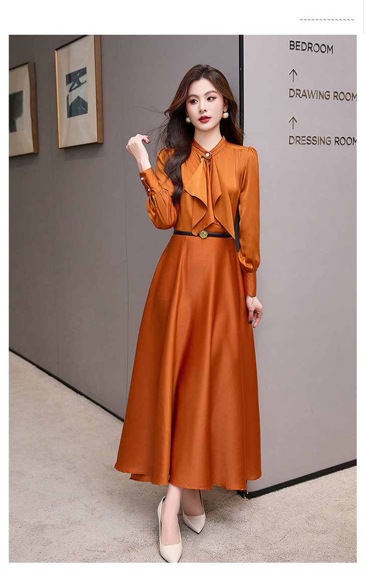 秋款气质洋气百搭收腰显瘦透气长款纯色连衣裙【配腰带】SNX2907