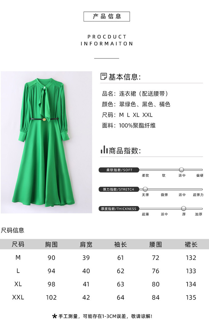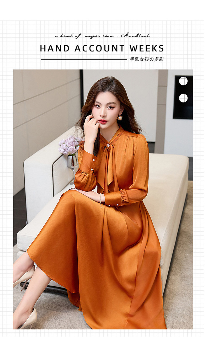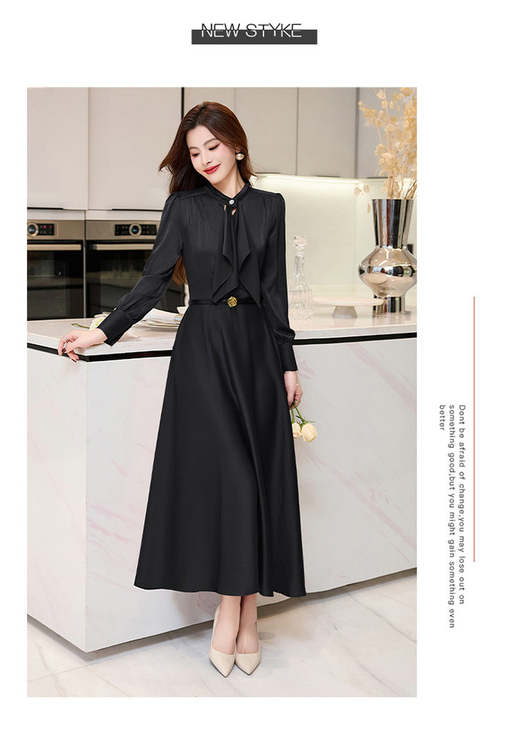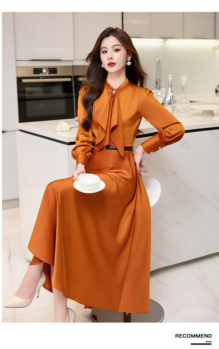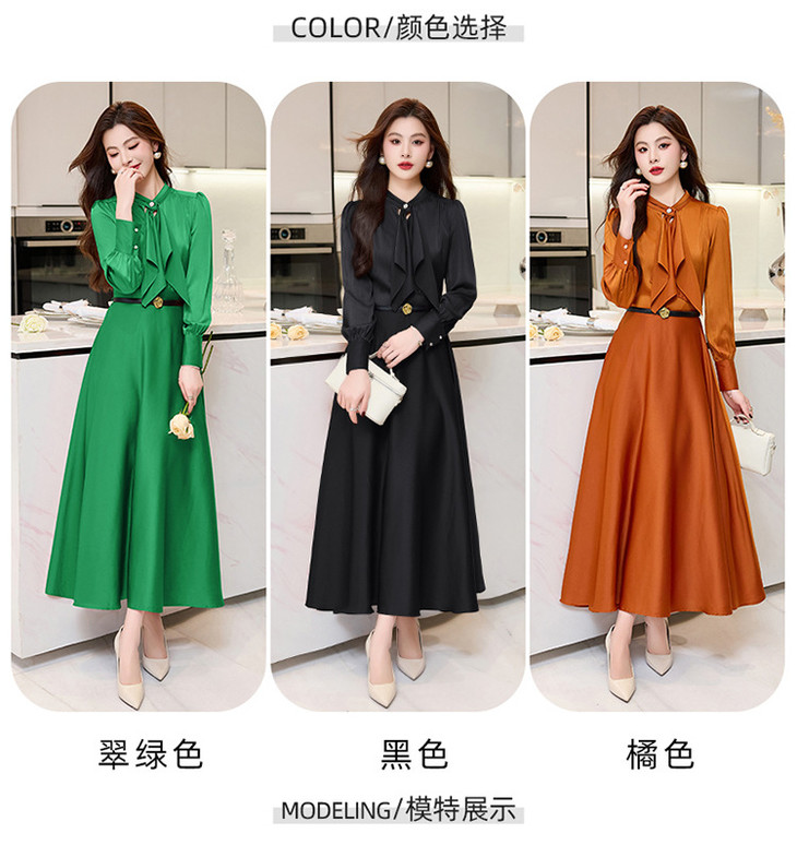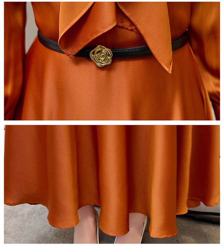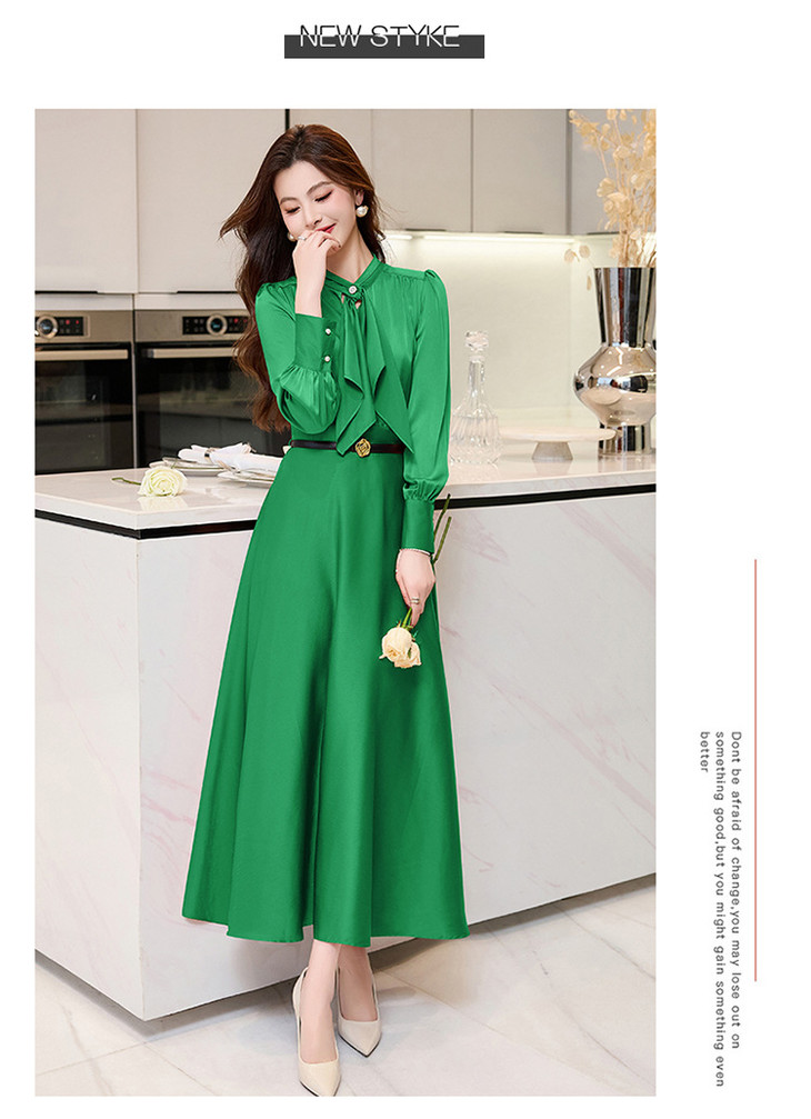 秋款气质洋气百搭收腰显瘦透气长款纯色连衣裙【配腰带】SNX2907