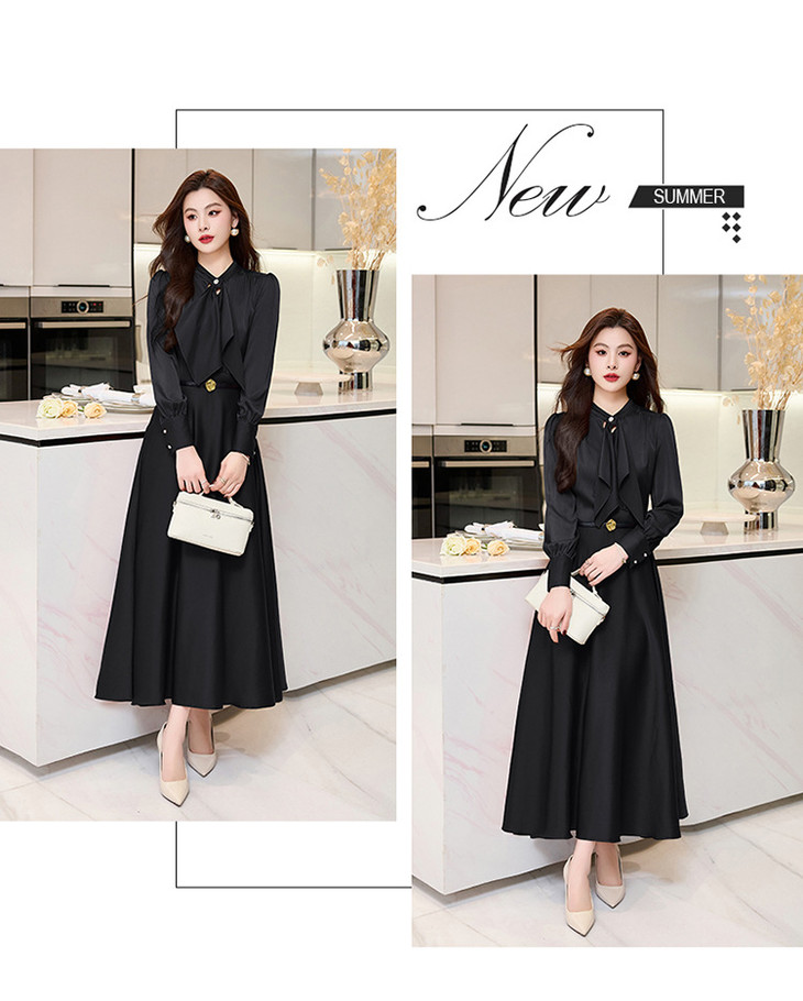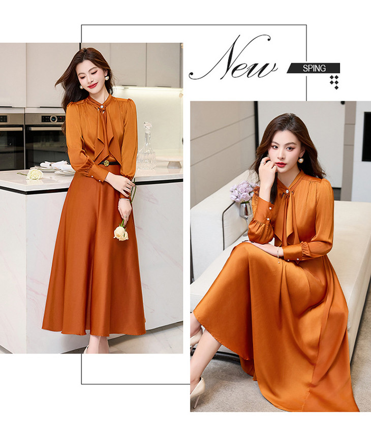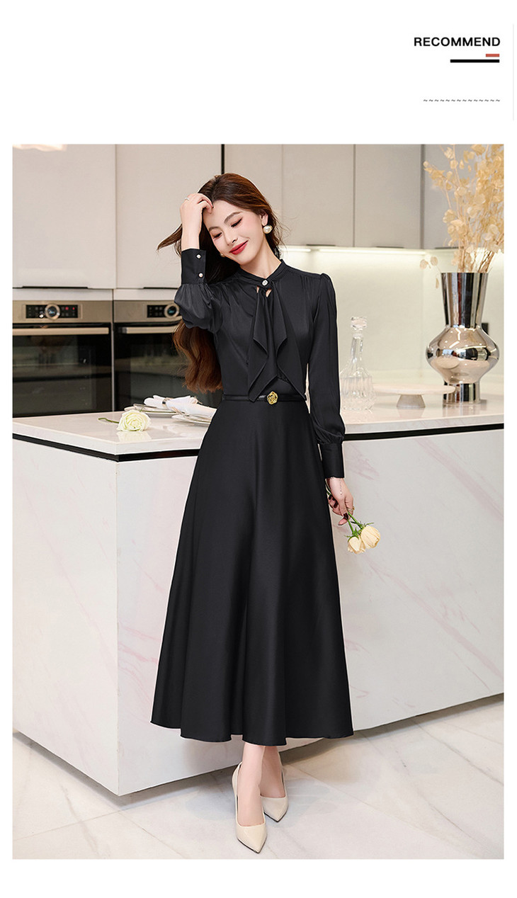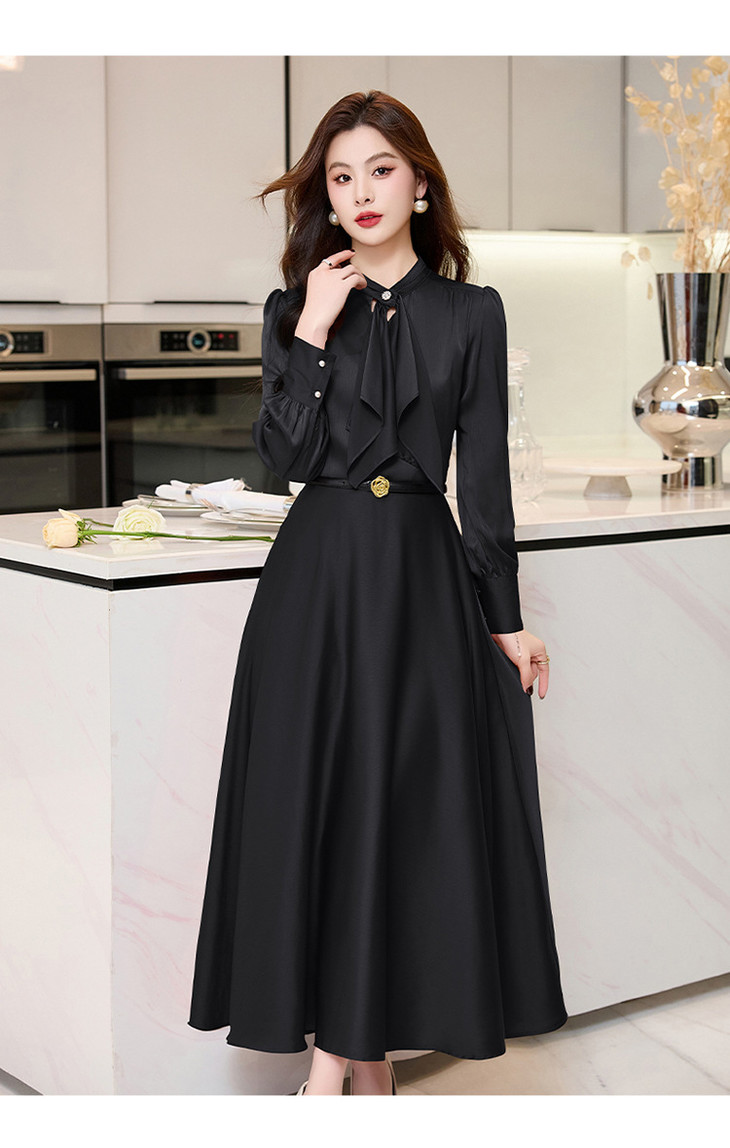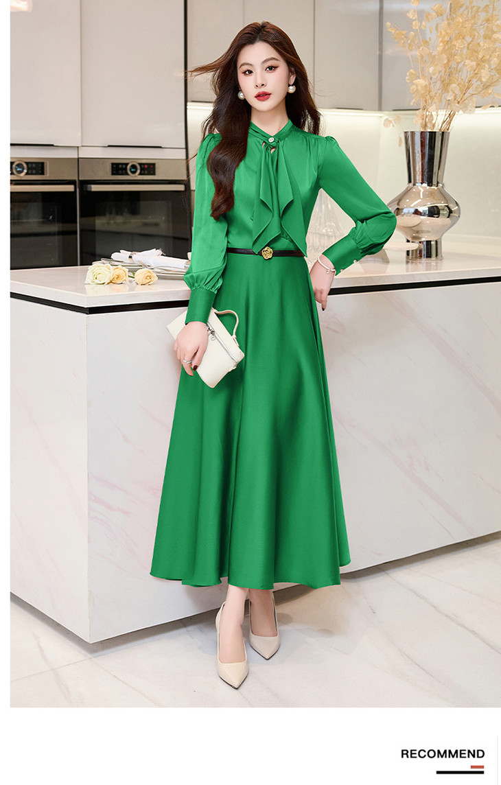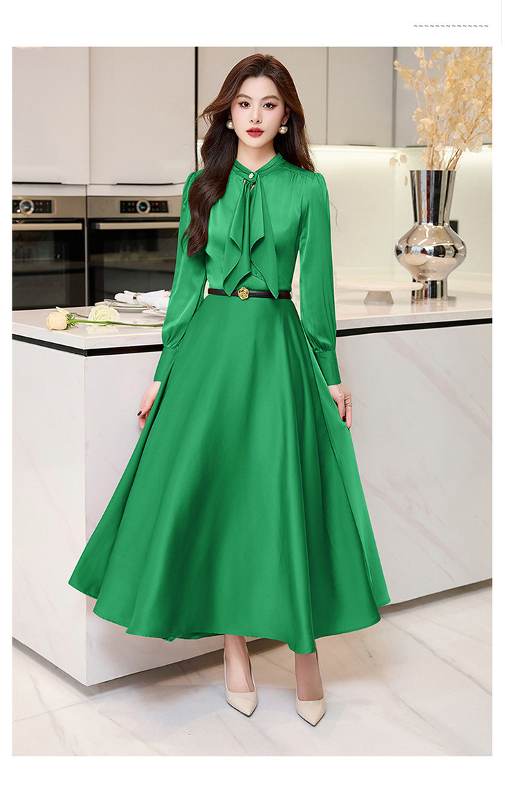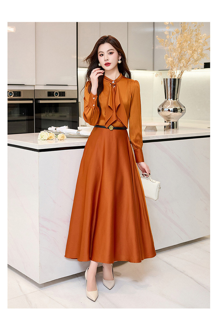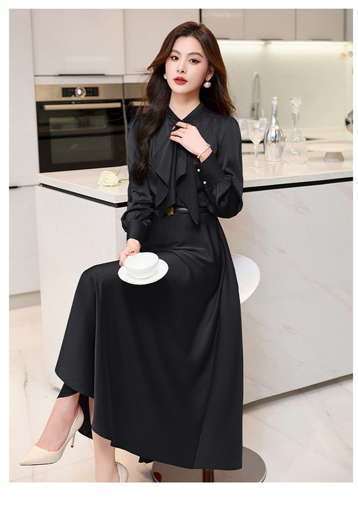 秋款气质洋气百搭收腰显瘦透气长款纯色连衣裙【配腰带】SNX2907