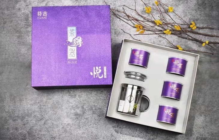 【推荐】芬吉茶业悦茶器1杯4罐(黑茶+白茶+两桶乌龙茶)
