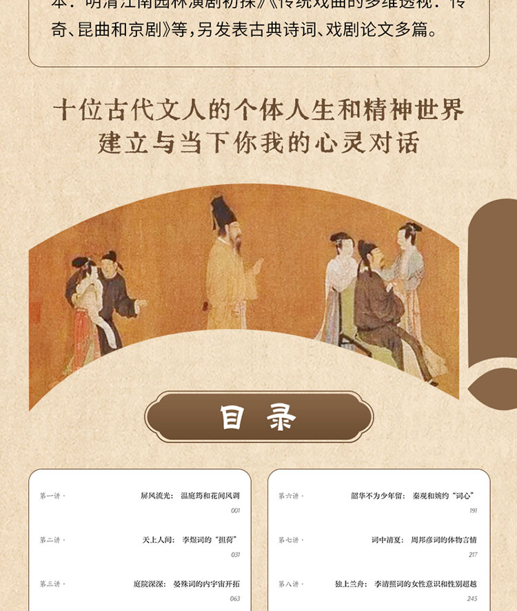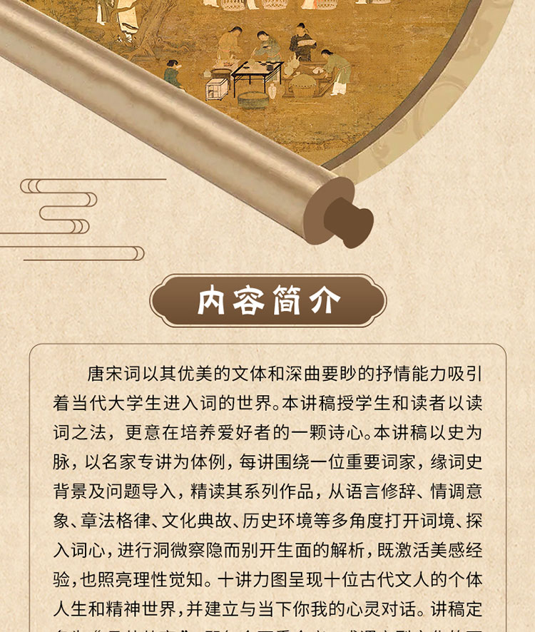 唐宋词以其优美的文体和深曲要眇的抒情能力吸引着当代大学生进入词的世界。本讲稿授学生和读者以读词之法,更意在培养爱好者的一颗诗心。本讲稿以史为脉,以名家专讲为体例,每讲围绕一位重要词家,缘词史背景及问题导入,精读其系列作品,从语言修辞、情调意象、章法格律、文化典故、历史环境等多角度打开词境、探入词心,进行洞微察隐而别开生面的解析,既激活美感经验,也照亮理性觉知。 十讲力图呈现十位古代文人的个体人生和精神世界,并建立与当下你我的心灵对话。 讲稿定名为“且共从容”,即包含两重含义,或谓宋型文化的两种精神: 对世间一切美好事物的敏感与珍爱;对人生诸般境遇的态度和应对。本书适合大学生、古典诗词爱好者和普通读者使用。