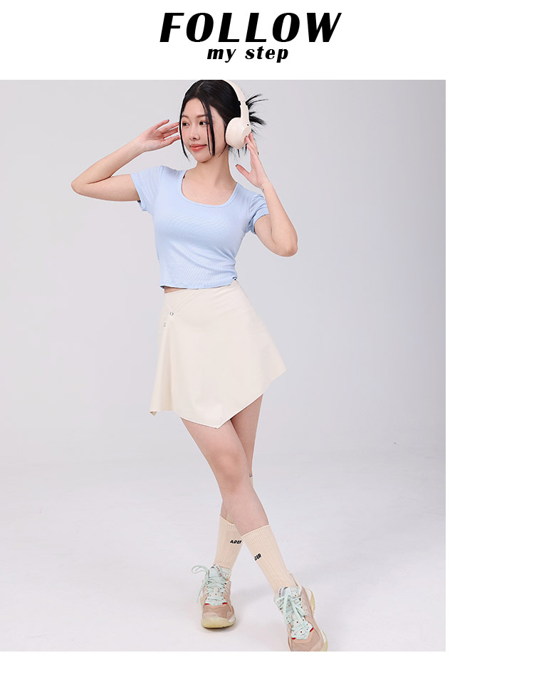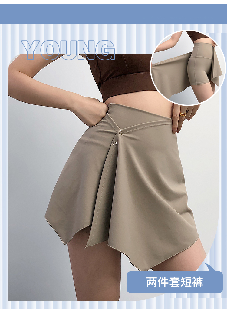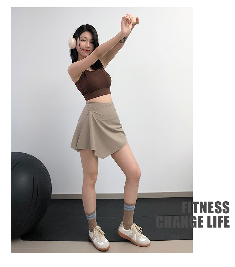 跃牌【美西西系列】两穿瑜伽一片式防走光遮臀裙训练健身气质辣妹运动舞蹈普拉提短裙QK-2501
