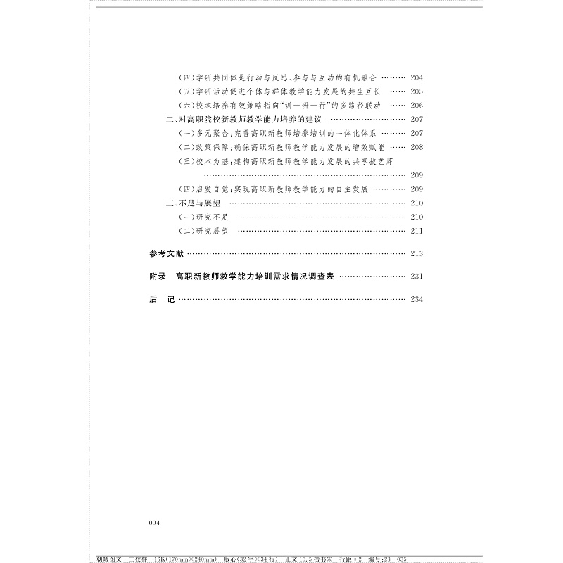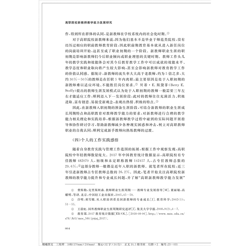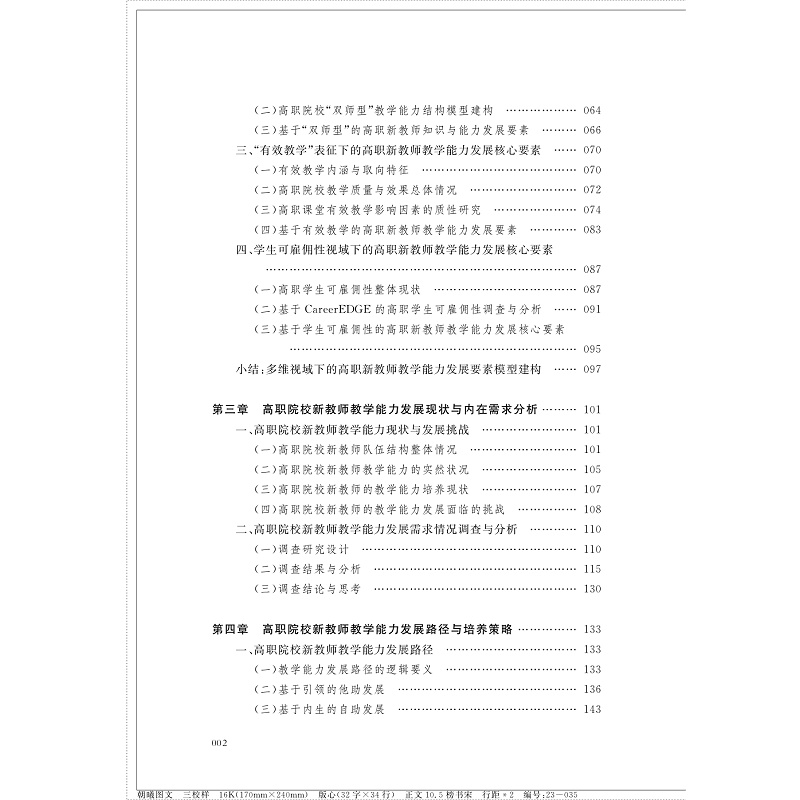其次,该书立足当前高职院校新教师教学能力现状,阐释了高职院校新教师教学能力发展的内在需求情况,进而帮助高职院校有针对性地制定新教师教学能力提升方案。
