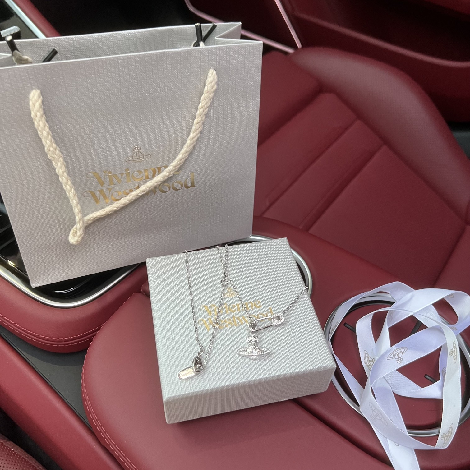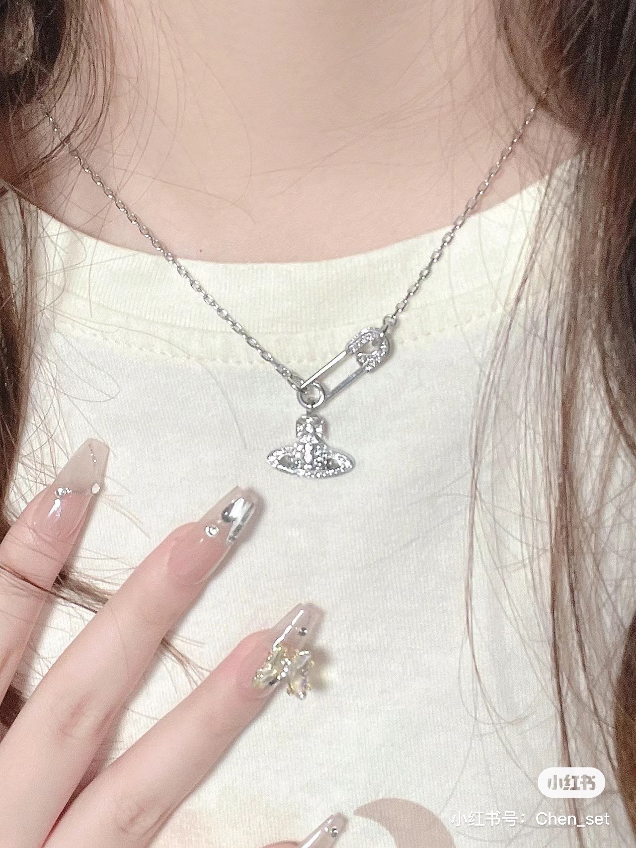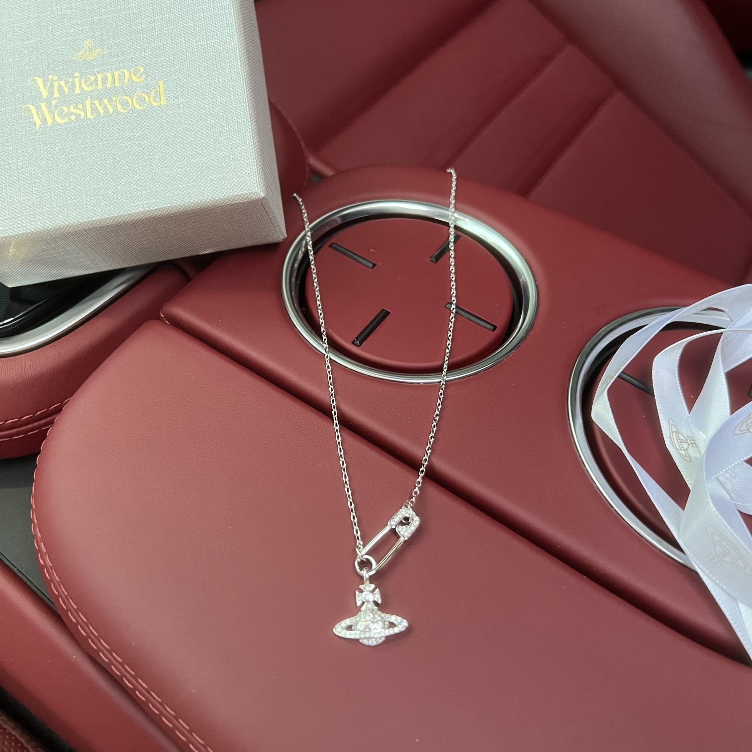 【VivienneWestwood】西太后绝美别针土星项链,Z包装没做,重磅推荐,一定要整套入,闭眼入准没错!纯粹王冠球是经典的象征,闪耀土星环勾勒未来波光流转间,开启一场与未来的崭新际遇!土星上边的钻采用定制的施华洛水钻,拿到手完完”全全可以感受到它的质感,手感超nice👍🏻用水钻的点缀出现在土星的设计上,增添不少冷艳时髦的俏丽模样,使得朋克同时又有点小少女,自带一群时尚粉!真的敲好看,可盐可甜,可纯可欲!一眼便钟情,绝对是“实用+高级”界的杠把子,绝对的yyds,绝对的宝藏永不过时的珍珠项链!