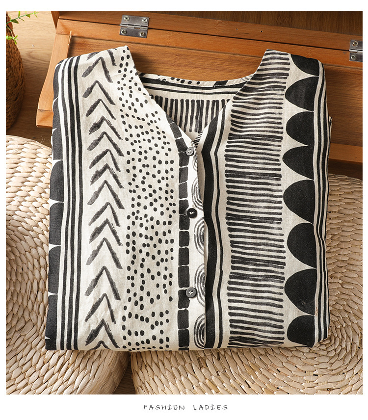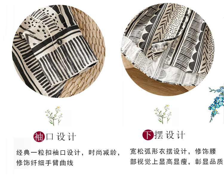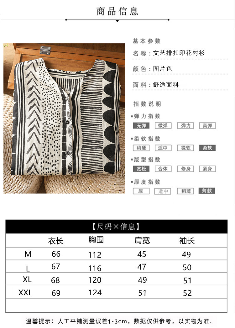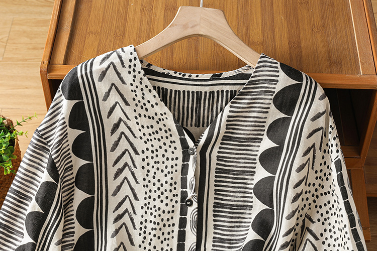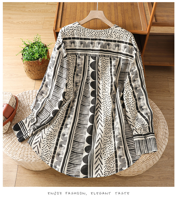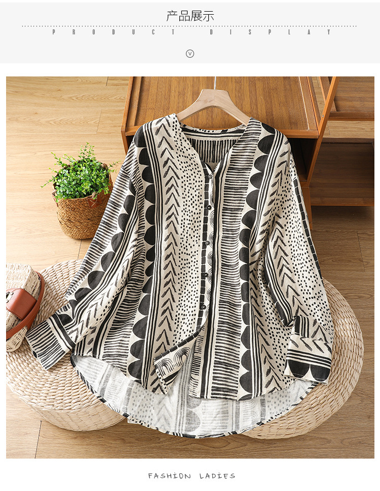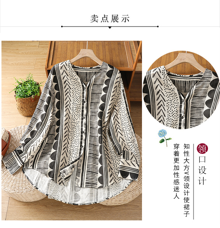 GYH 898印花v领长袖衬衫宽松显瘦通勤上衣