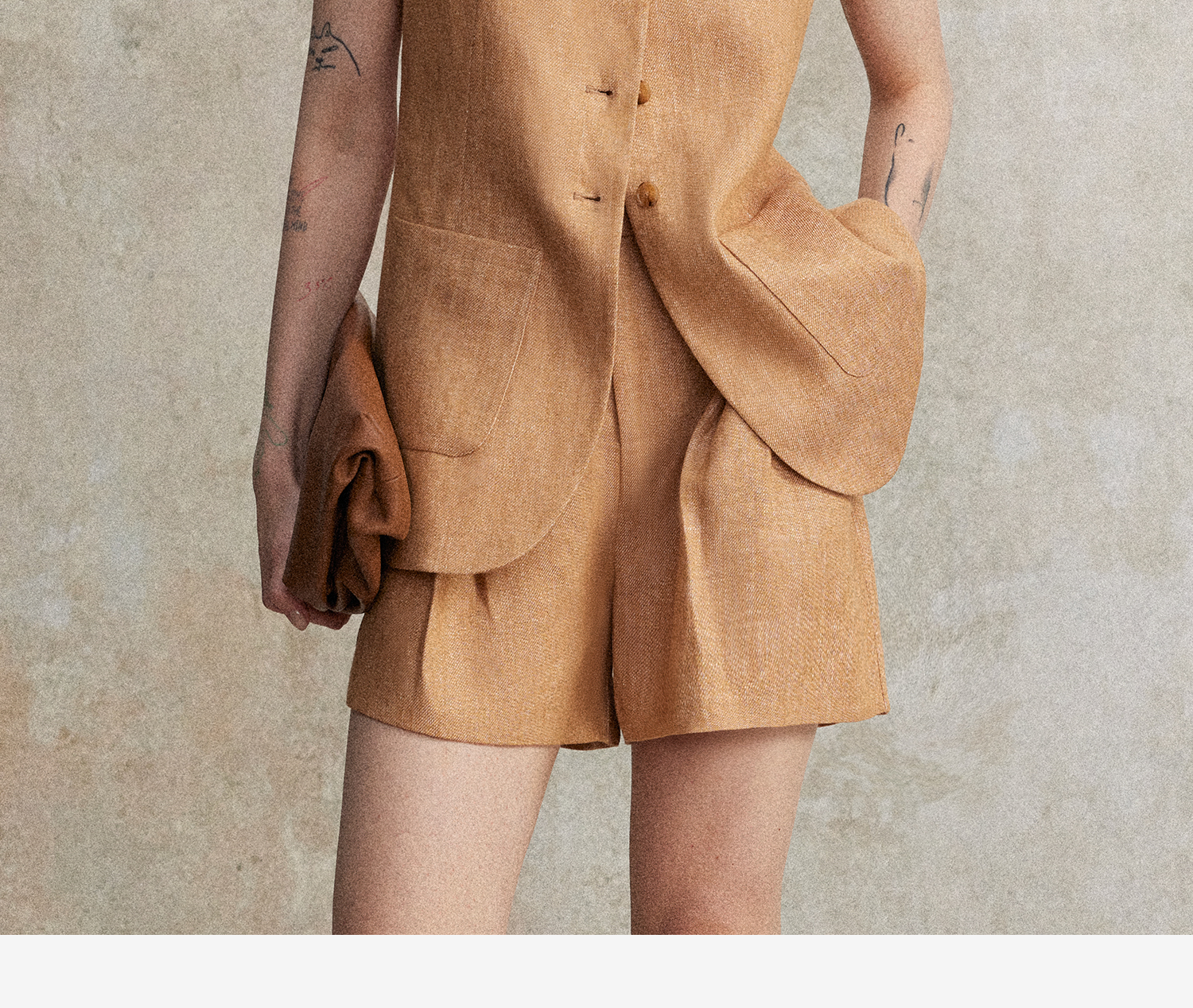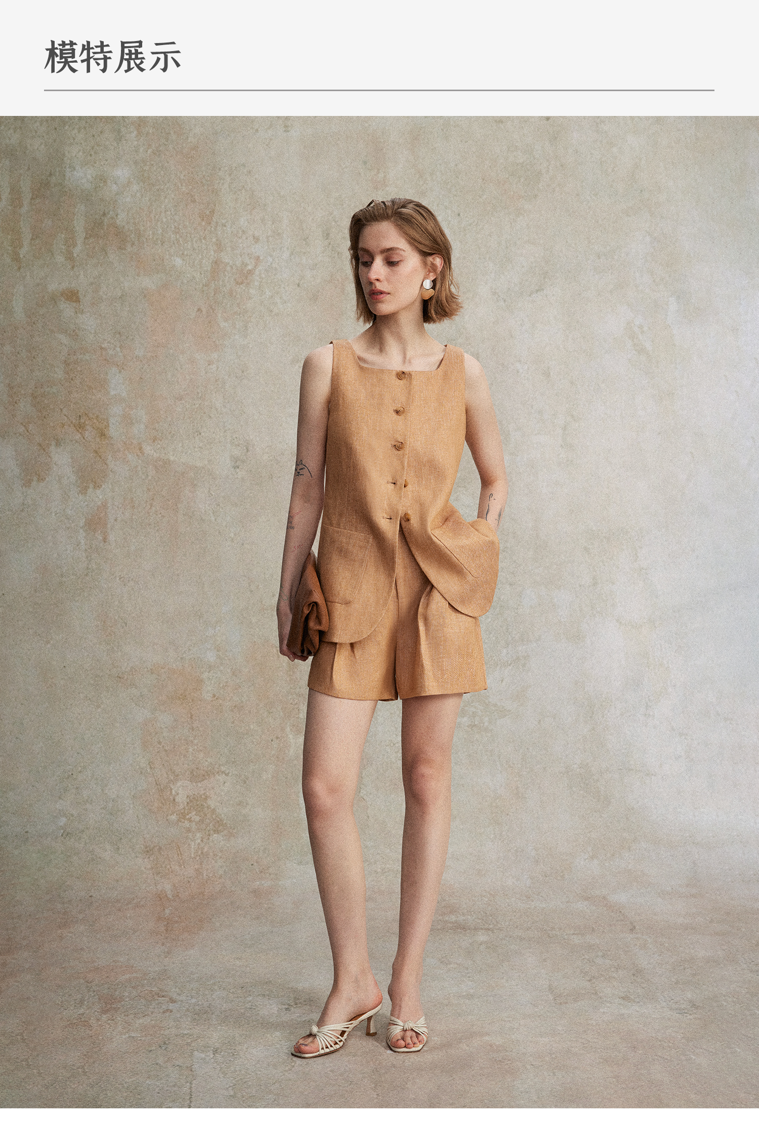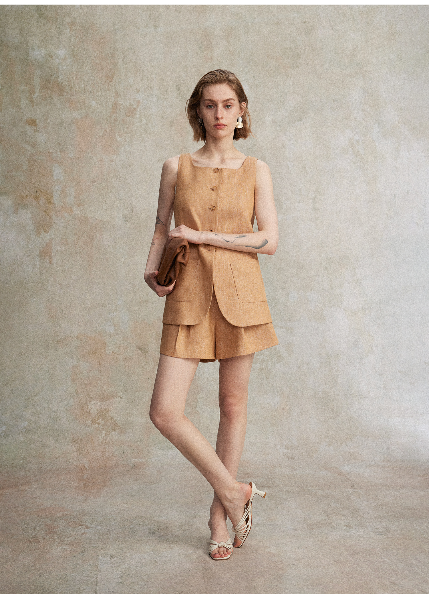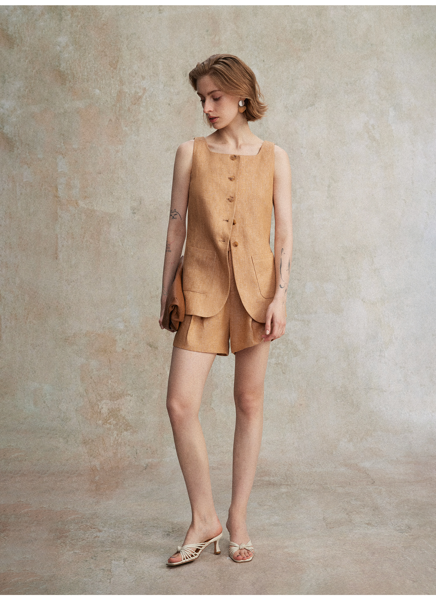【现货+预售】C+IMPRESS/西嘉混色亚麻 老钱风套装女夏通勤无袖马夹短裤两件套MJ2502127