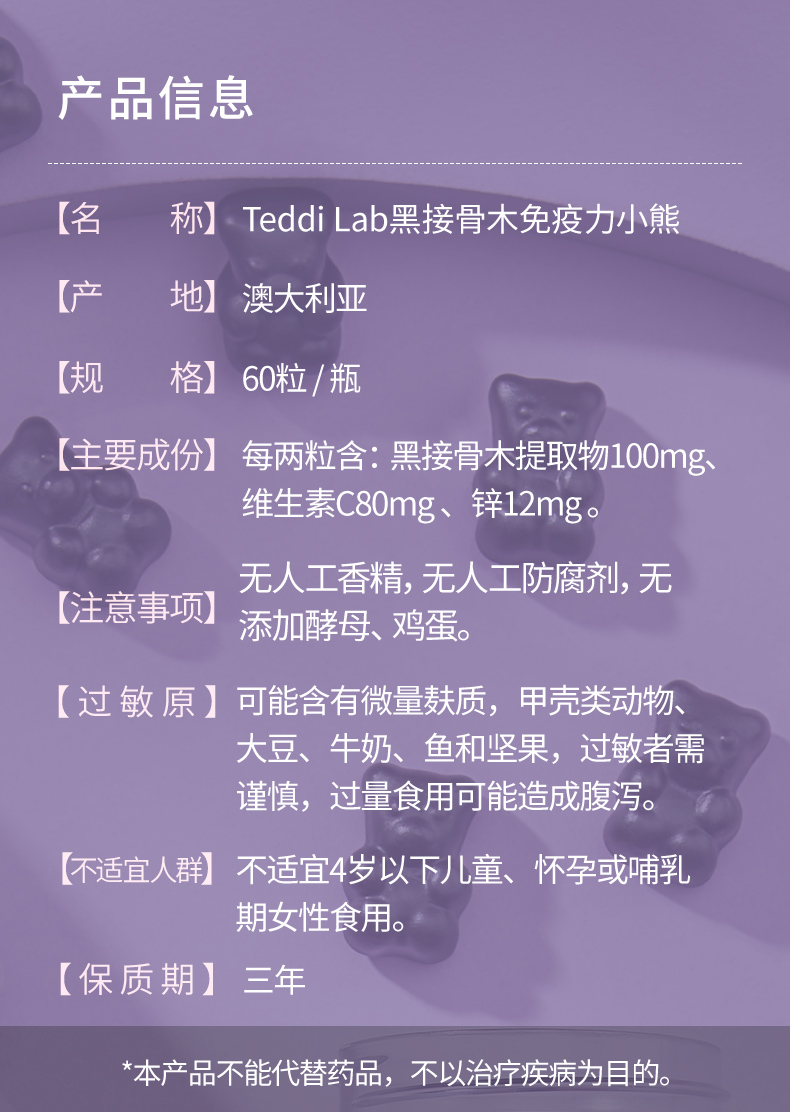 【保税直邮 宁波北仑】UNICHI接骨木小熊软糖60粒/瓶