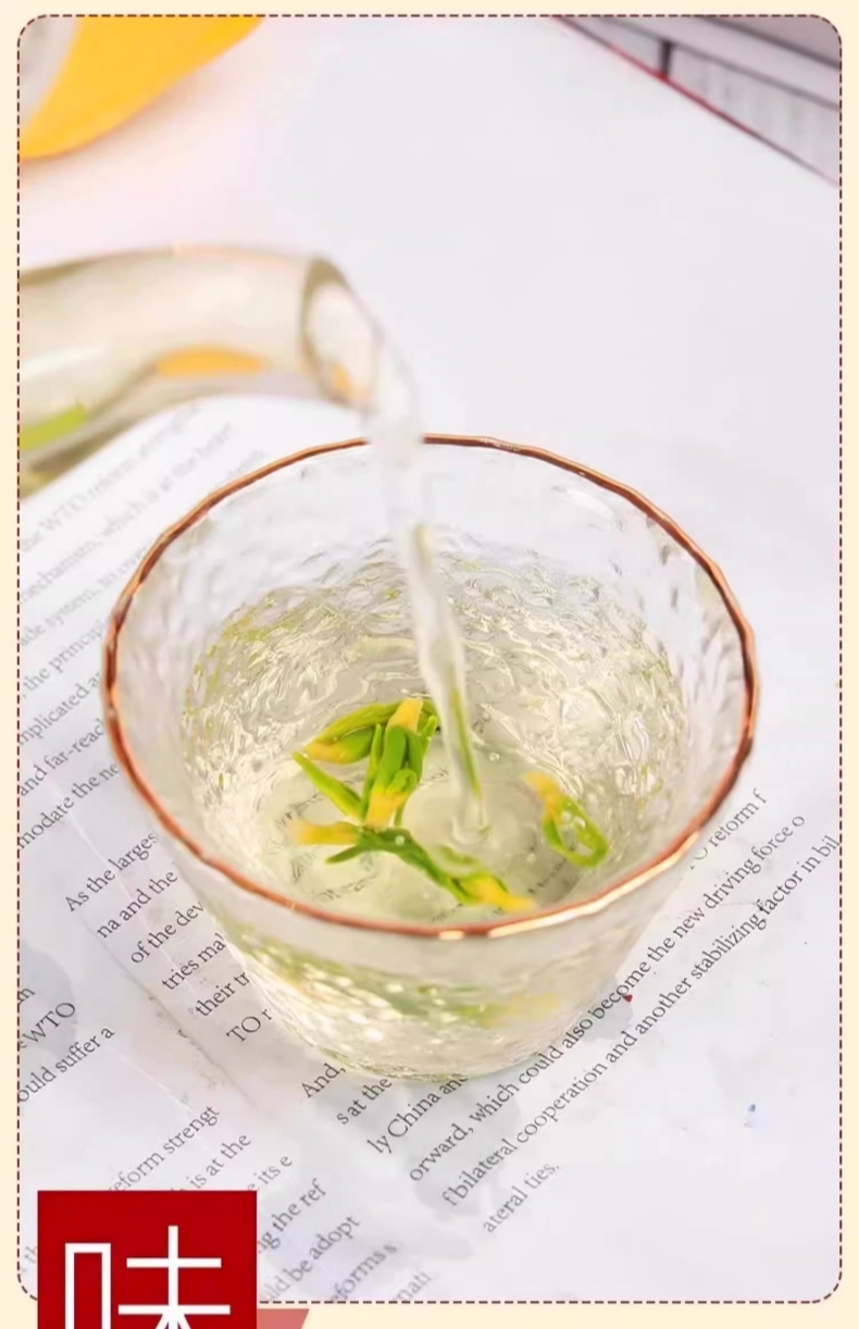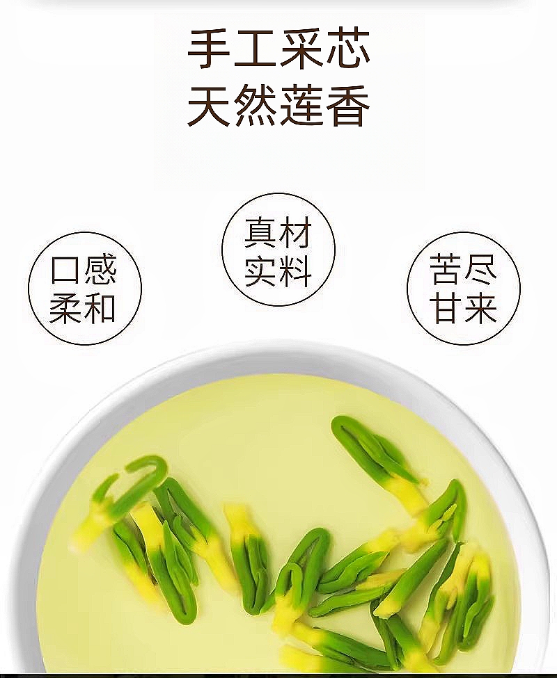 关于莲子芯的味道:在我们很多观众的印象里,莲子芯泡水苦涩异常,难以下咽。实际上建宁莲子芯泡水的口感并不是这样的,一次投放25-30粒左右的莲子芯,水温90℃左右,浸泡2-3分钟,汤汁呈嫩绿色,喝一口莲香四溢,回甘润喉,是非常好喝的代茶饮,也是入夏后苦味益心,药典就有记载莲子芯清心静饮、交通心肾是好的放心饮品。