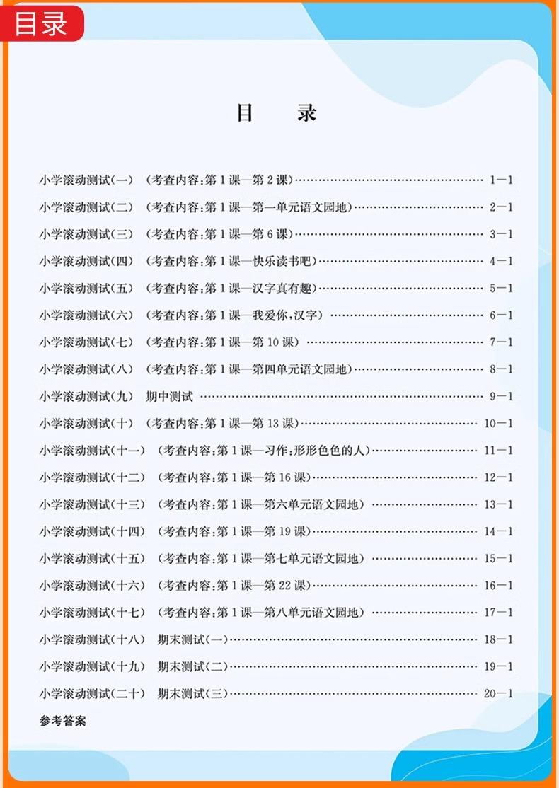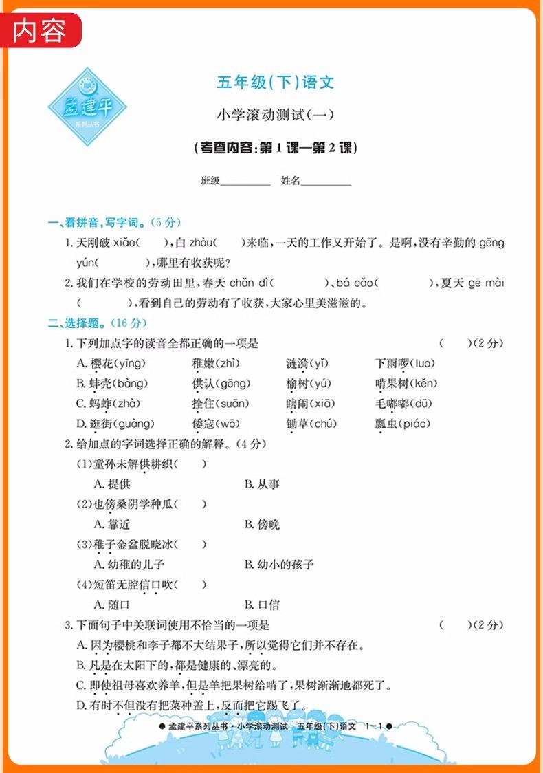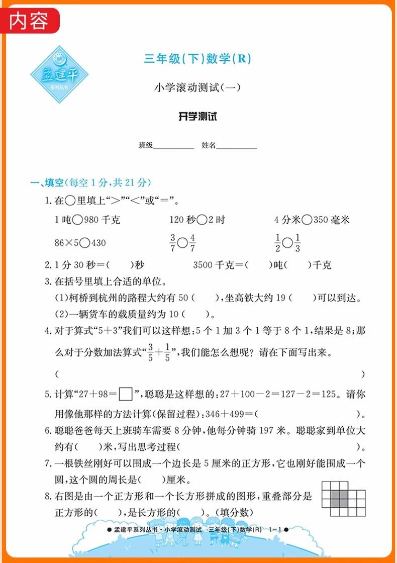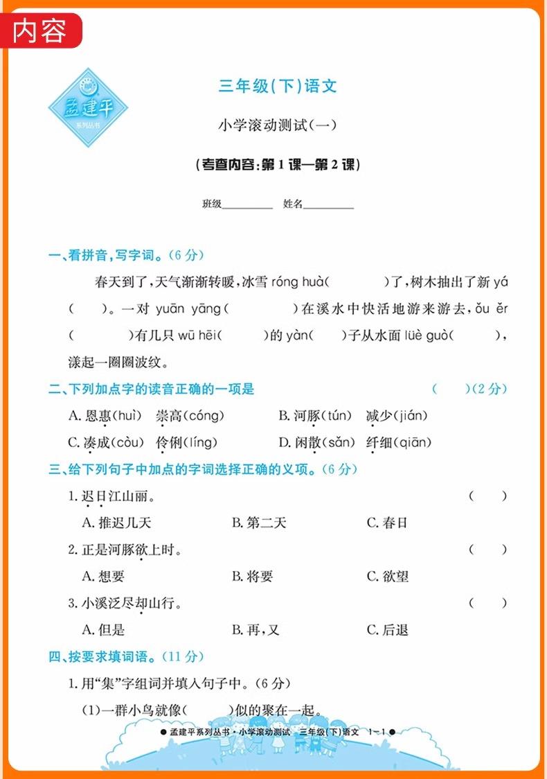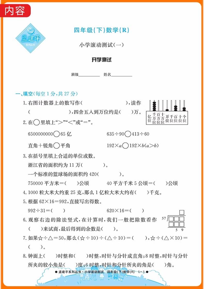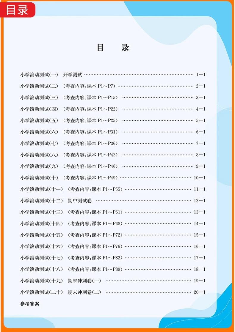 2025秋孟建平小学滚动测试上册人教单元测试期末复习综合考试模拟