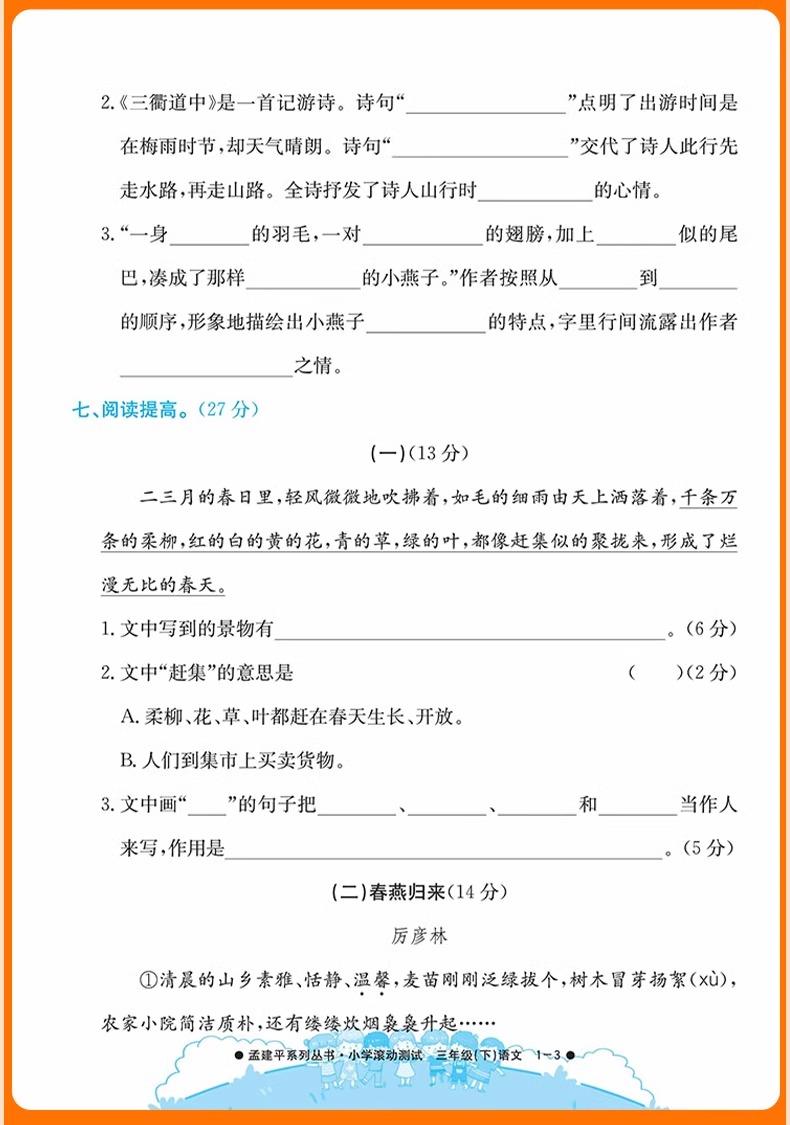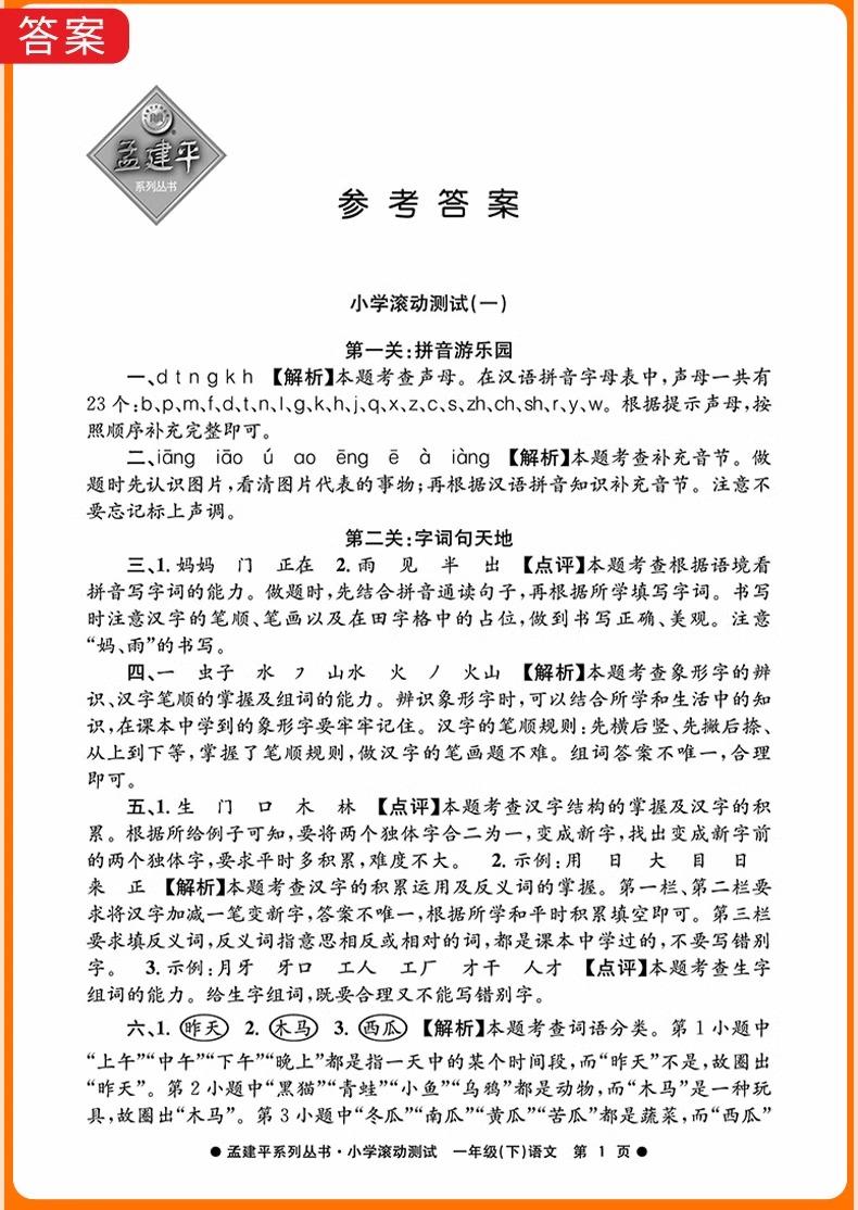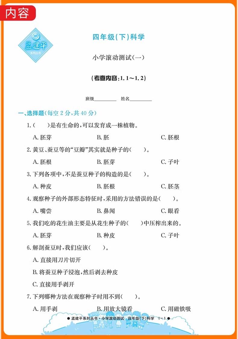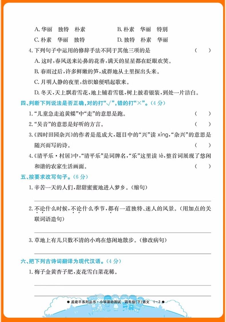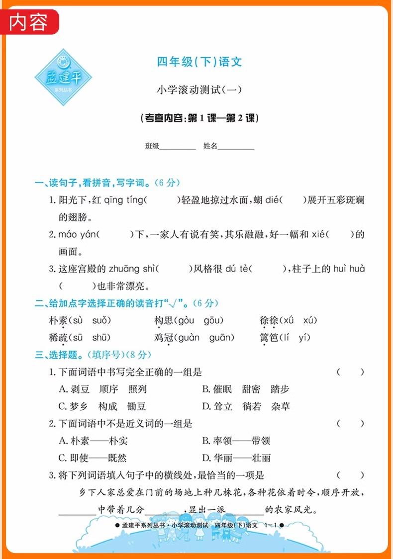 2025秋孟建平小学滚动测试上册人教单元测试期末复习综合考试模拟