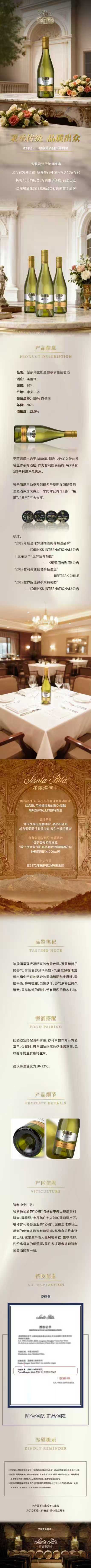 圣丽塔三勋章霞多丽白葡萄酒2024