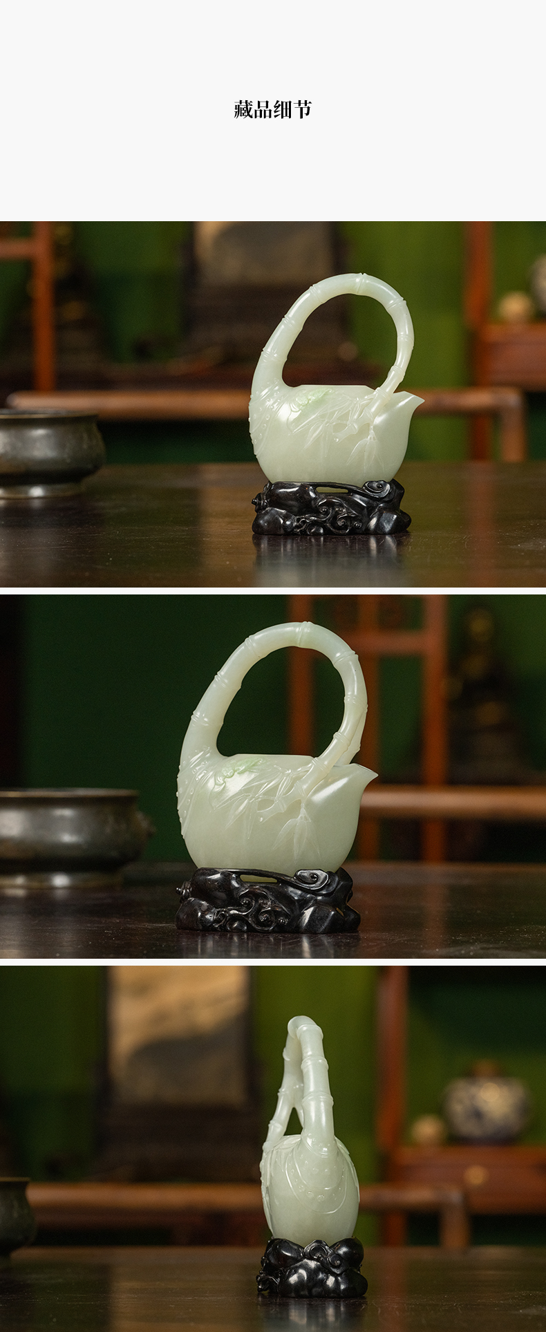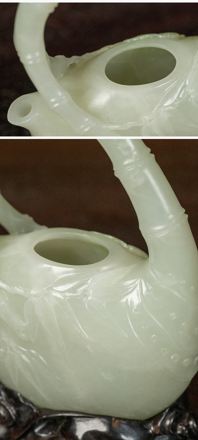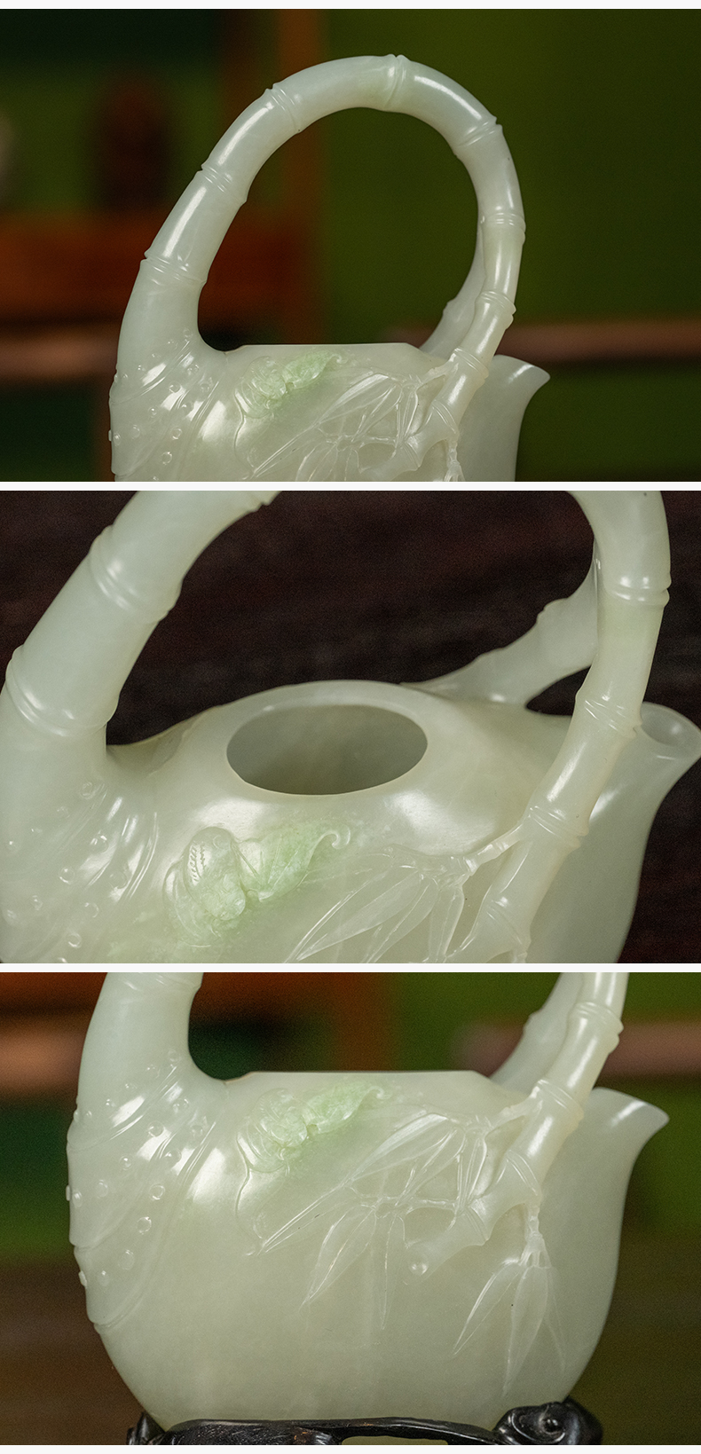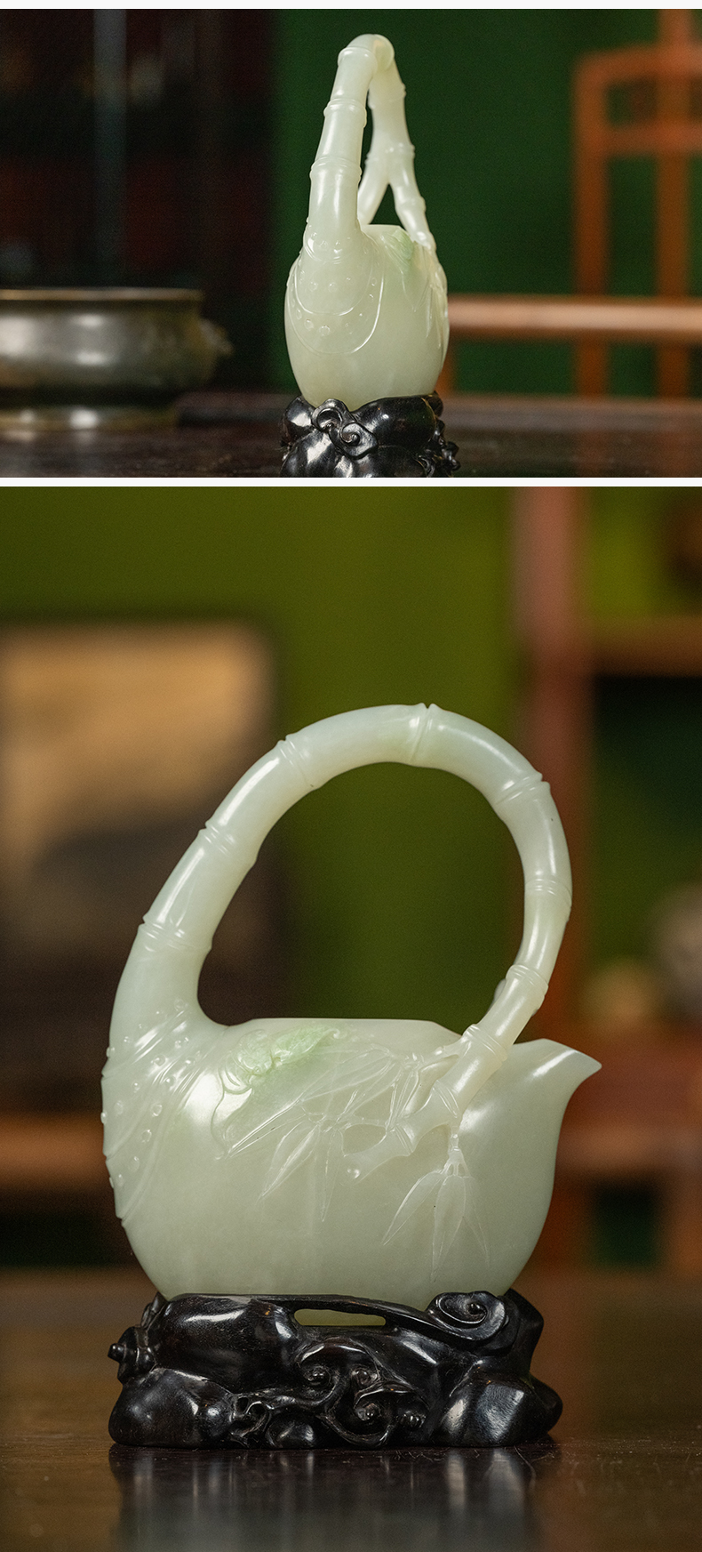 二十世纪 和田玉雕竹纹提梁壶摆件