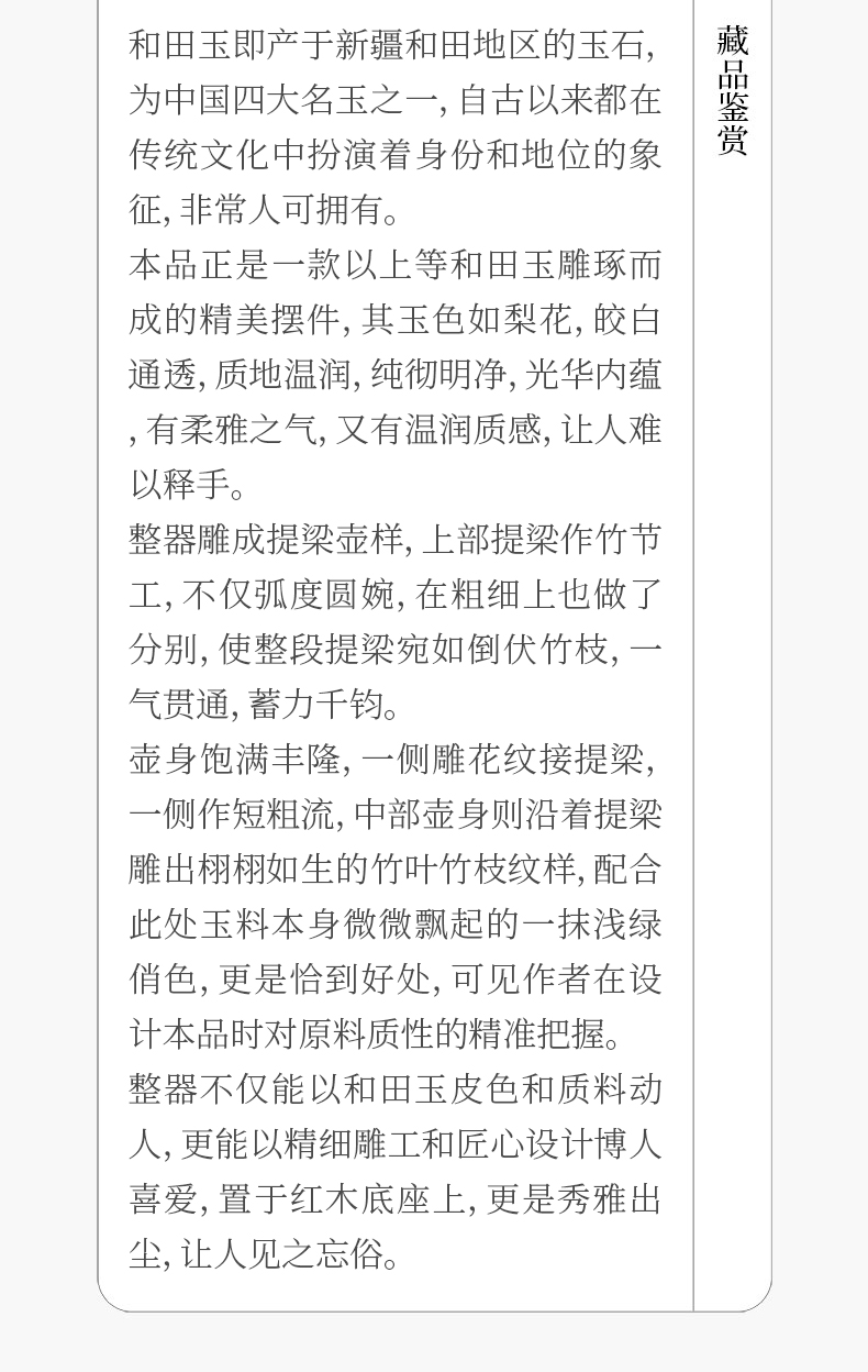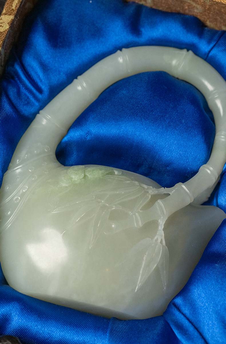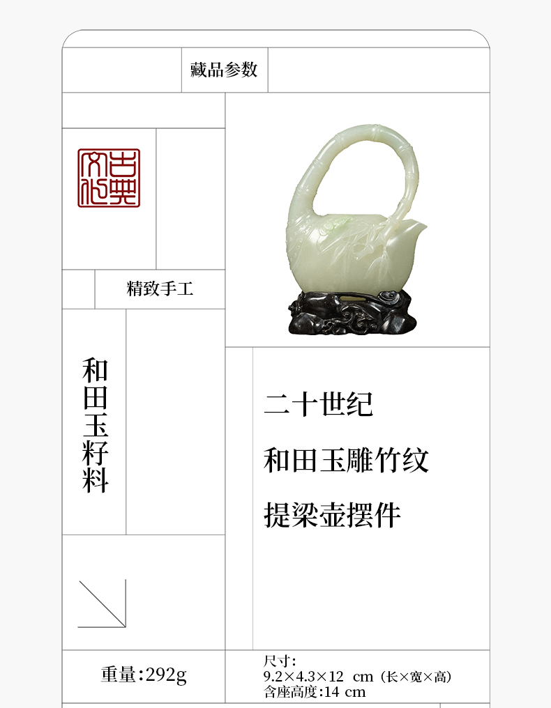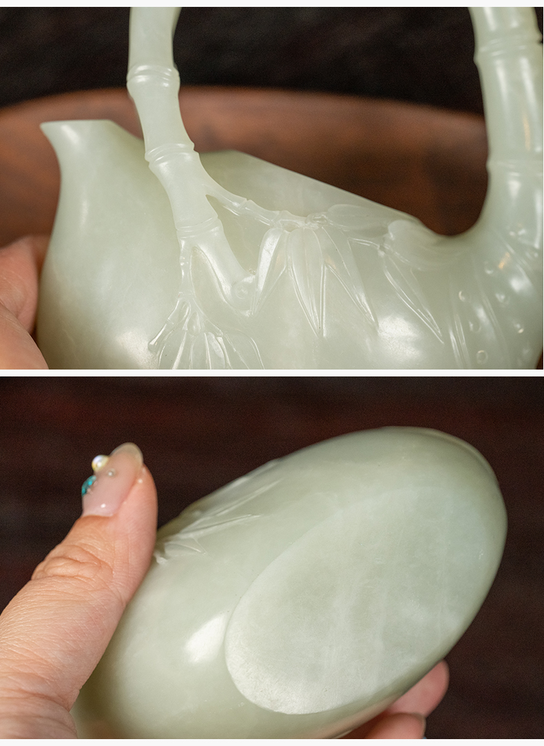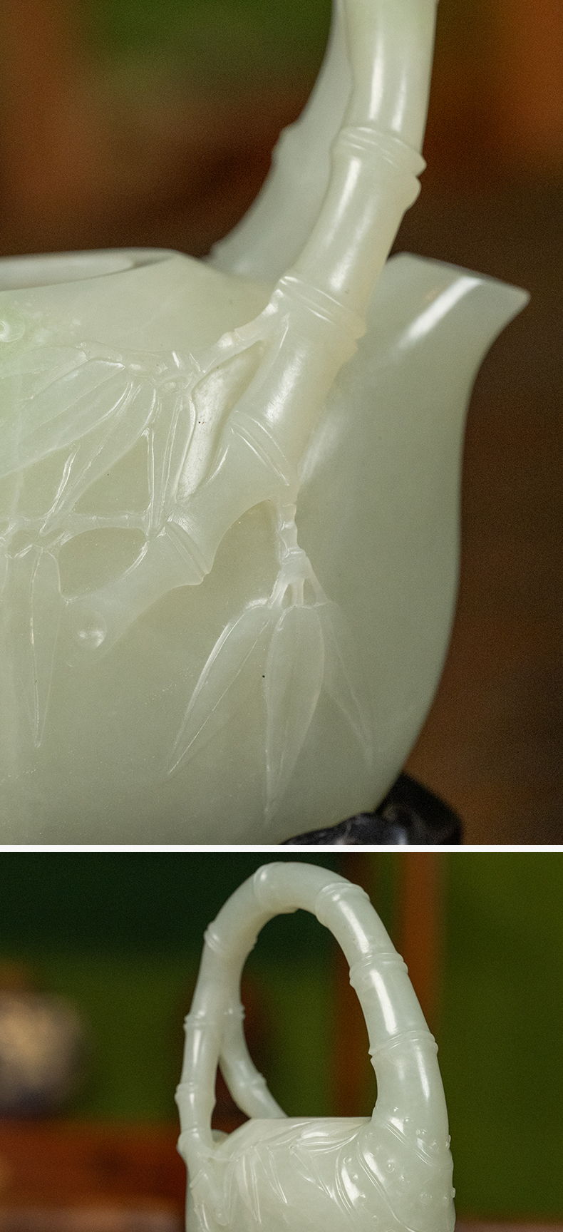 二十世纪 和田玉雕竹纹提梁壶摆件