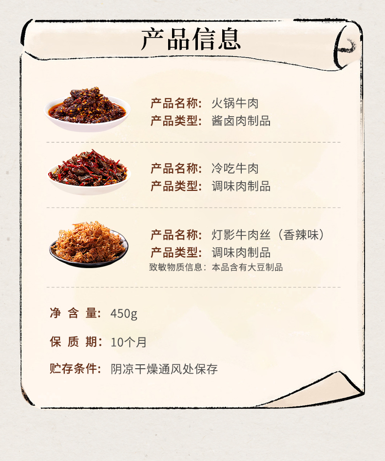 【周三会员日6.5折起】初茶花月川香牛肉大礼包450g/袋 冷吃牛肉