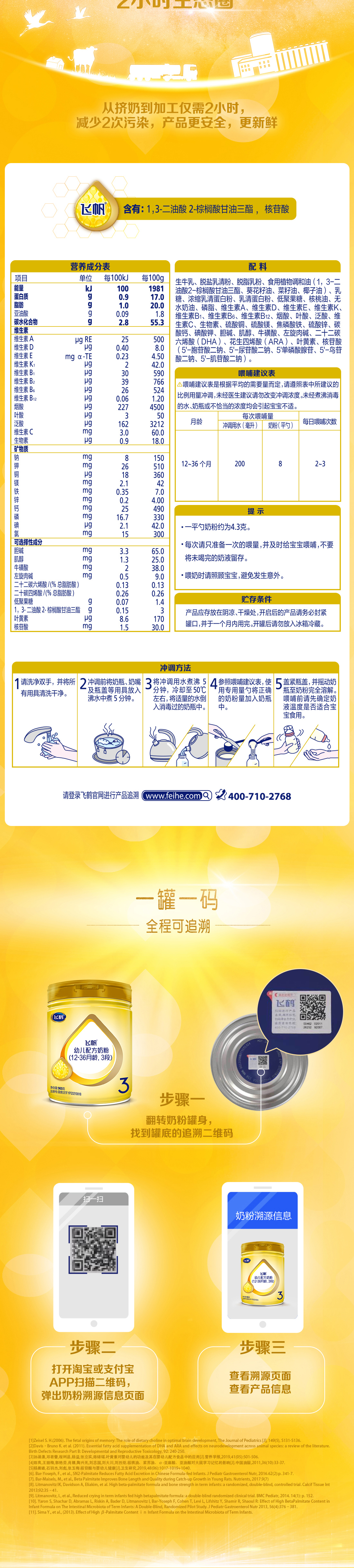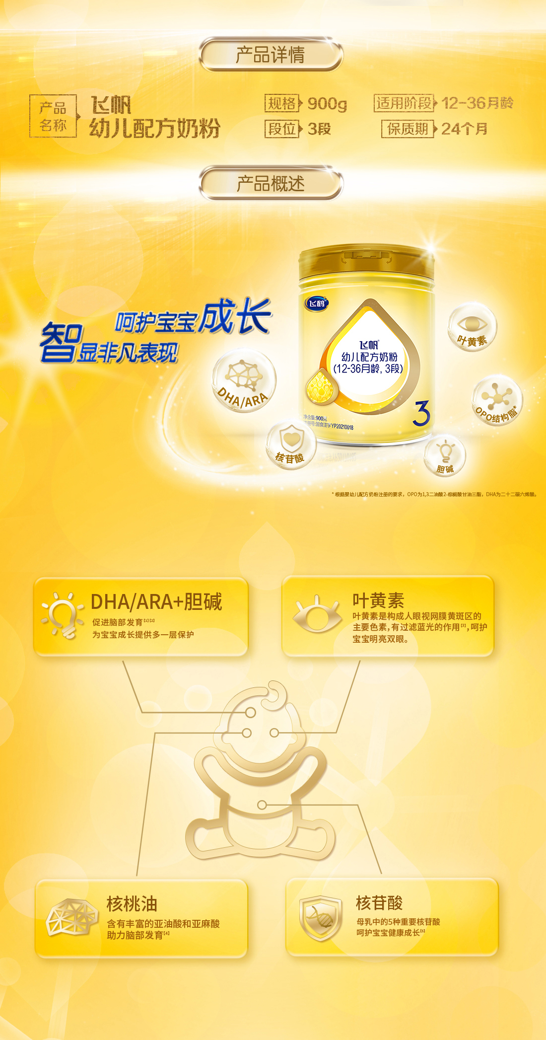 飞鹤飞帆3段健智呵护幼儿配方牛奶粉900g