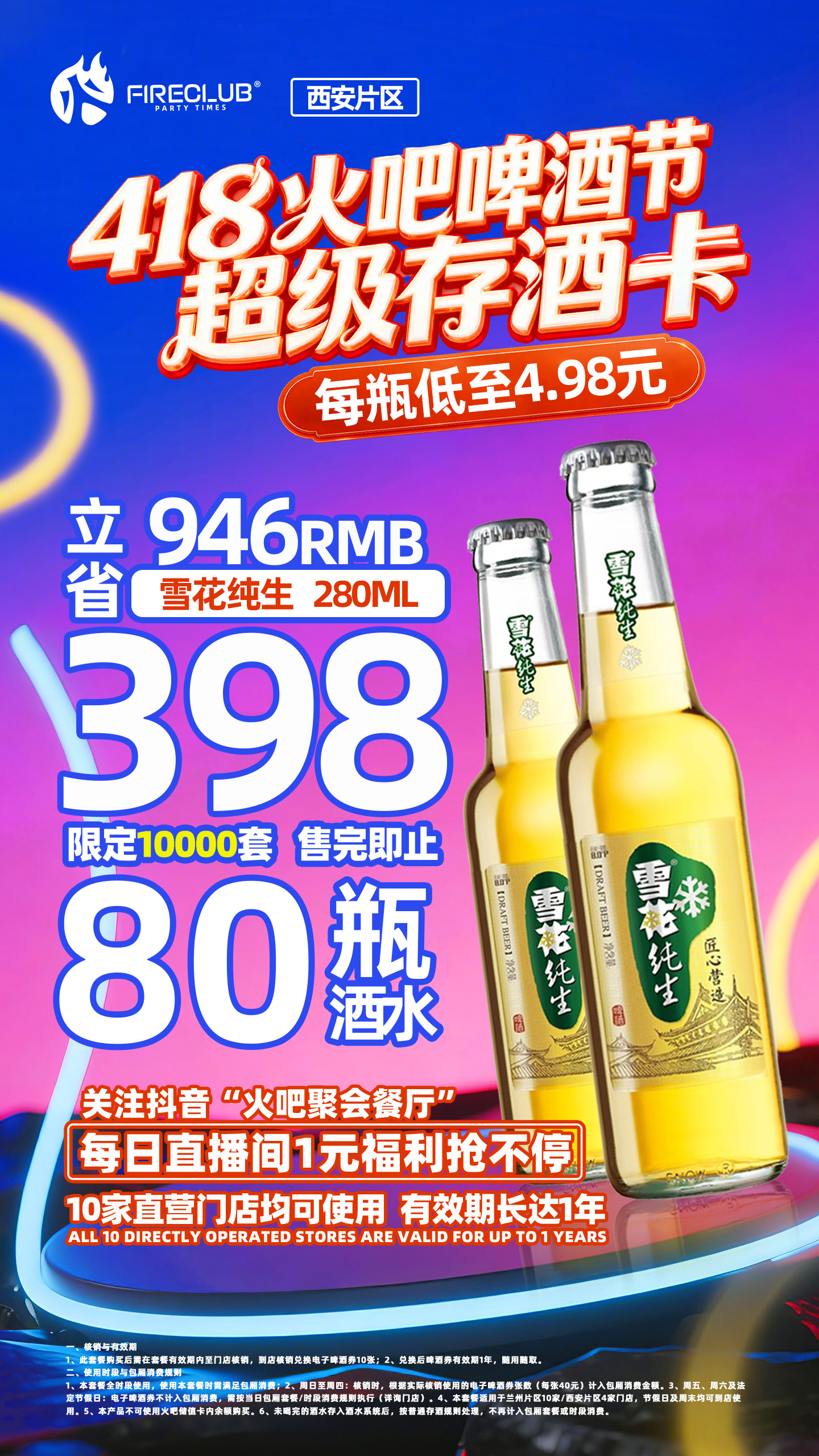 3、周五、周六及法定节假日:电子啤酒券不计入包厢消费,需按当日包厢套餐/时段消费规则执行(详询门店)。