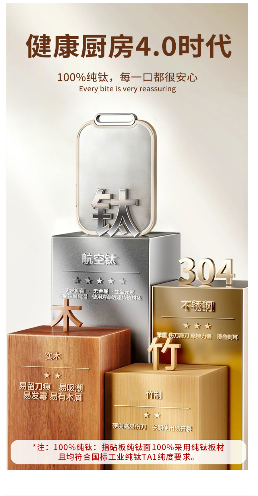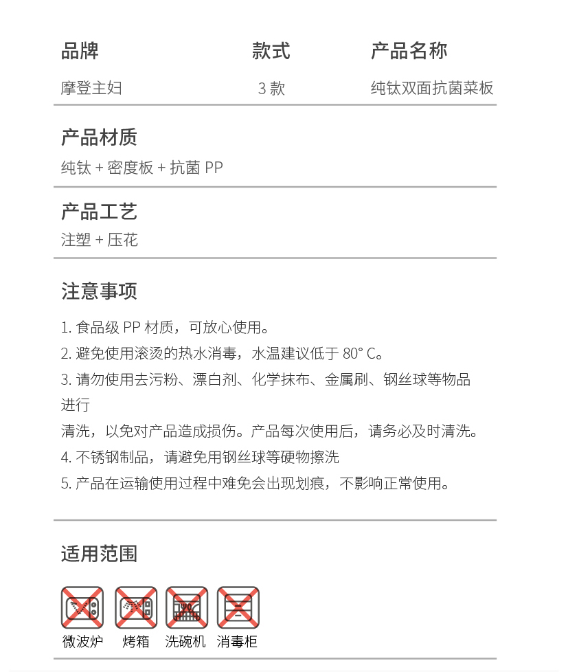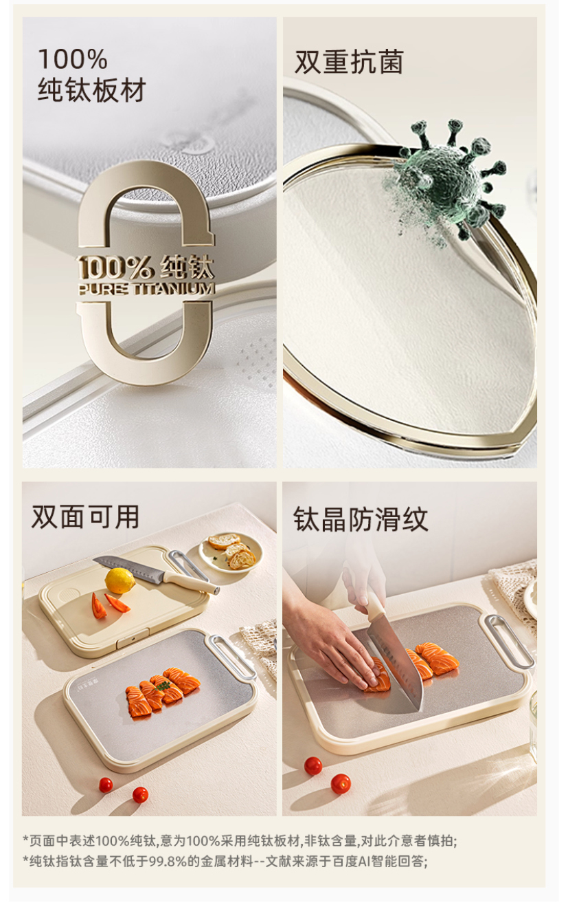 摩登主妇纯钛切菜板家用防霉抗菌食品级面板厨房专用刀板案板砧板