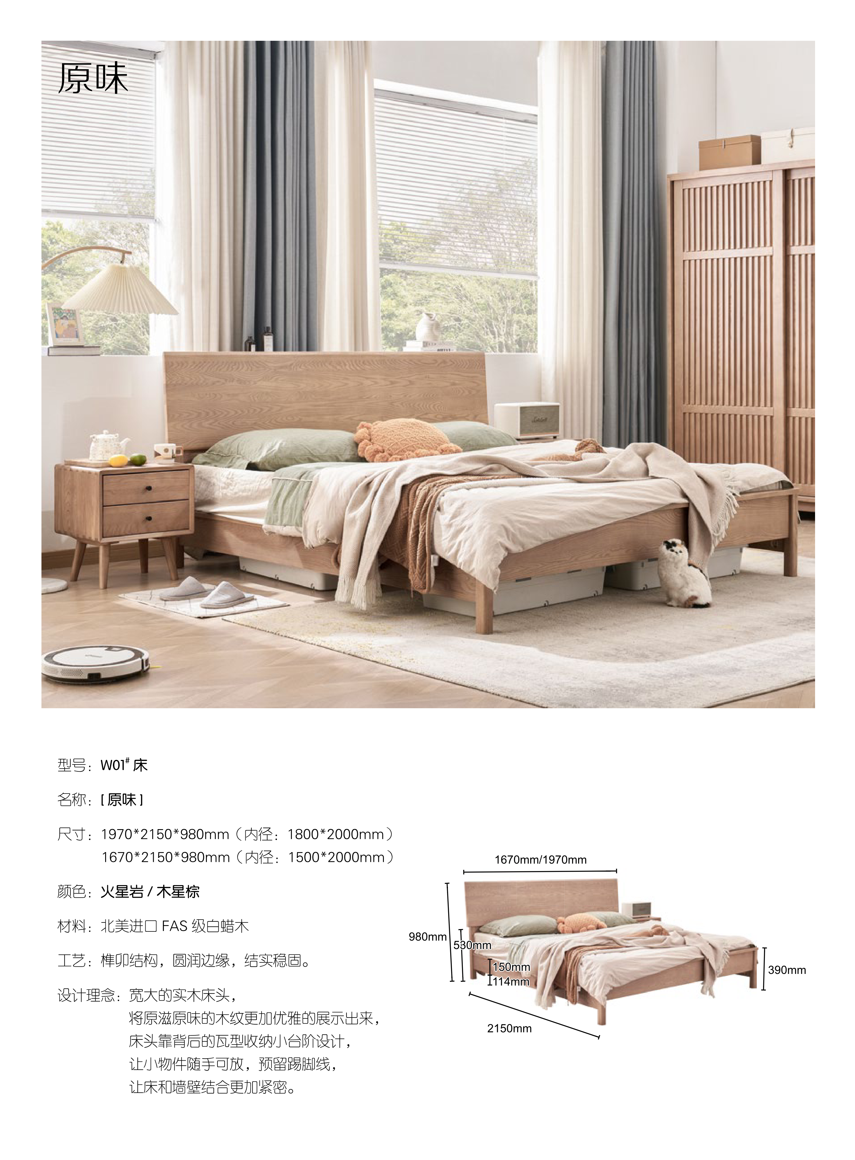 原味实木大床/W01