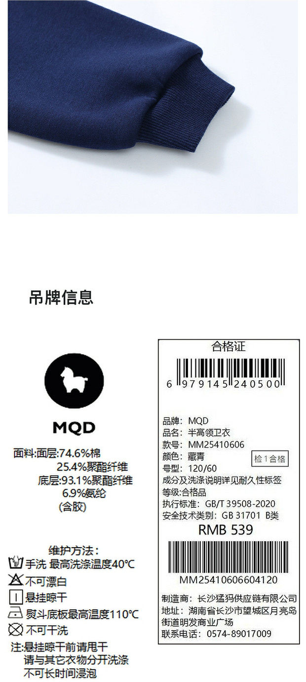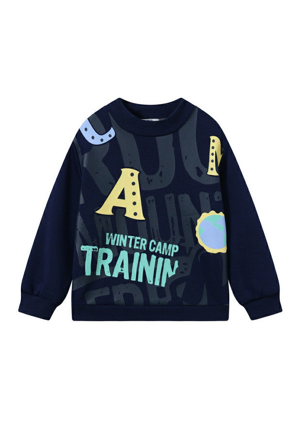 【MQD】童装男大童冬季新款儿童街潮字母印花加绒厚款保暖圆领卫衣