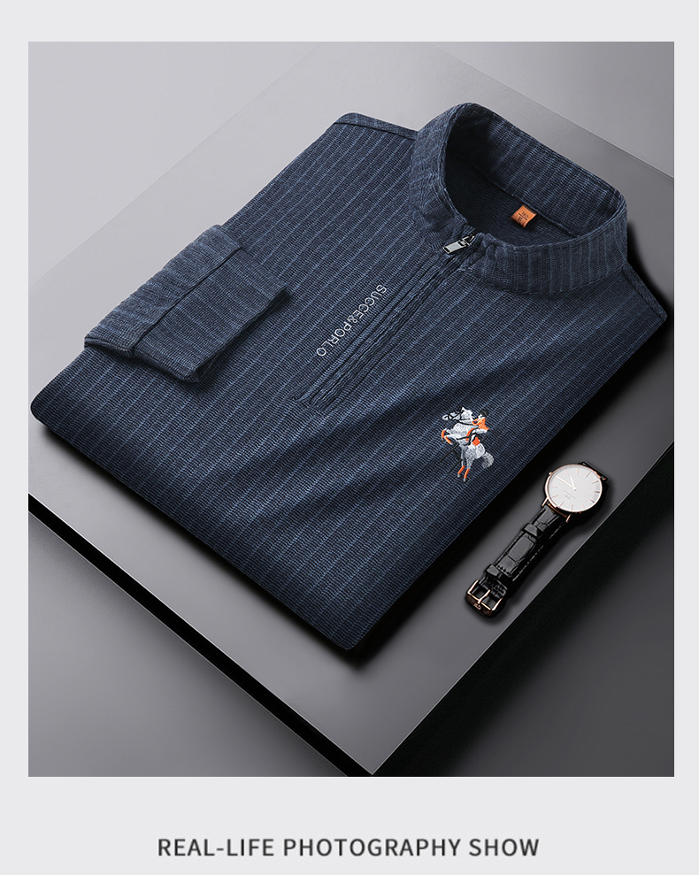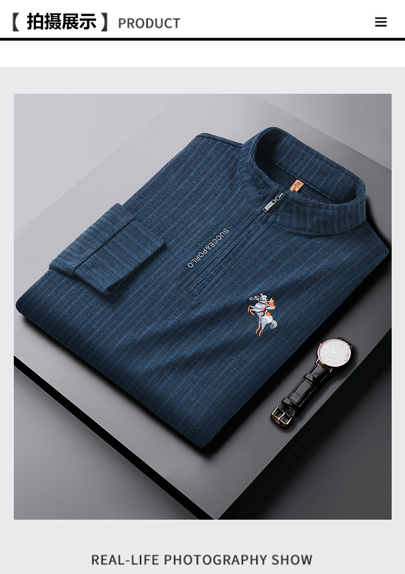 【新款DWP】大依优型大码立领长袖T恤男装加肥加大体恤大号上衣胖子打底